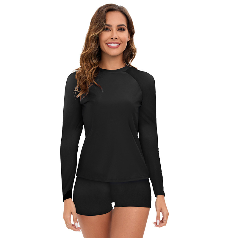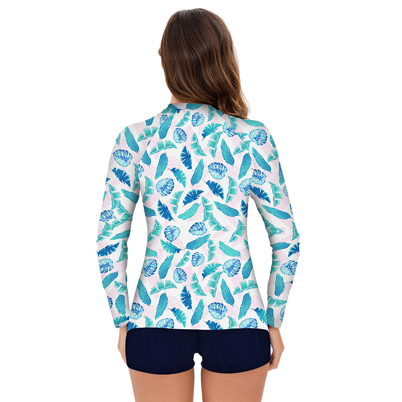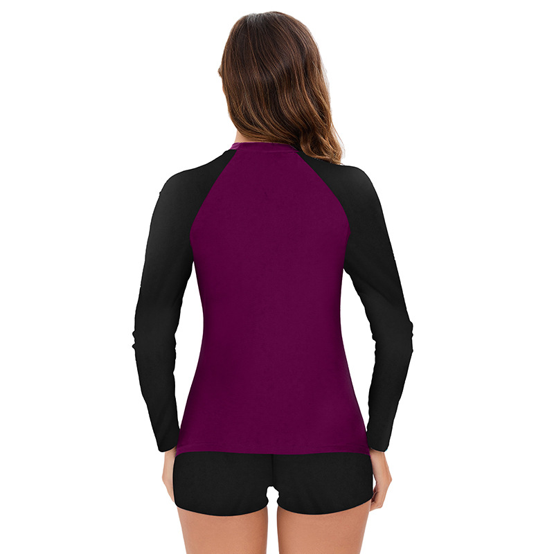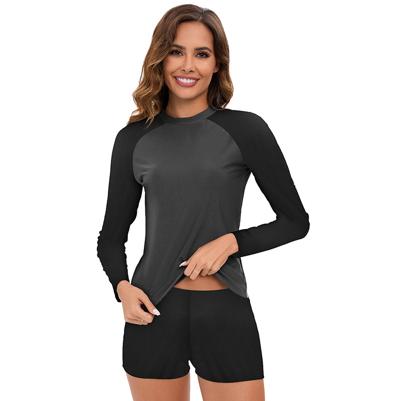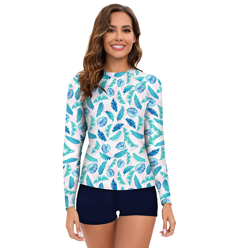 速卖通2024新款分体泳衣女保守欧美运动长袖印花拼接跨境冲浪泳装