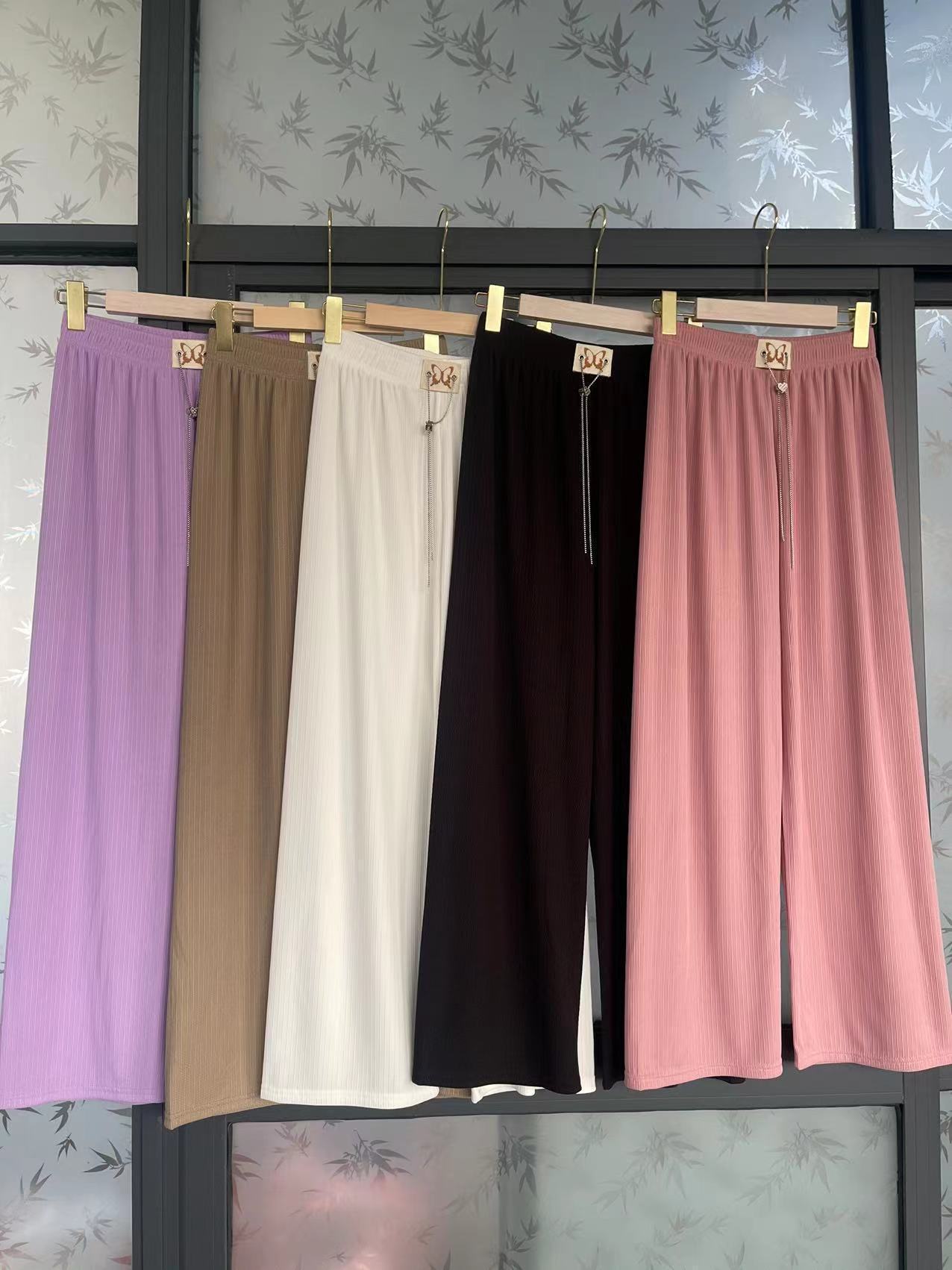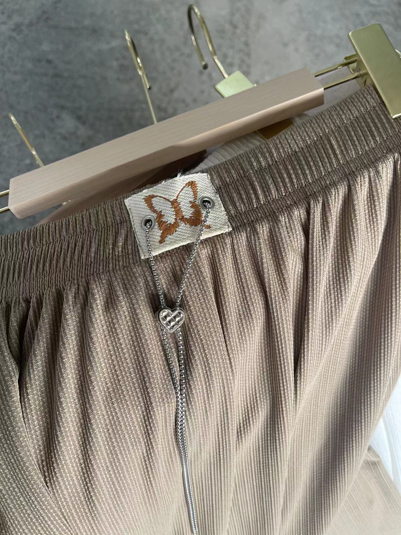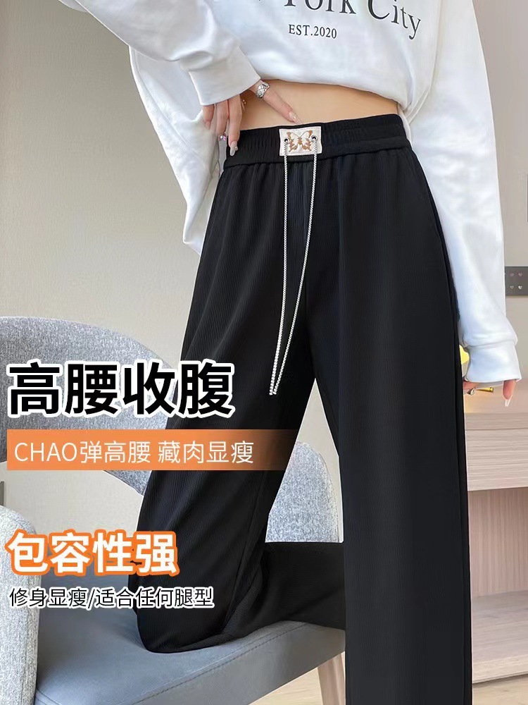 2023春夏款新款宽窄坠感直筒蝴蝶链条冰丝百搭休闲时尚阔腿裤女
