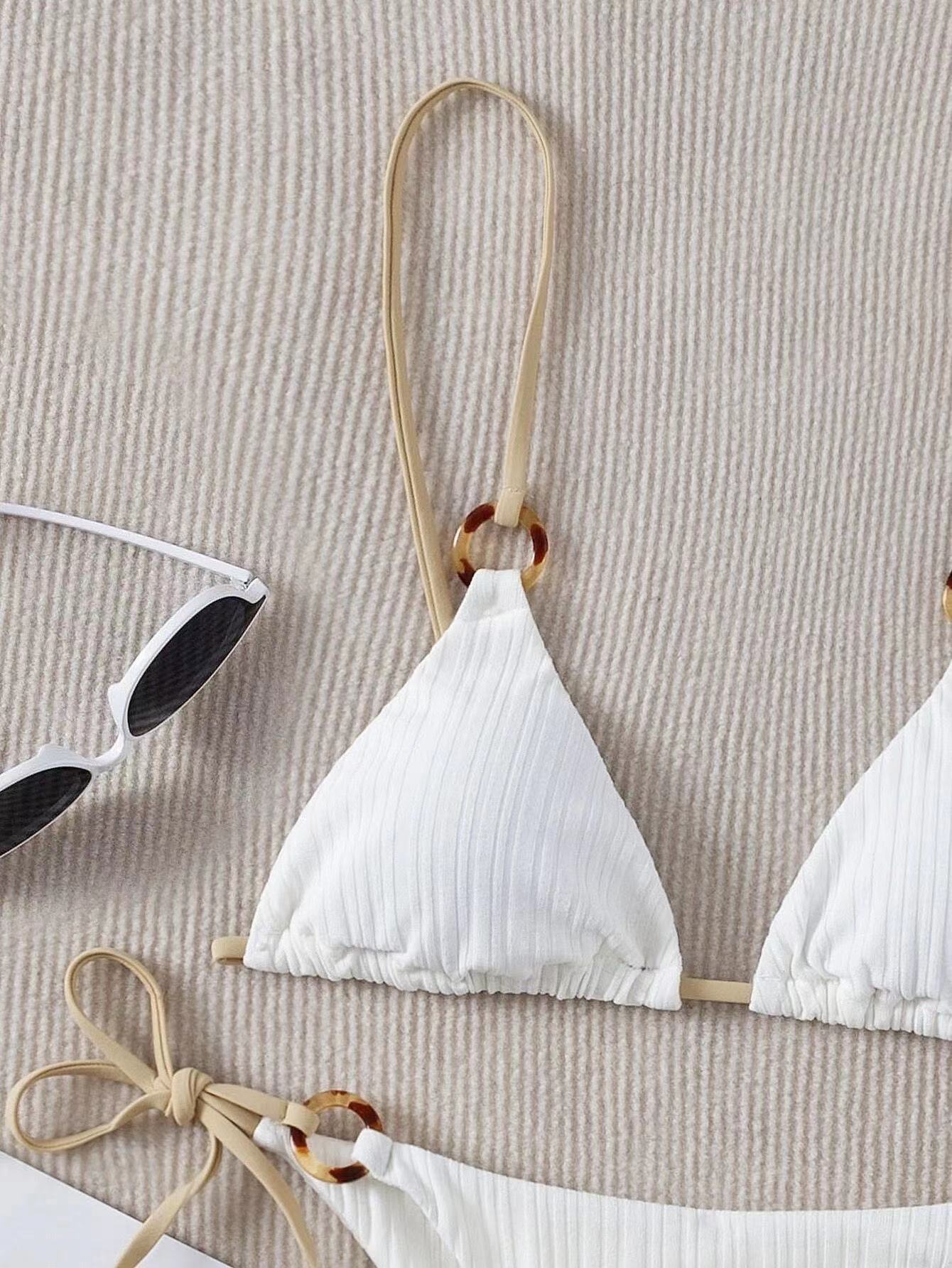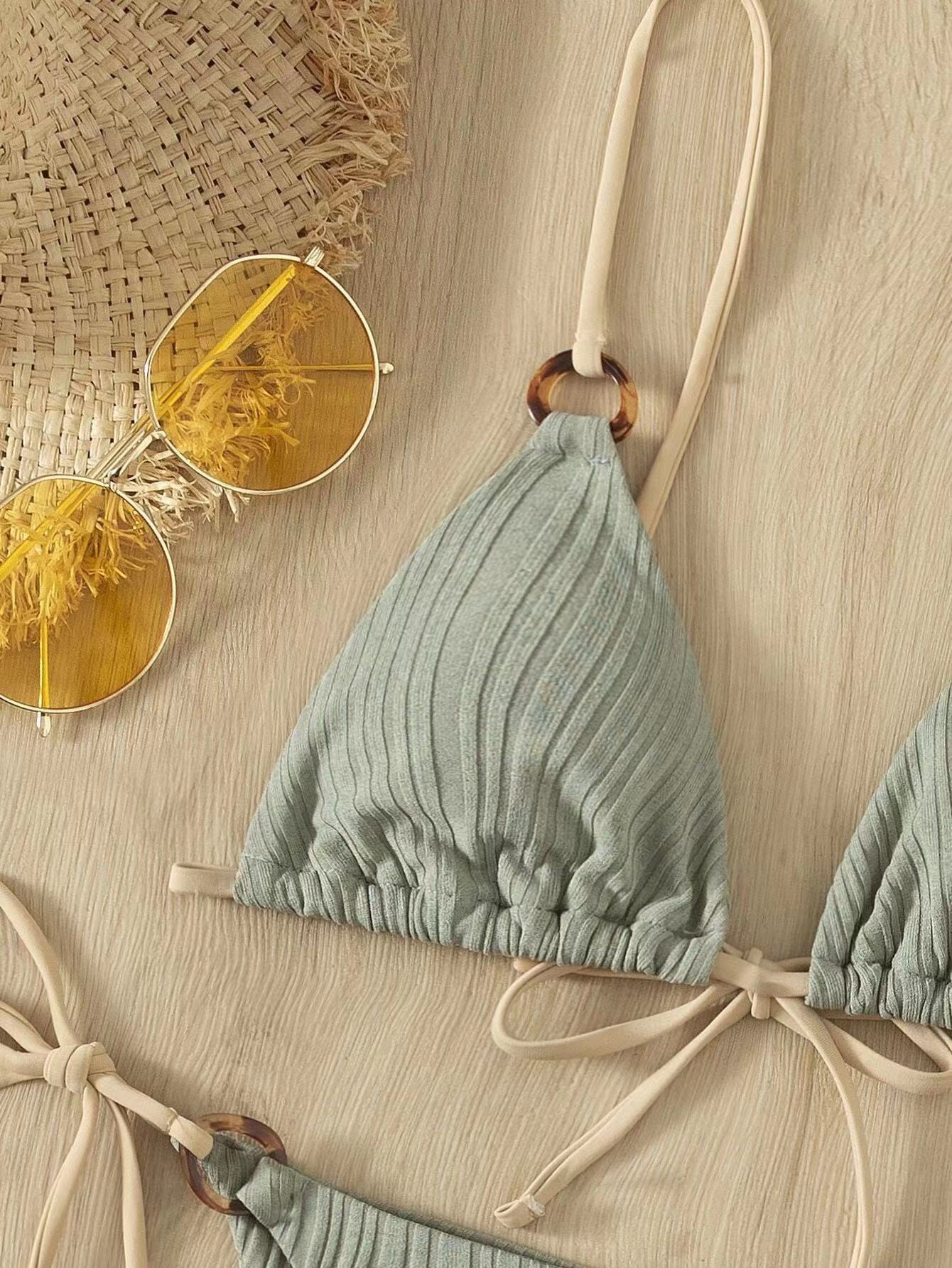 2023新款ins泳衣欧美分体比基尼两件套仙女范性感色系带泳装女