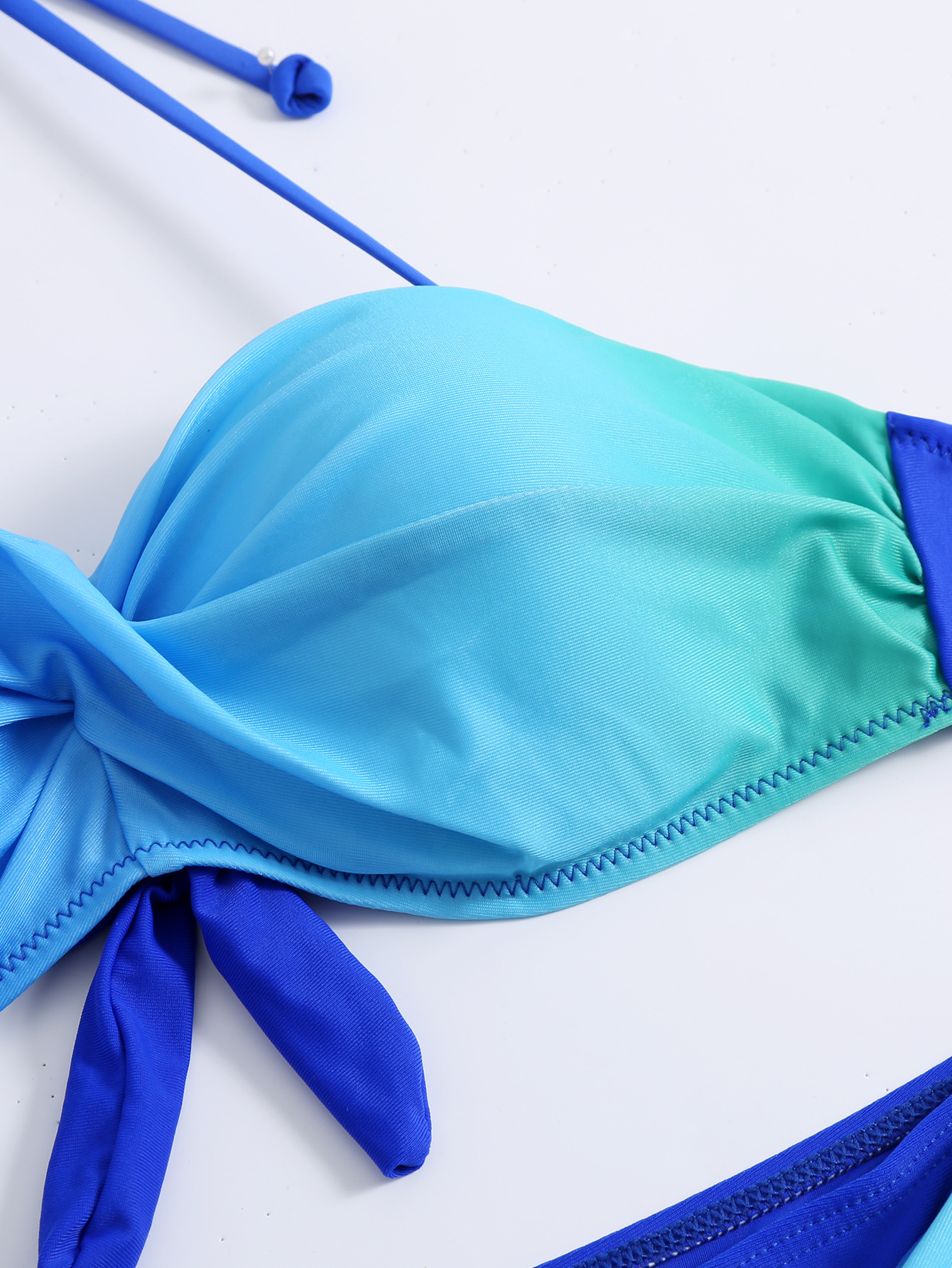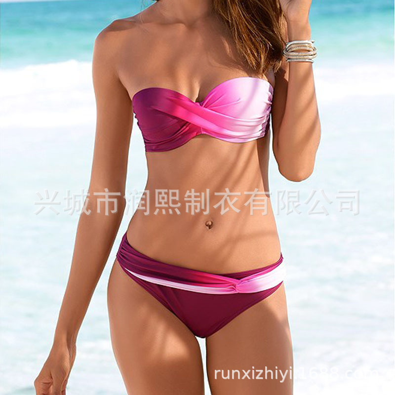 亚马逊新款欧美外贸渐变拧包性感泳装抹胸比基尼分体泳衣女bikini