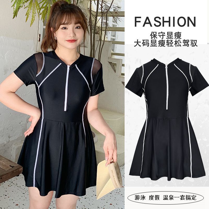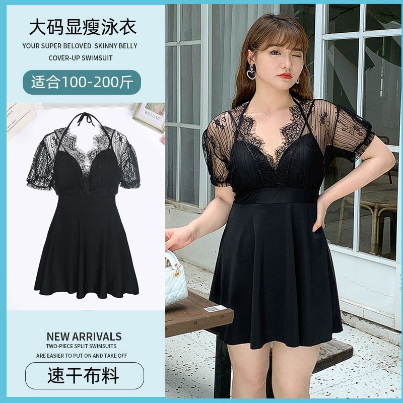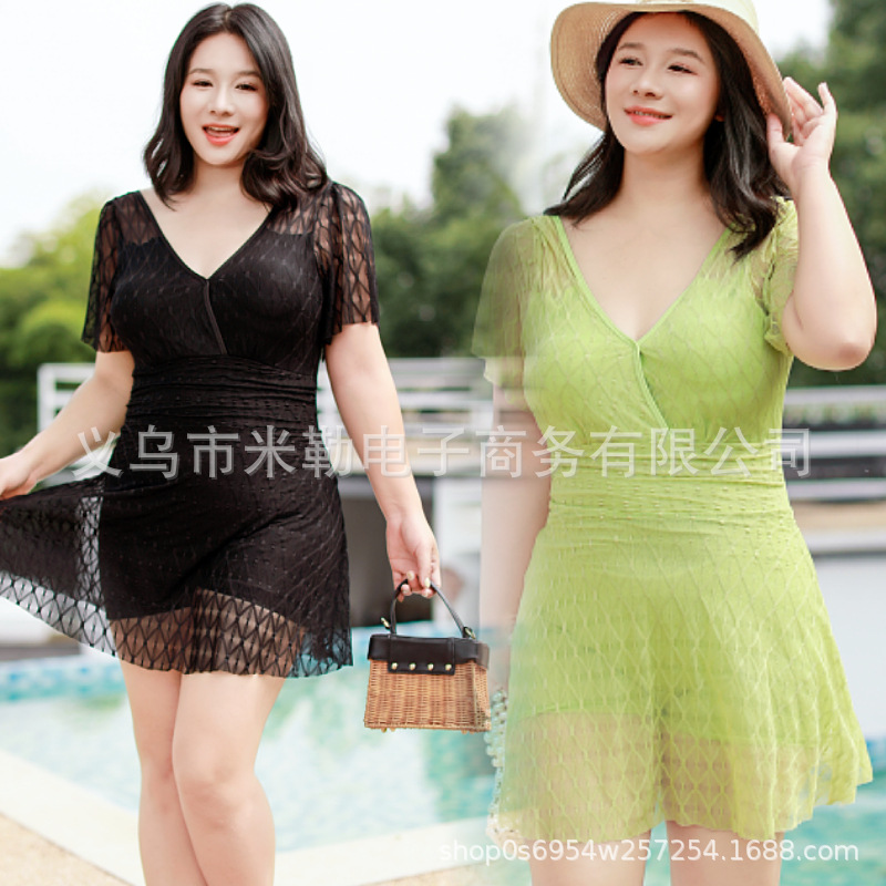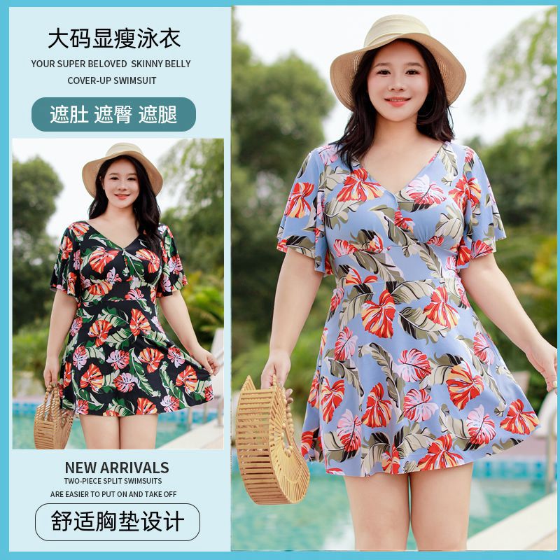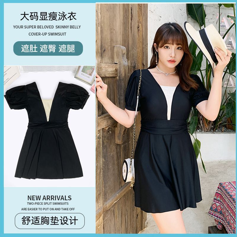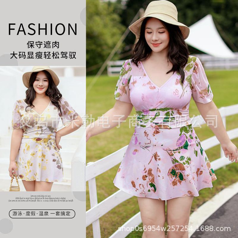 大码泳衣女连体保守胖MM180斤遮肉性感大胸聚拢遮肚显瘦温泉泳装