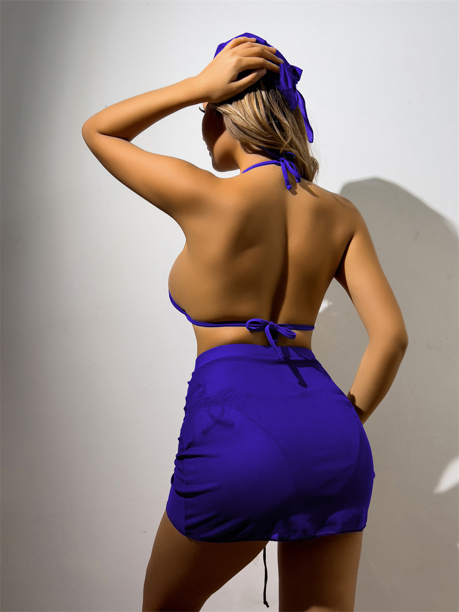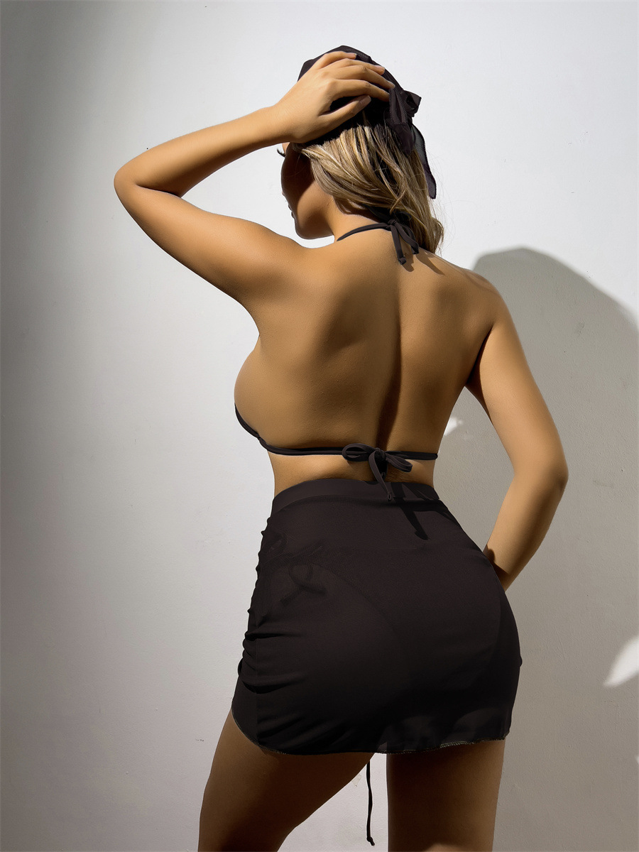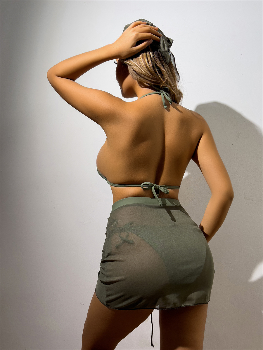 2024新款欧美系带网纱分体泳衣亚马逊性感网红比基尼四件套泳装女