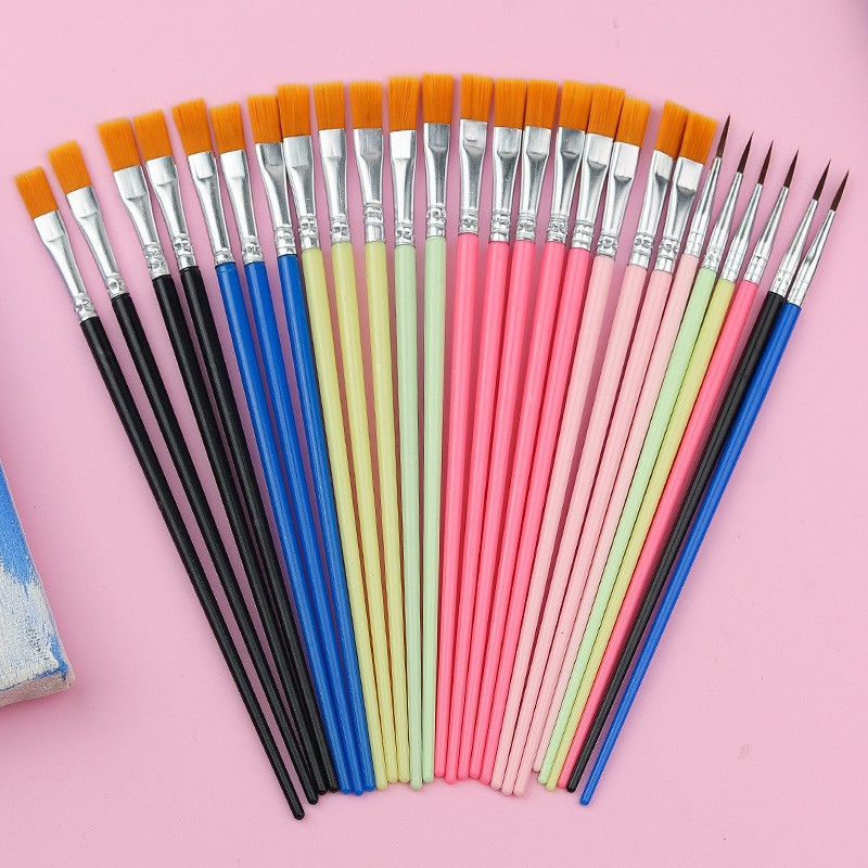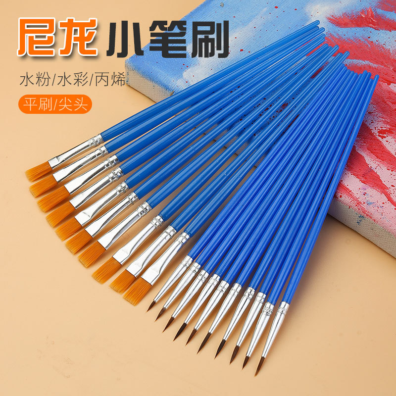 蓝杆尼龙毛数字油画笔涂鸦涂色颜料画刷幼儿园DIY描线勾线水彩笔