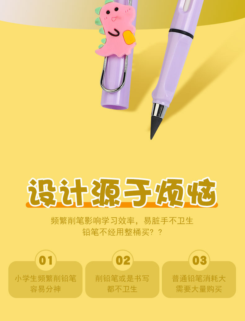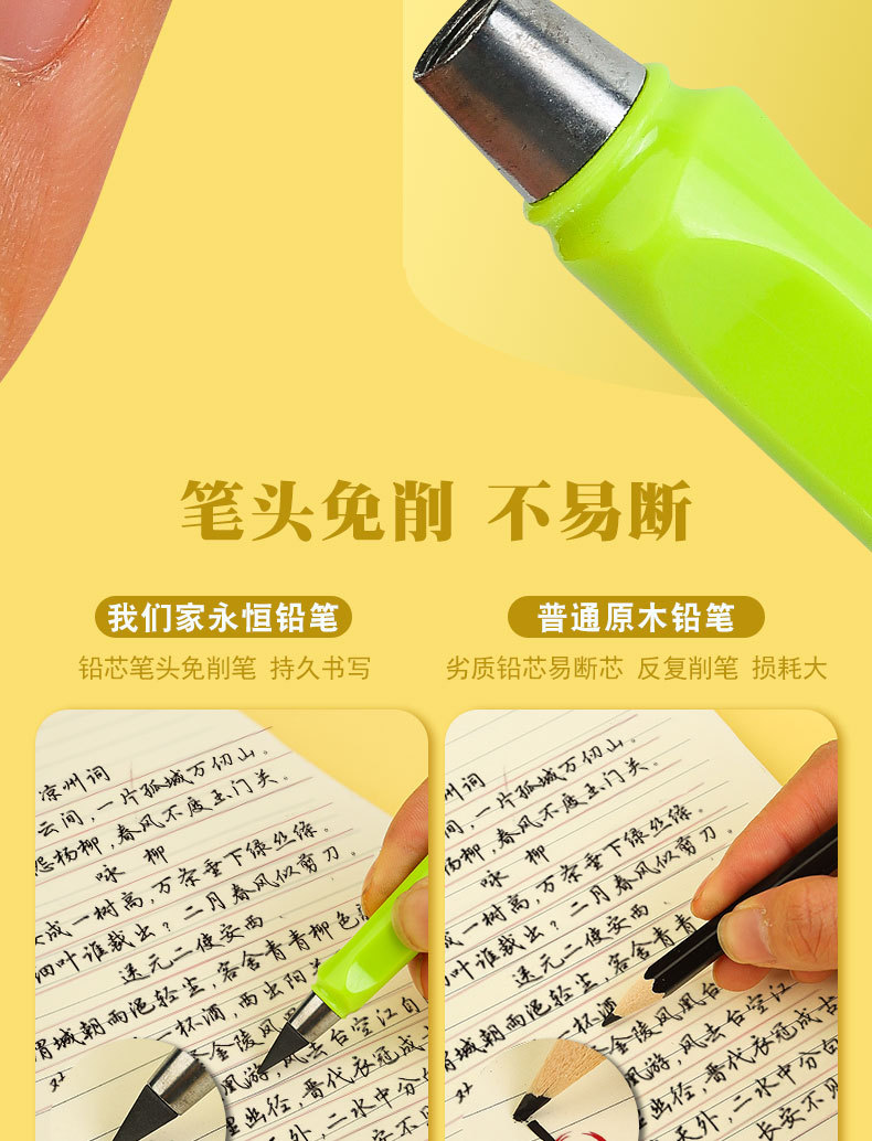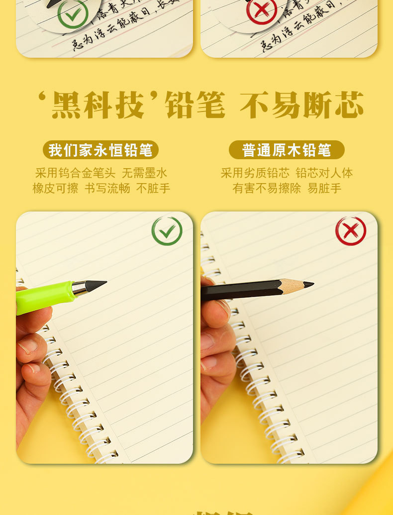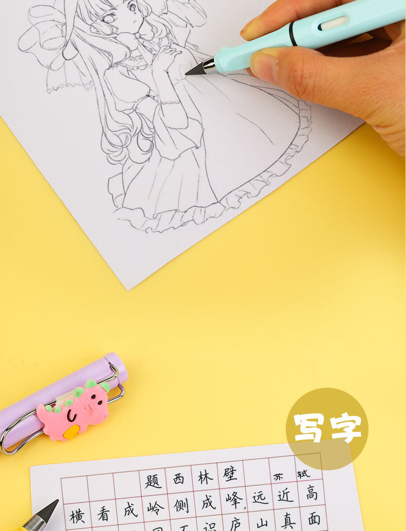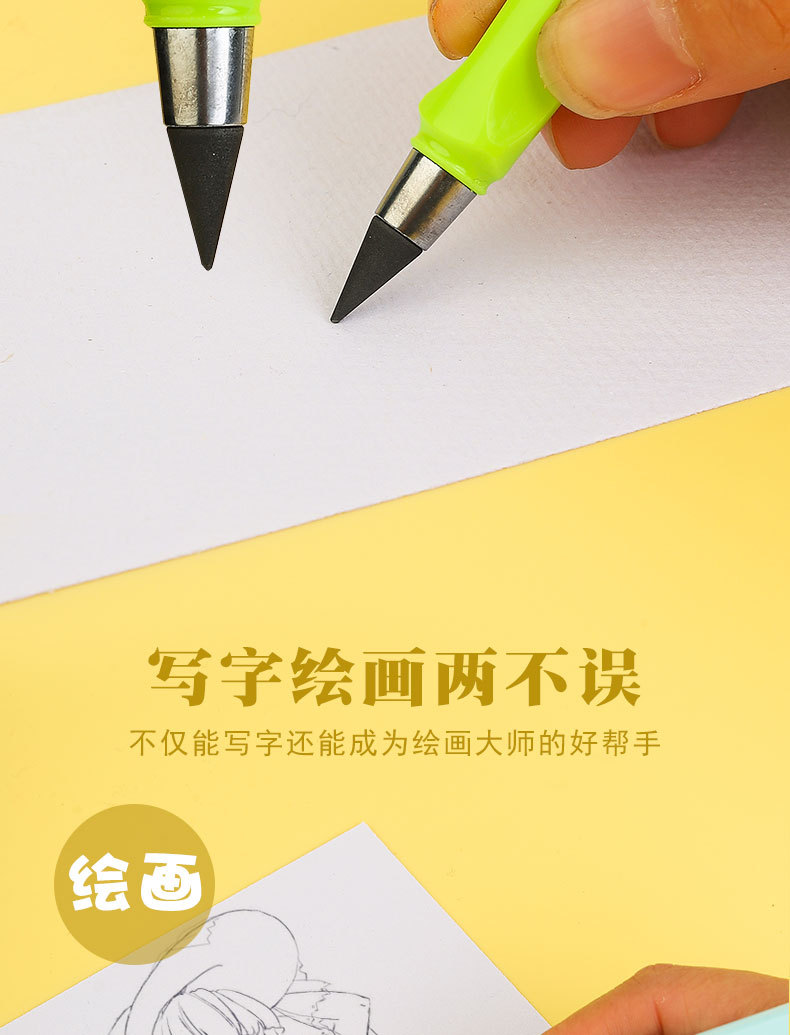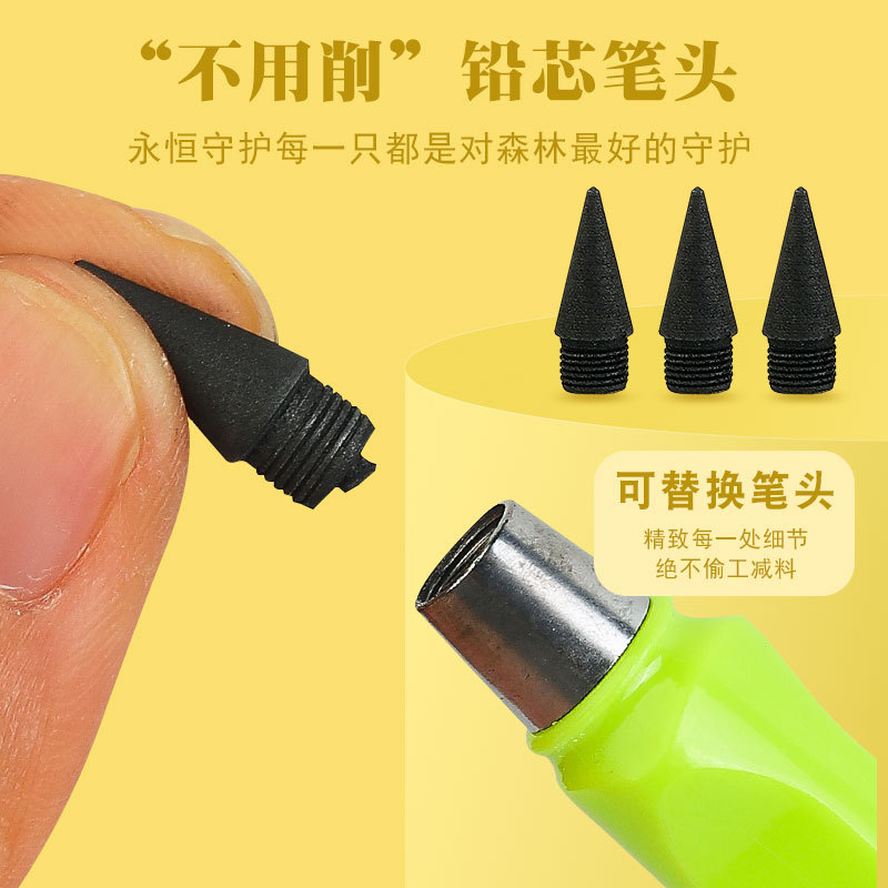 卡通黑科技免削铅笔无墨水正姿永恒铅笔绘画写字可擦写不断铅笔