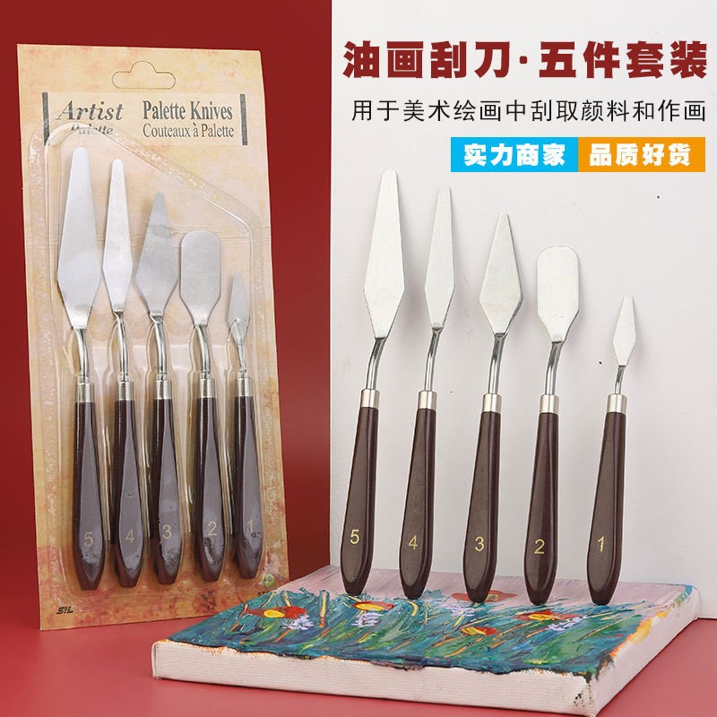工厂直销油画刀新款不锈钢调色刮刀 水粉颜料刮刀5件套装跨境供应