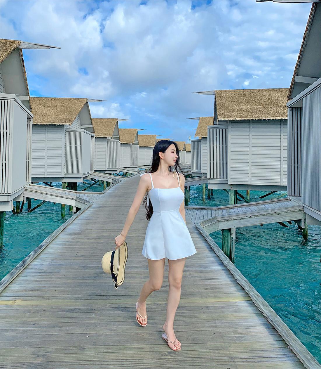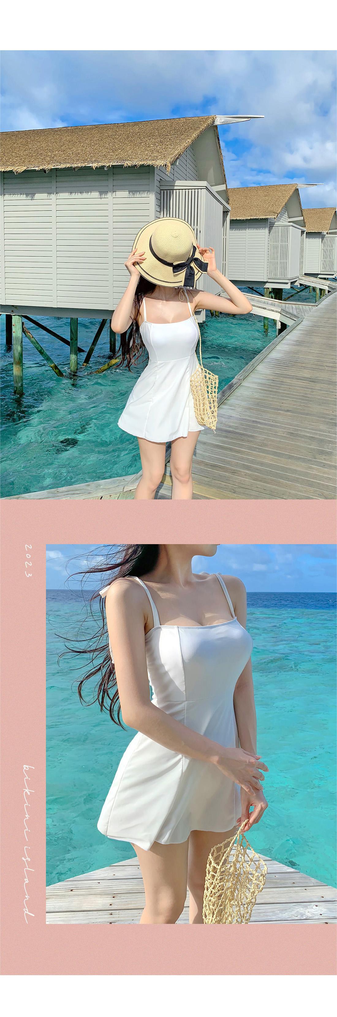 法式连体泳衣24新版吊带系带保守显瘦遮肚纯色性感裙式泡温泉泳装