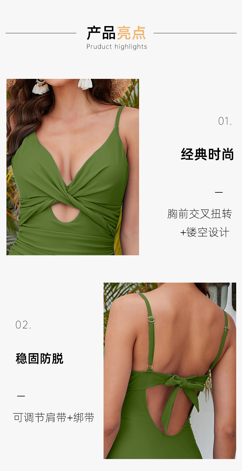 泳衣女款2024新款连体泳衣镂空遮肚深V泳衣女款三角美背欧美泳衣