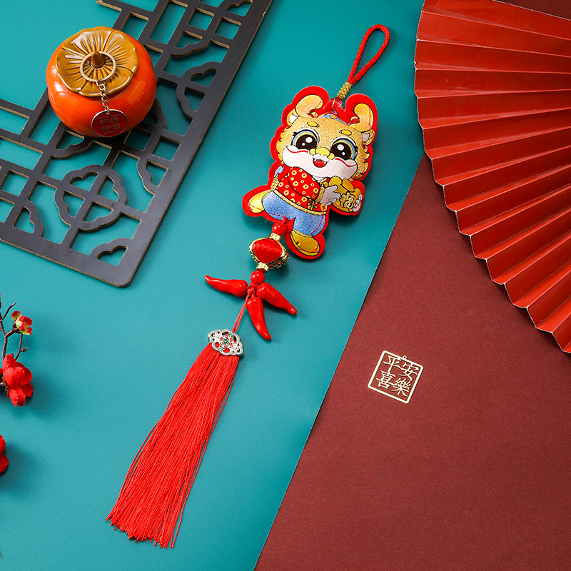 2024龙年香包风铃中国风刺绣风铃挂件福袋香囊亮片铃铛汽车挂件