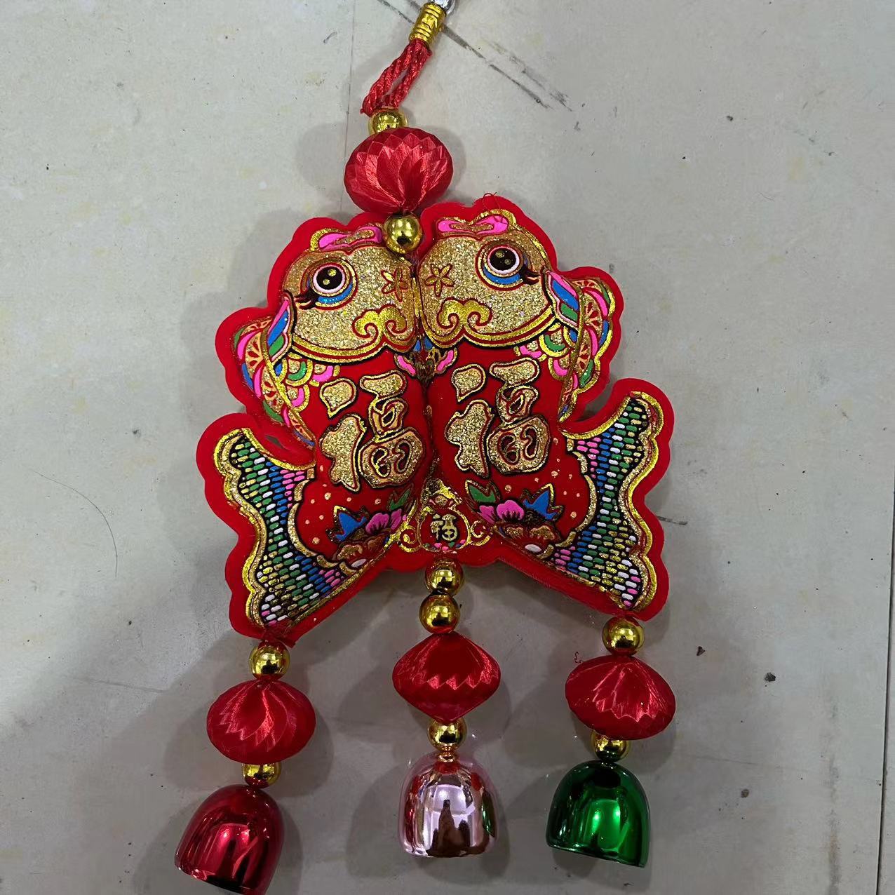 【说明】:双面、绣花布棉布、木鱼 木珠、金色风铃等搭配组合而成