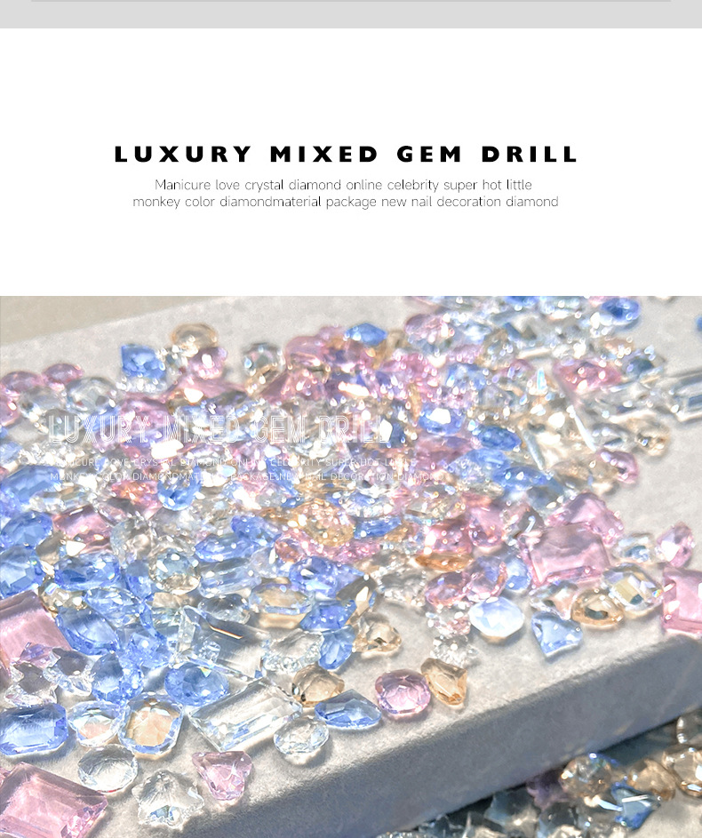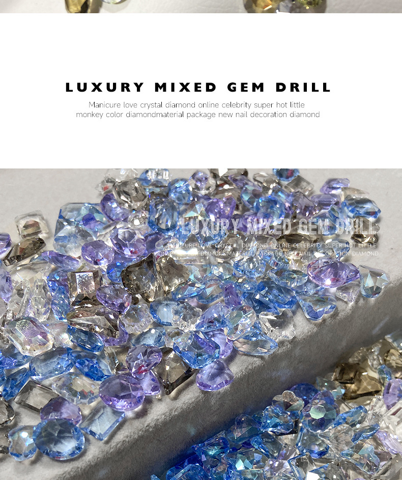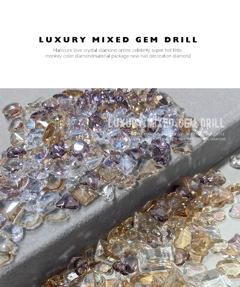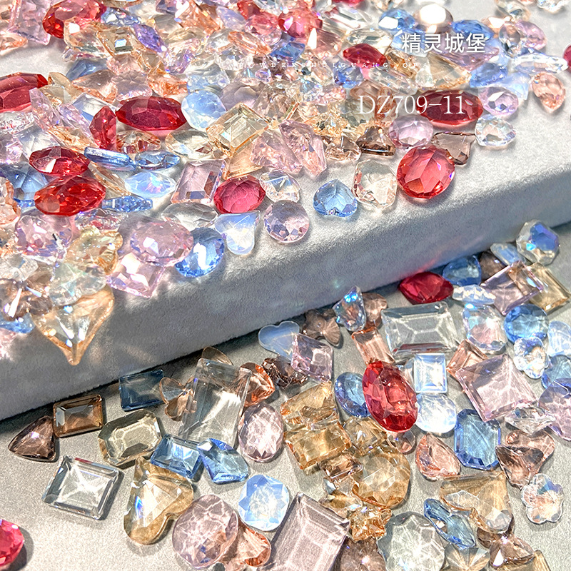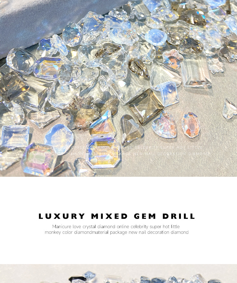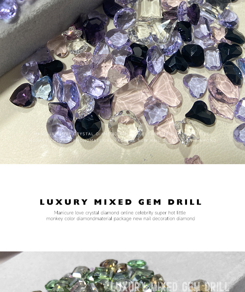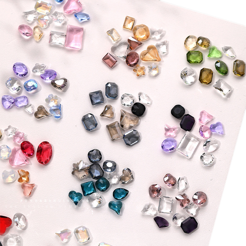 透底混装尖底钻美甲饰品透色冰糖爱心歪心水滴异形指甲钻配饰批发