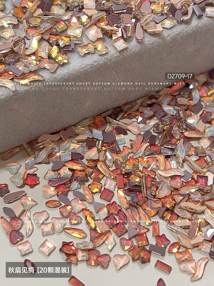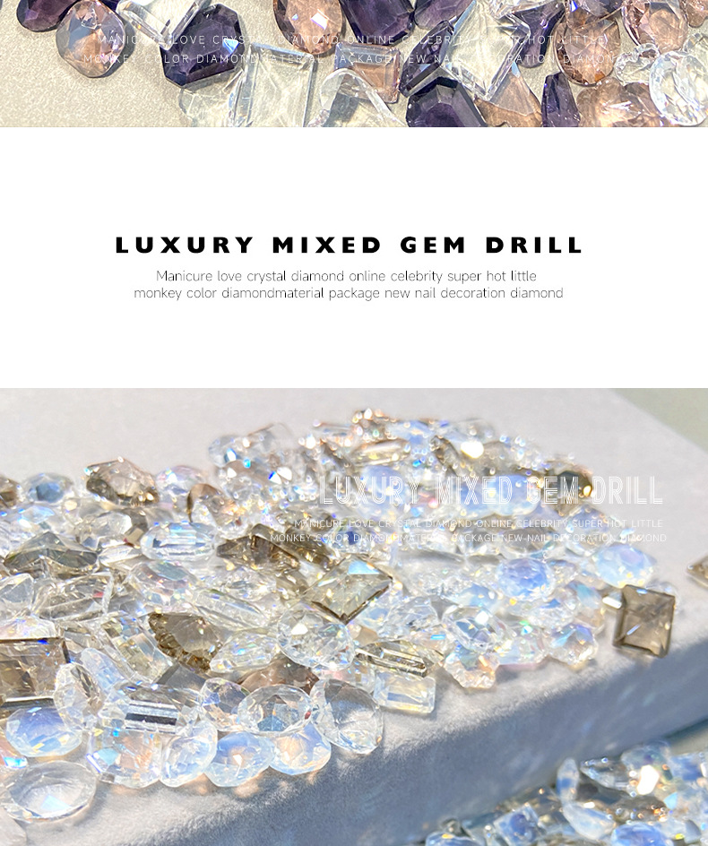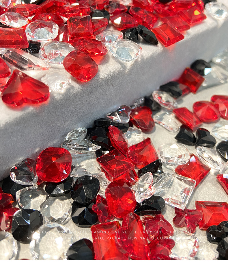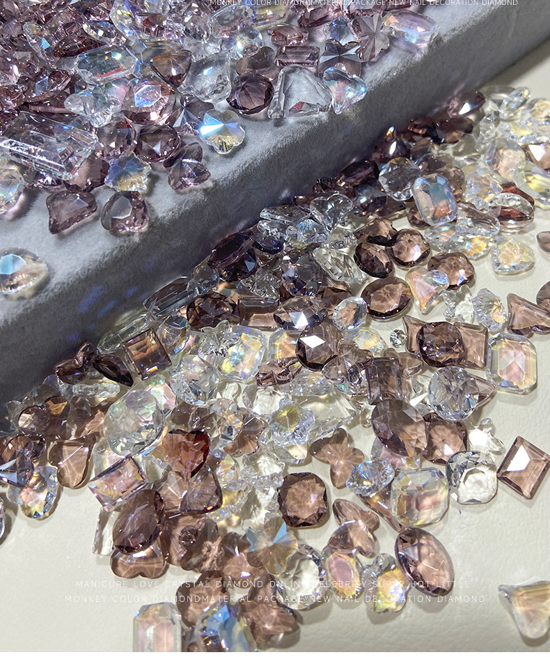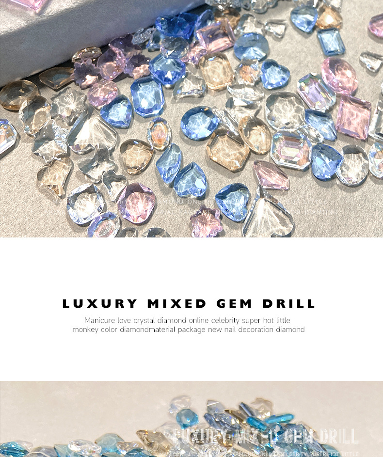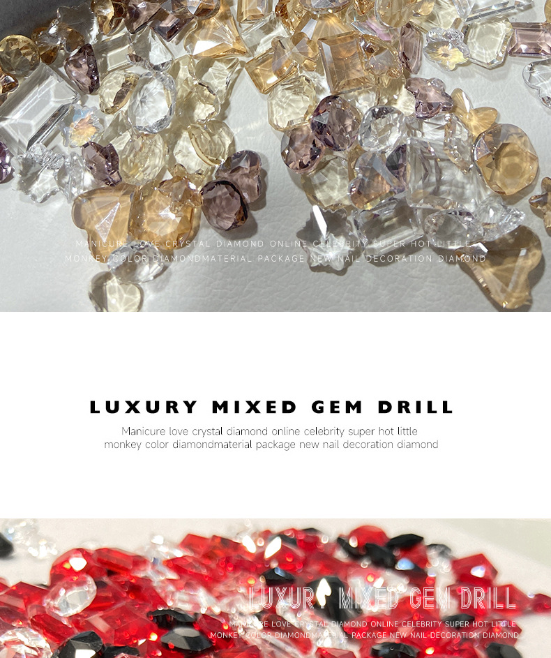 透底混装尖底钻美甲饰品透色冰糖爱心歪心水滴异形指甲钻配饰批发