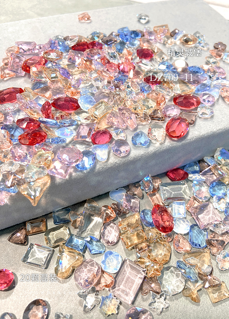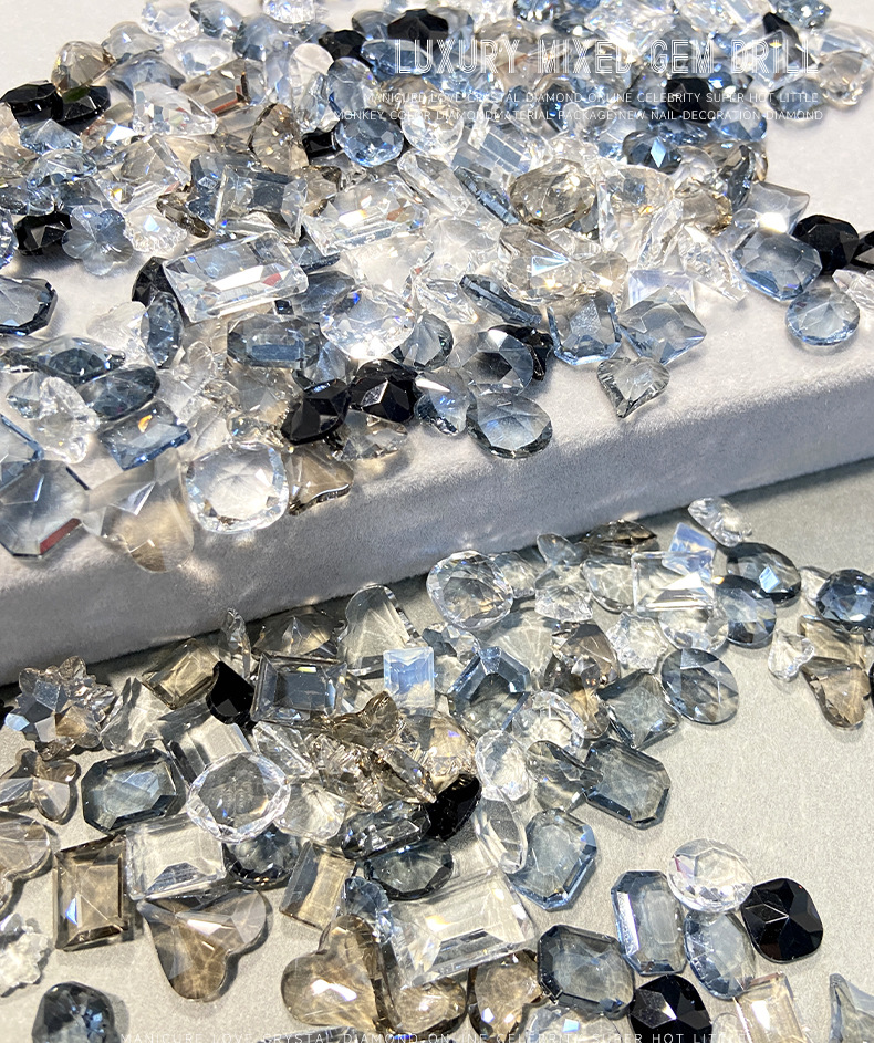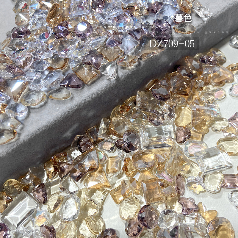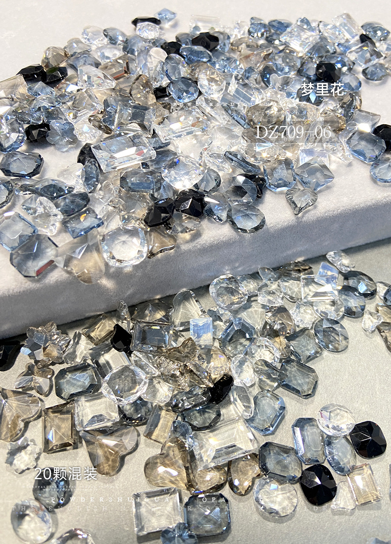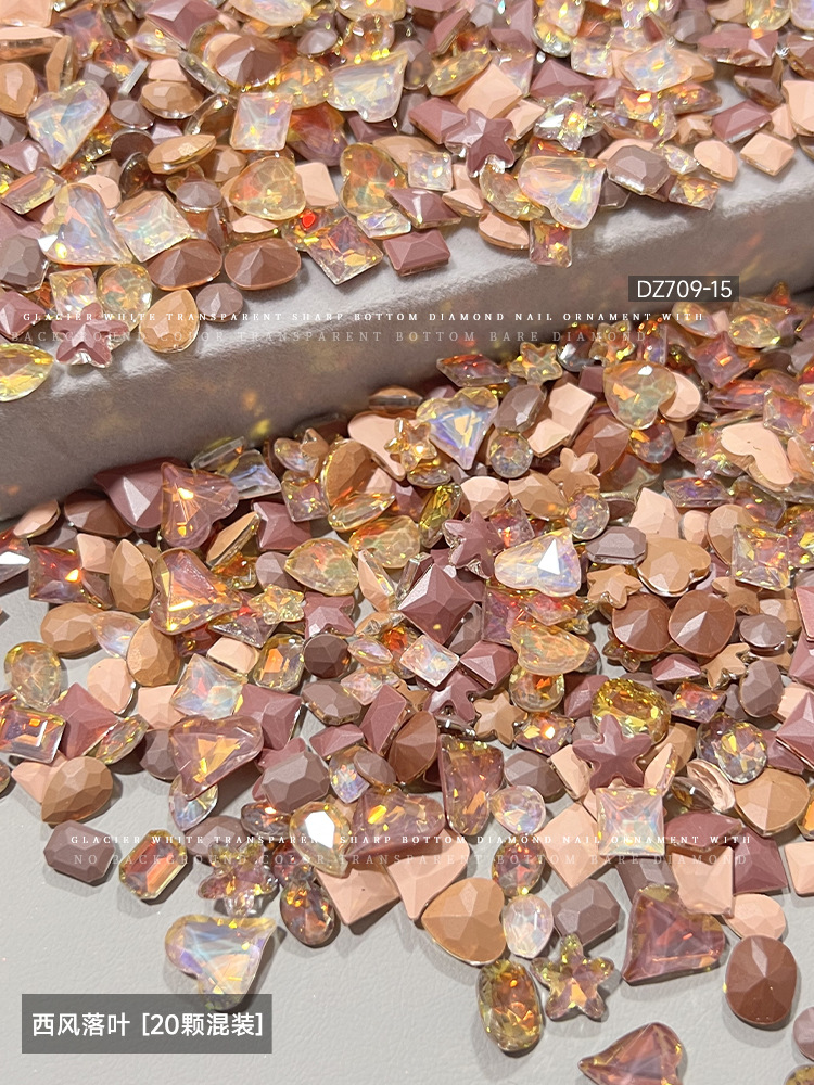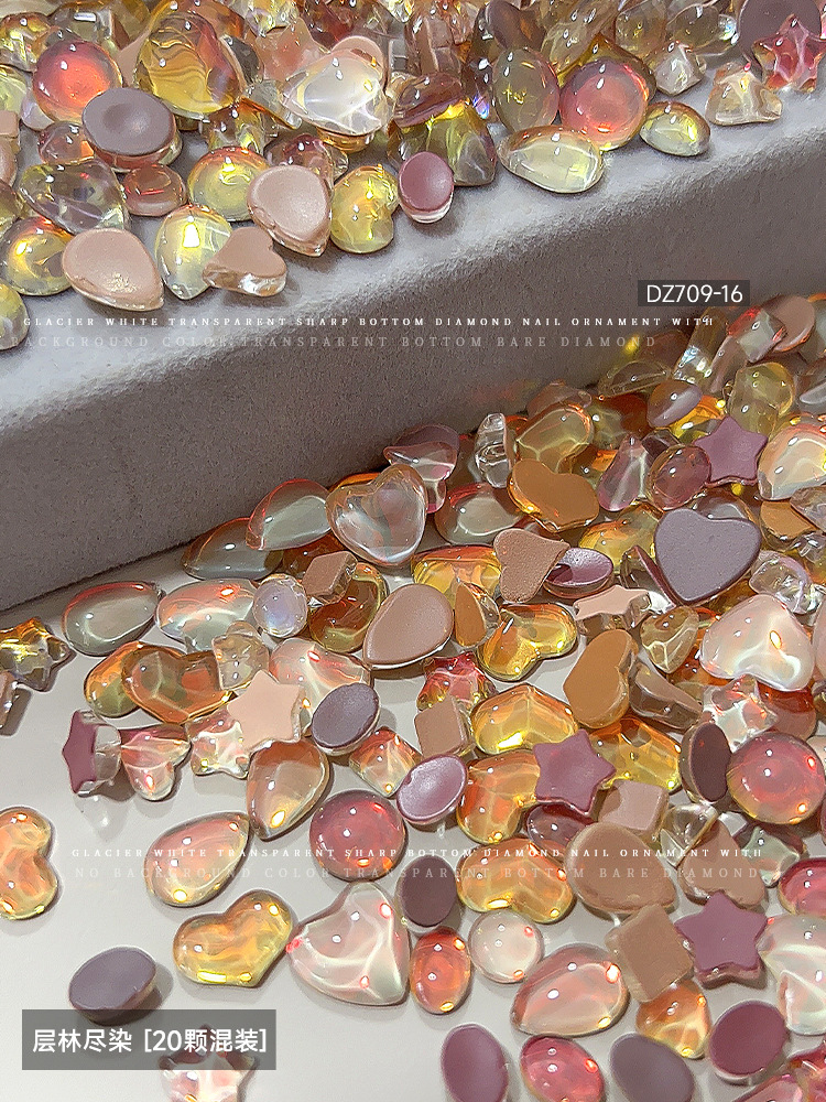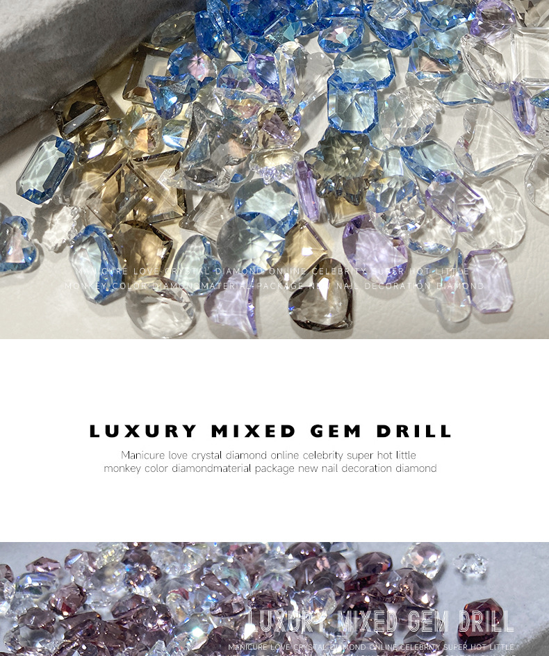 透底混装尖底钻美甲饰品透色冰糖爱心歪心水滴异形指甲钻配饰批发