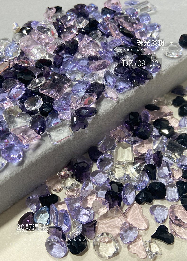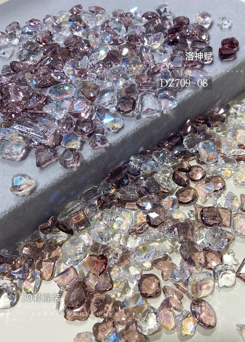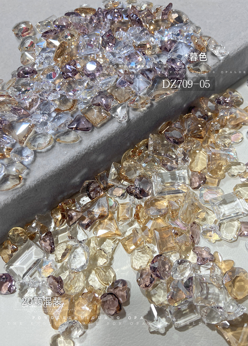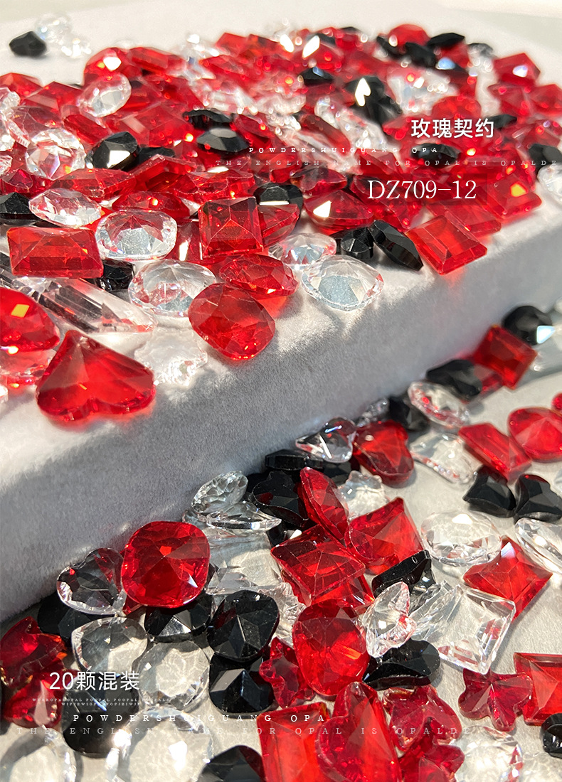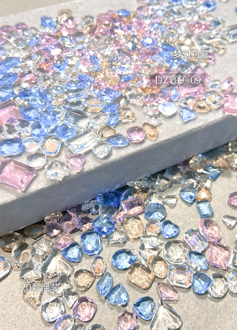 透底混装尖底钻美甲饰品透色冰糖爱心歪心水滴异形指甲钻配饰批发