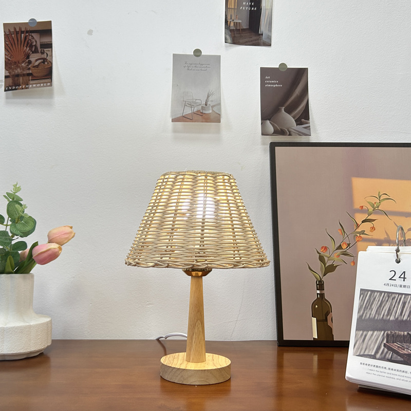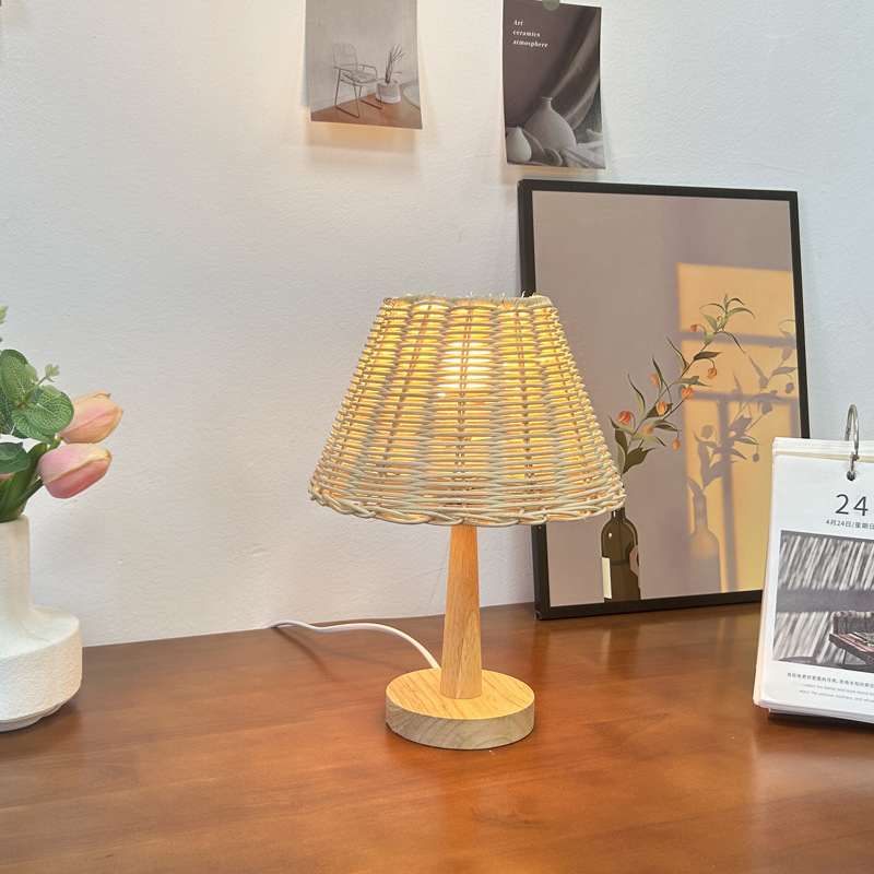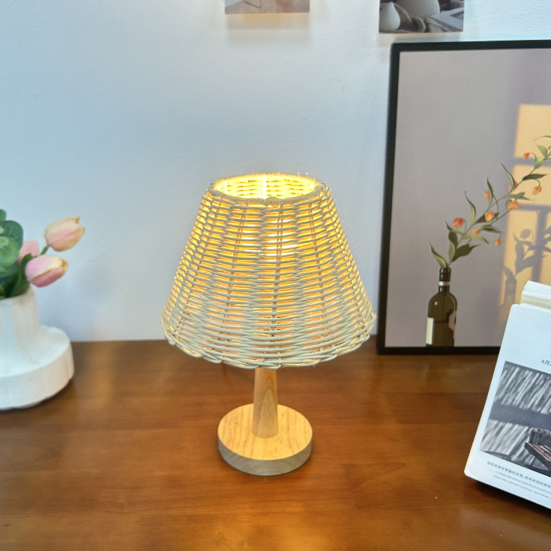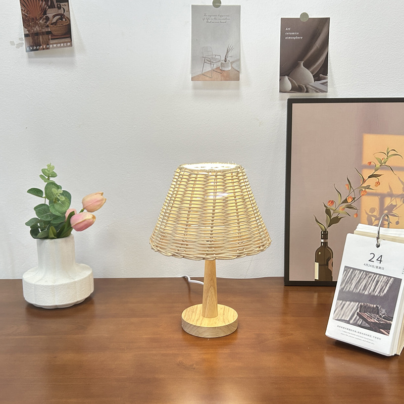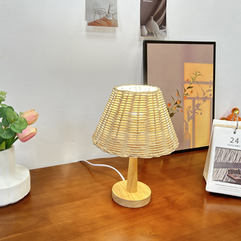 外贸专供日式手工藤编织侘寂风台灯禅意茶室灯田园民宿客栈灯