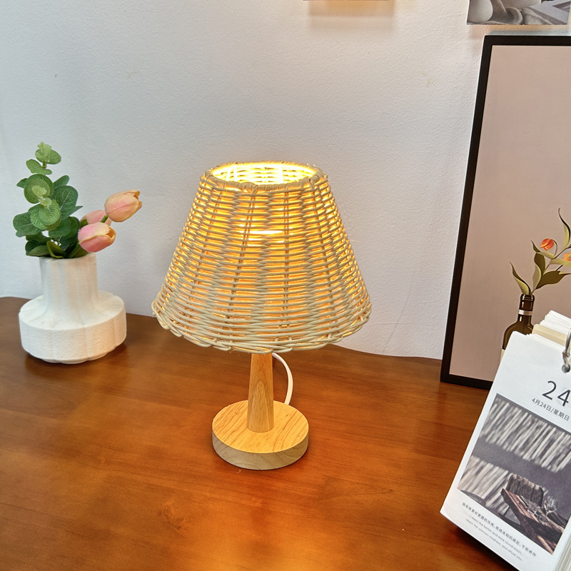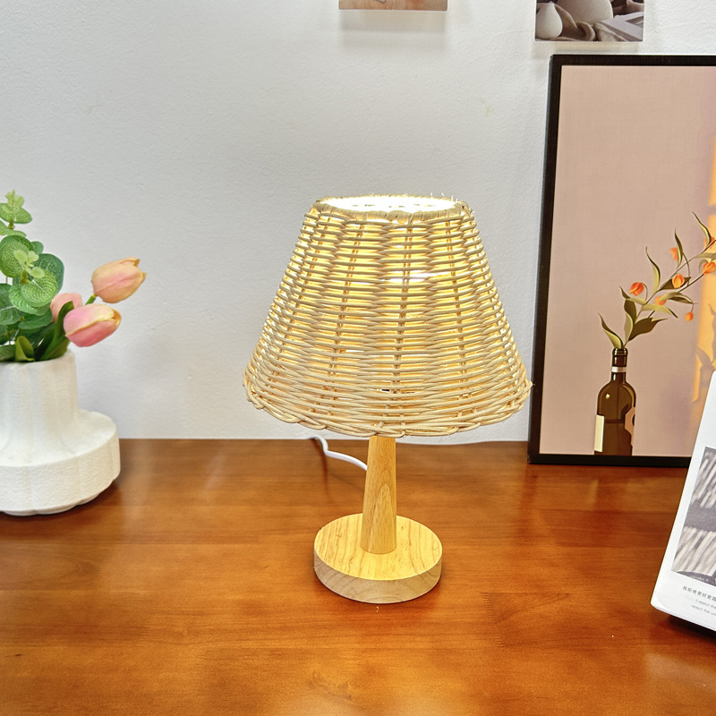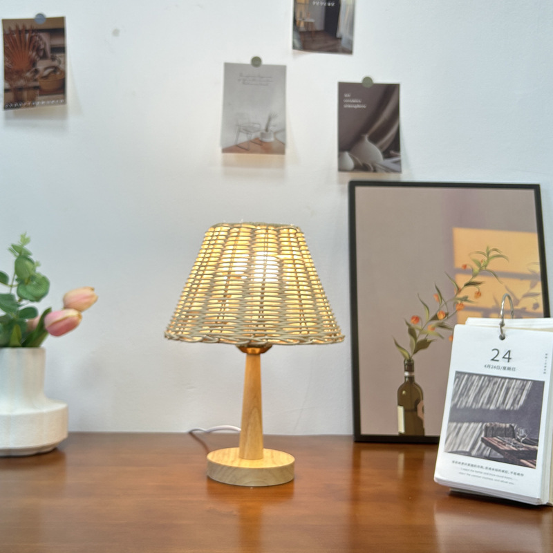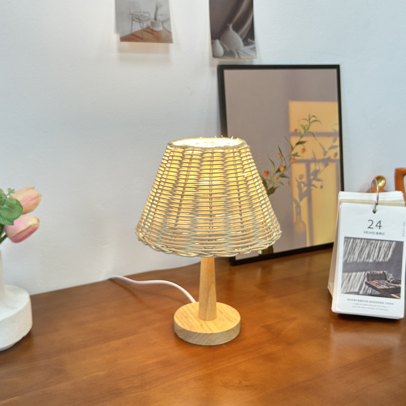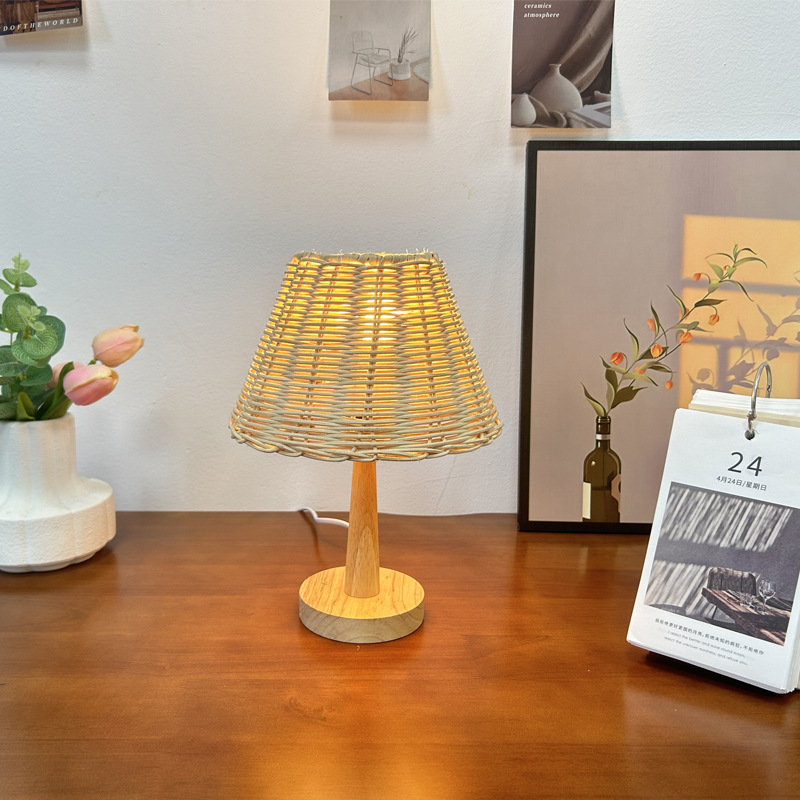 外贸专供日式手工藤编织侘寂风台灯禅意茶室灯田园民宿客栈灯