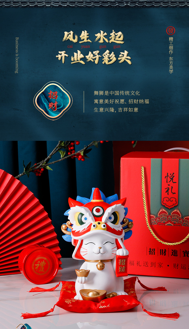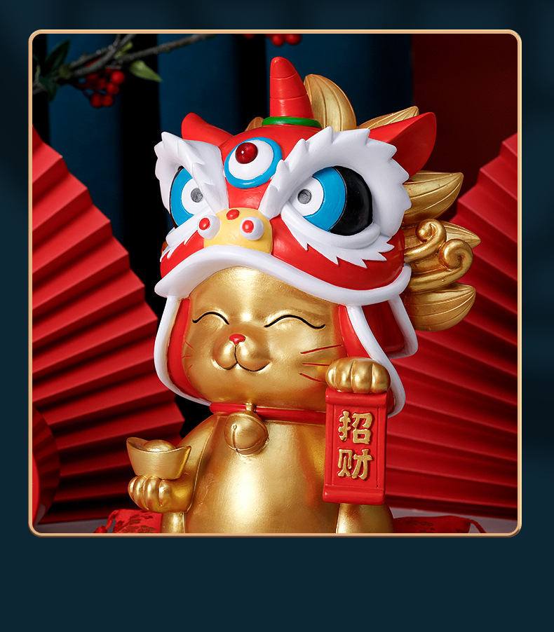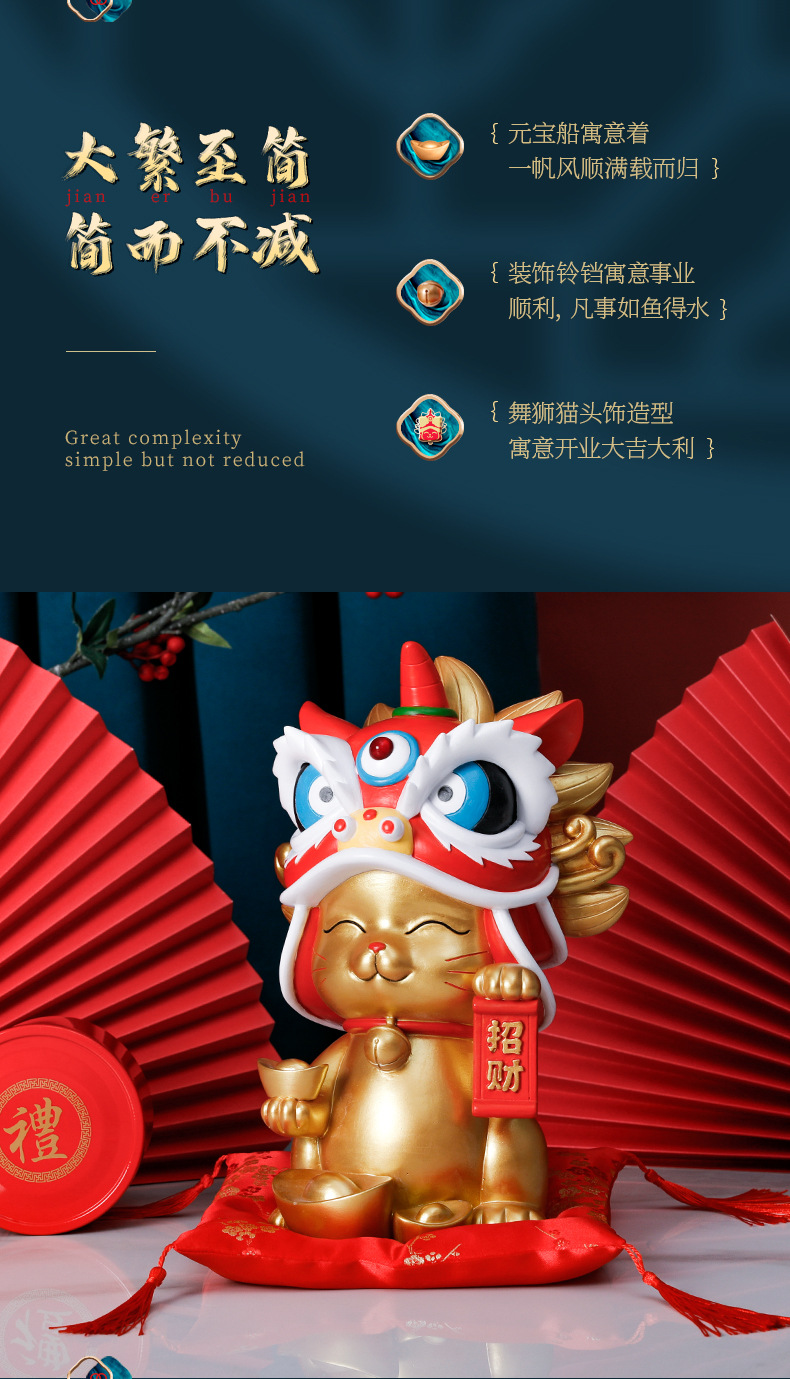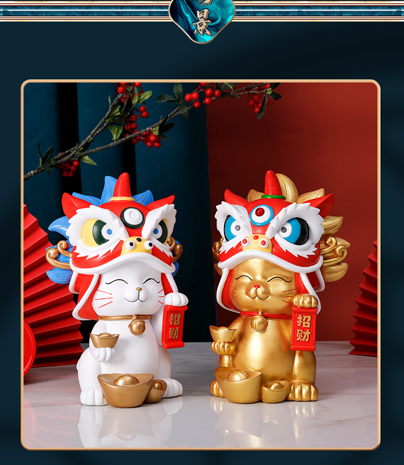 外贸专供故宫醒狮舞树脂摆件乔迁店铺开业贺礼品实用发财文创树脂