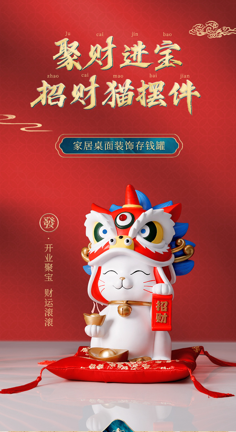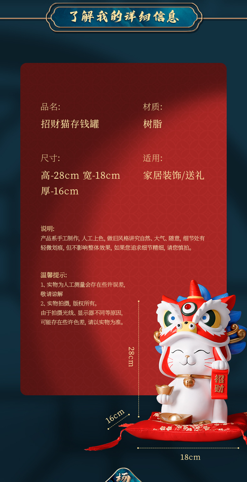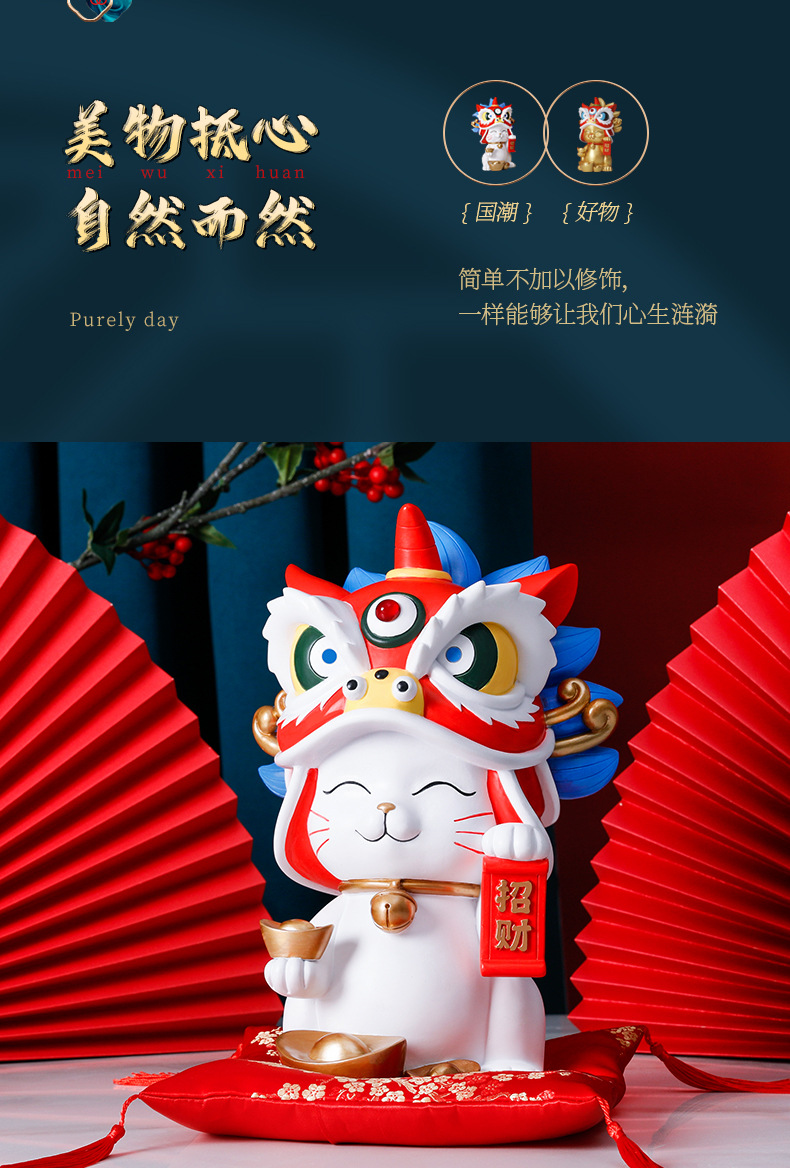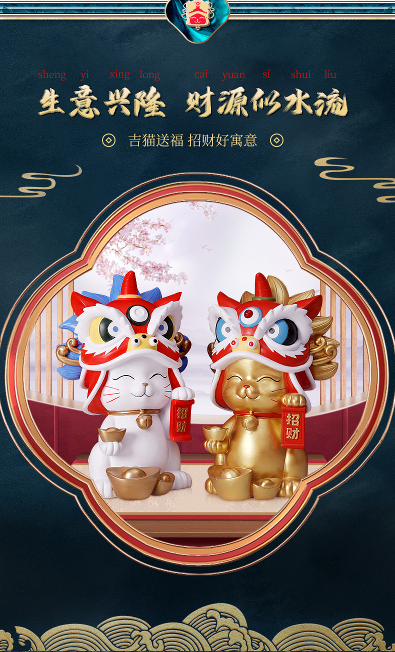 外贸专供故宫醒狮舞树脂摆件乔迁店铺开业贺礼品实用发财文创树脂