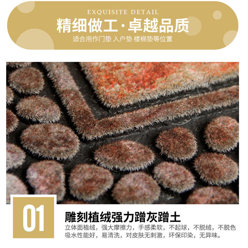 红日地毯脚垫子美式室外防滑门垫别墅入户蹭土垫橡胶植绒地垫