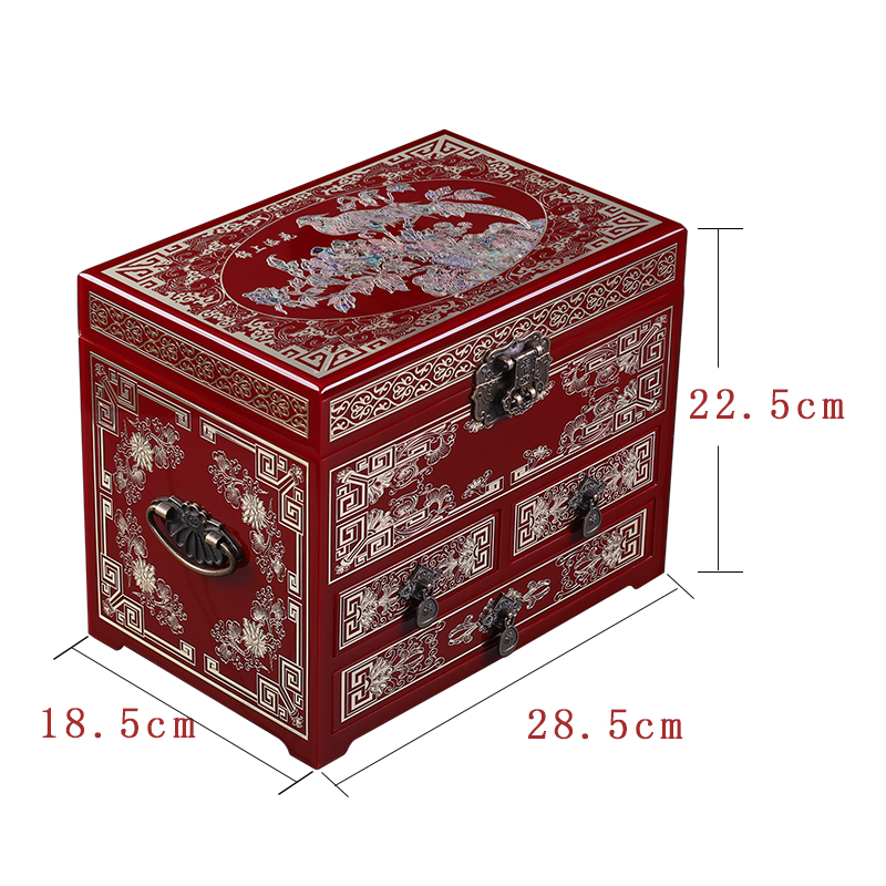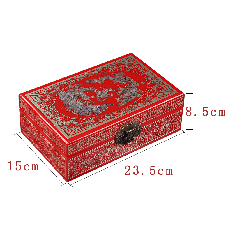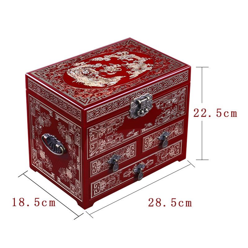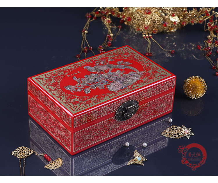 实木铜丝镶嵌螺钿复古首饰收纳盒平遥漆器盒古风妆奁结婚陪嫁送礼