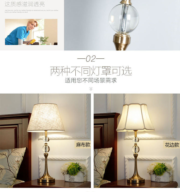 外贸专供美式台灯台灯床头灯可调光简约北欧温馨床头灯水晶家用