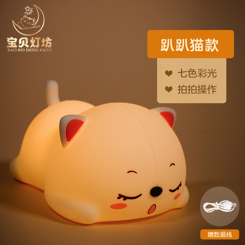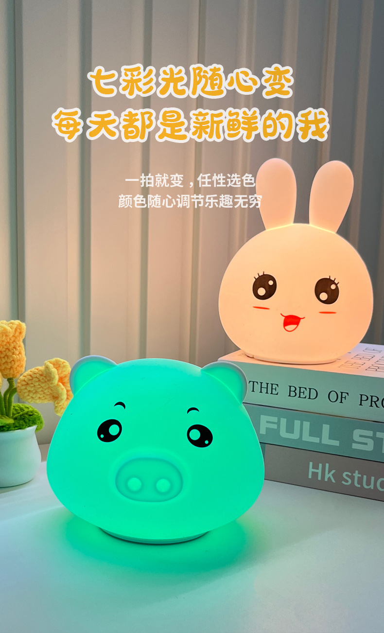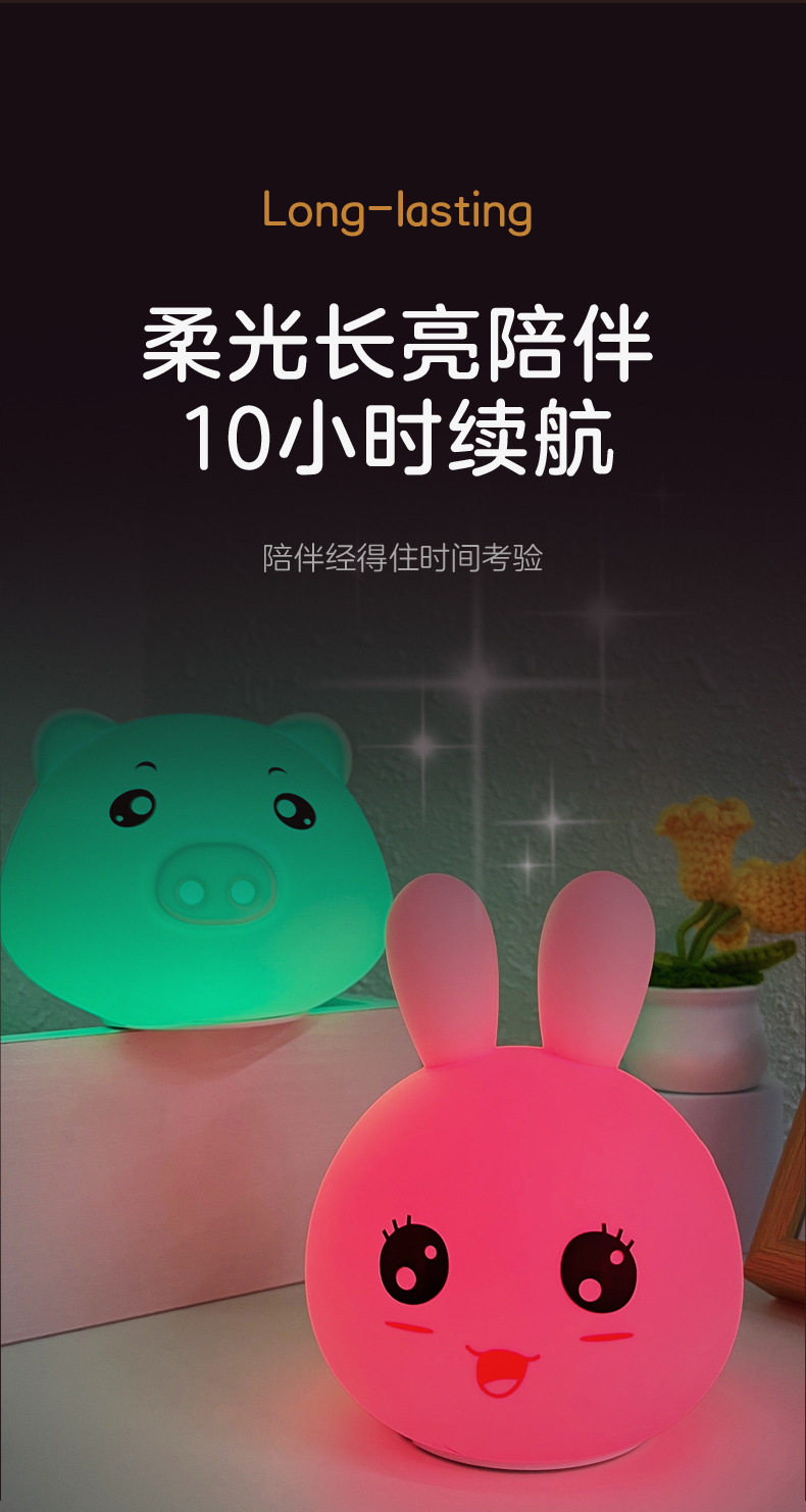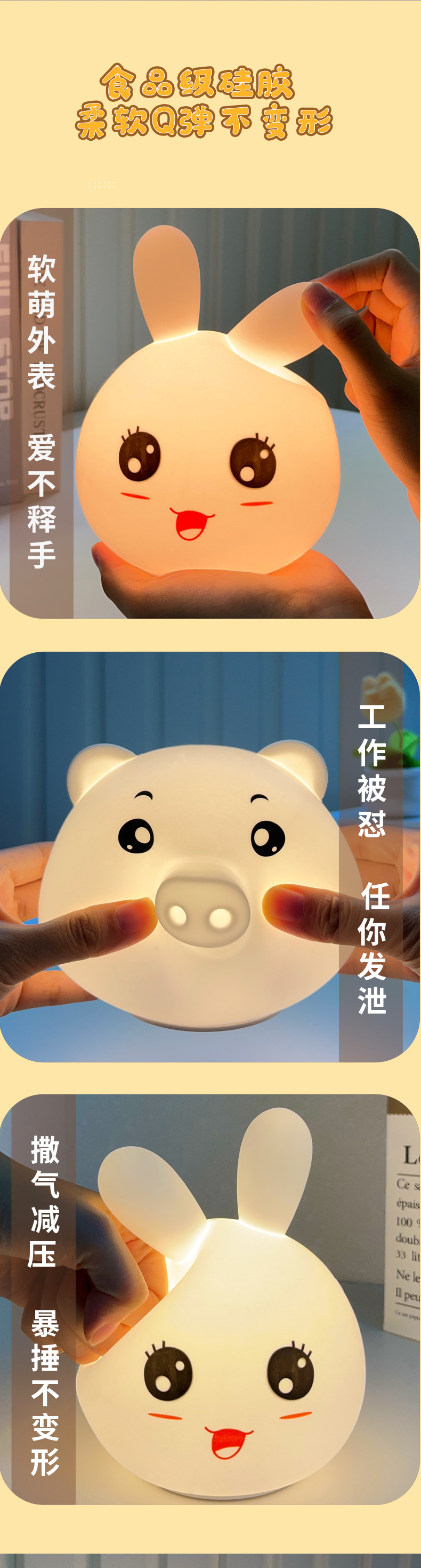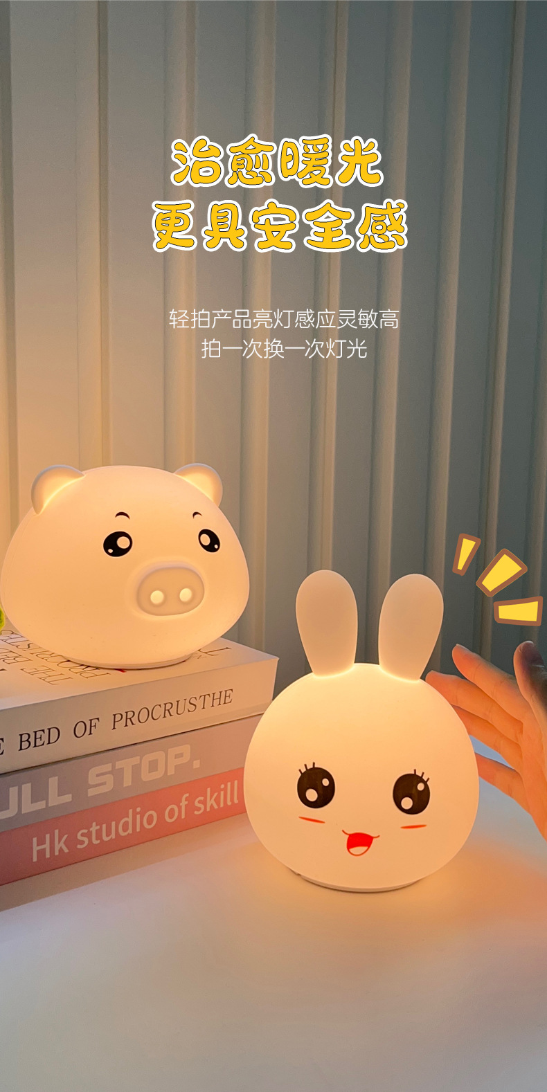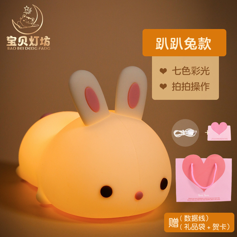 外贸专供兔子硅胶小夜灯床头柔光节能拍拍灯充电台灯睡眠灯可爱