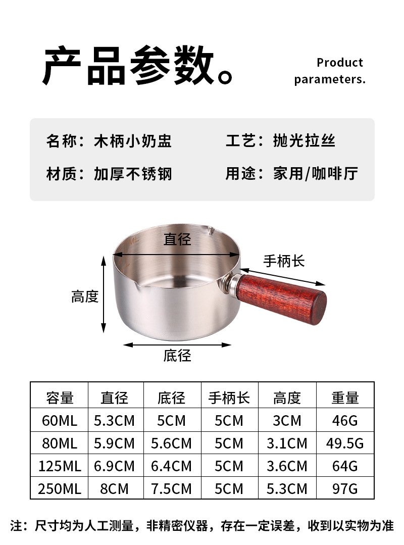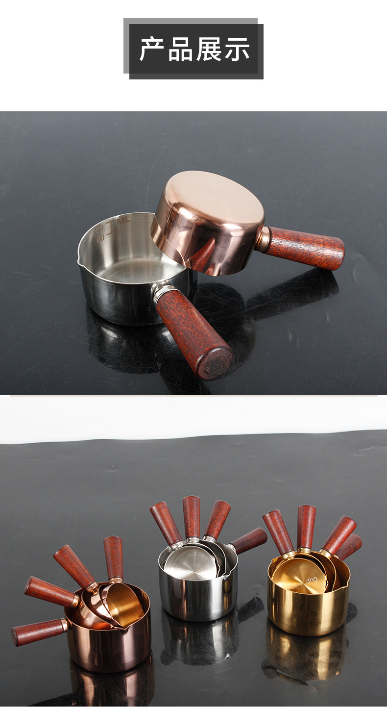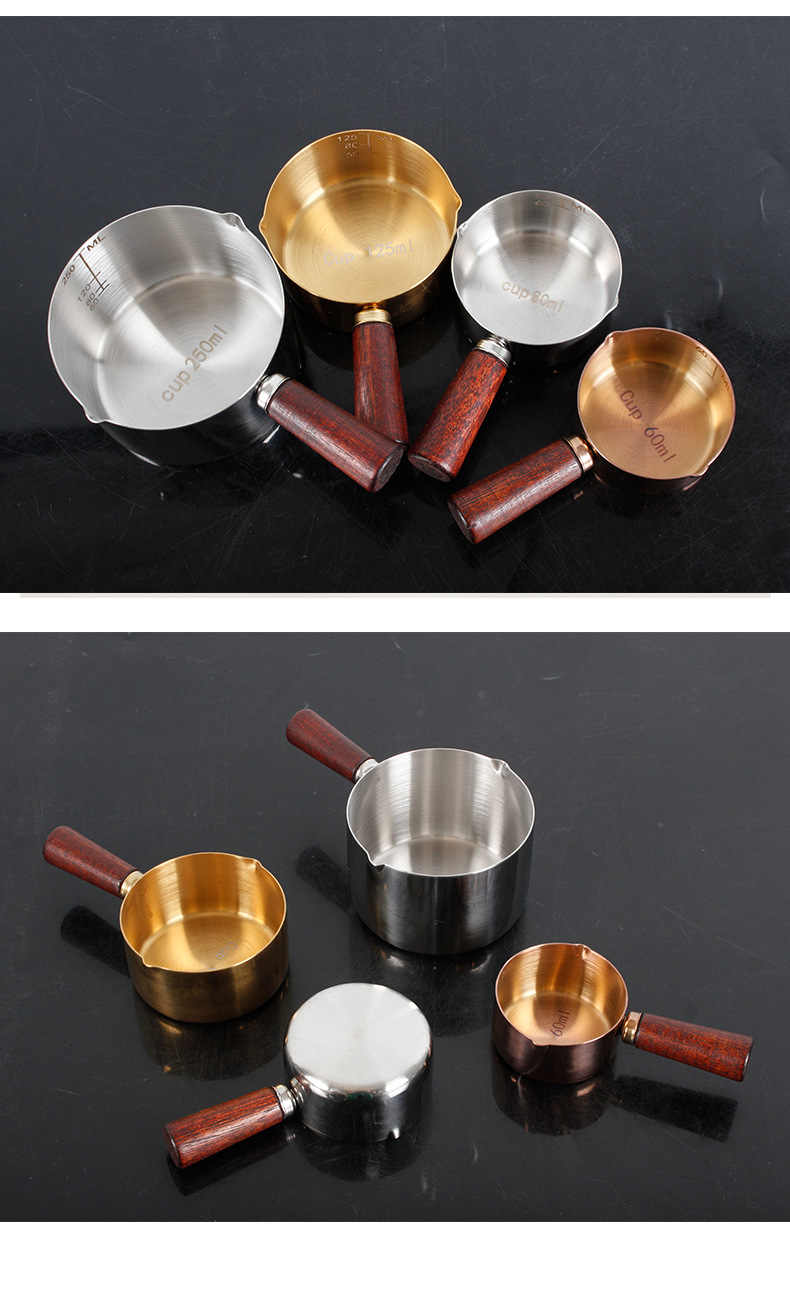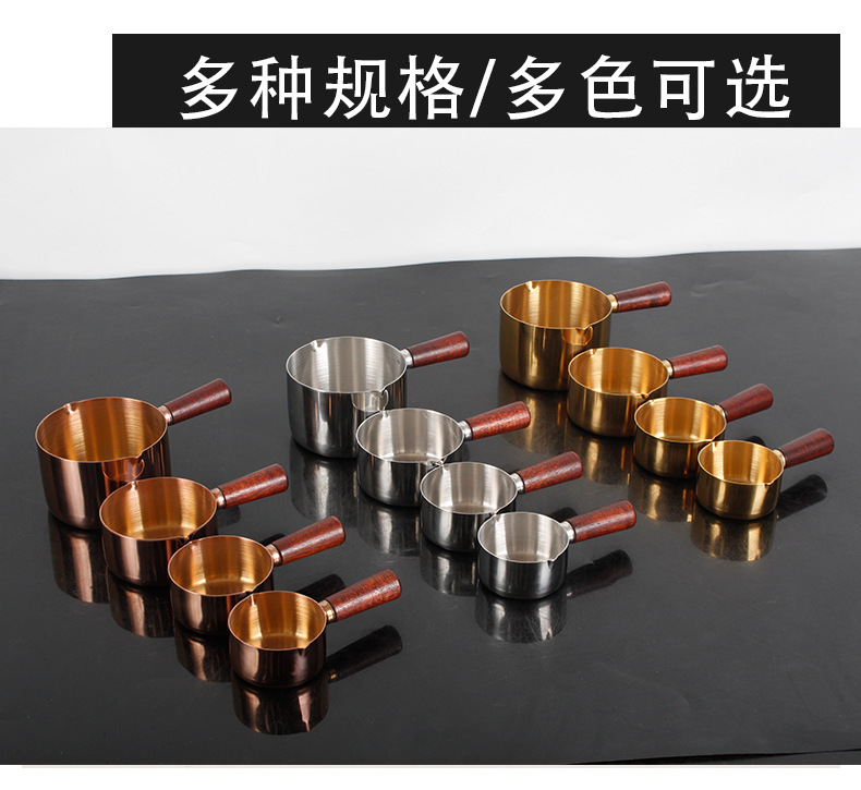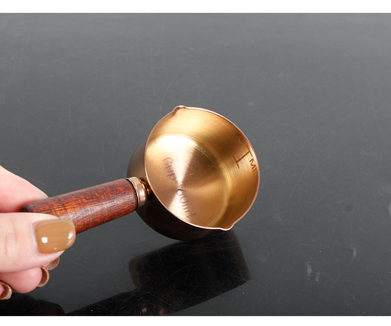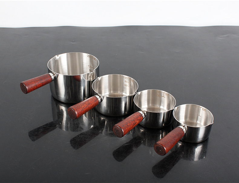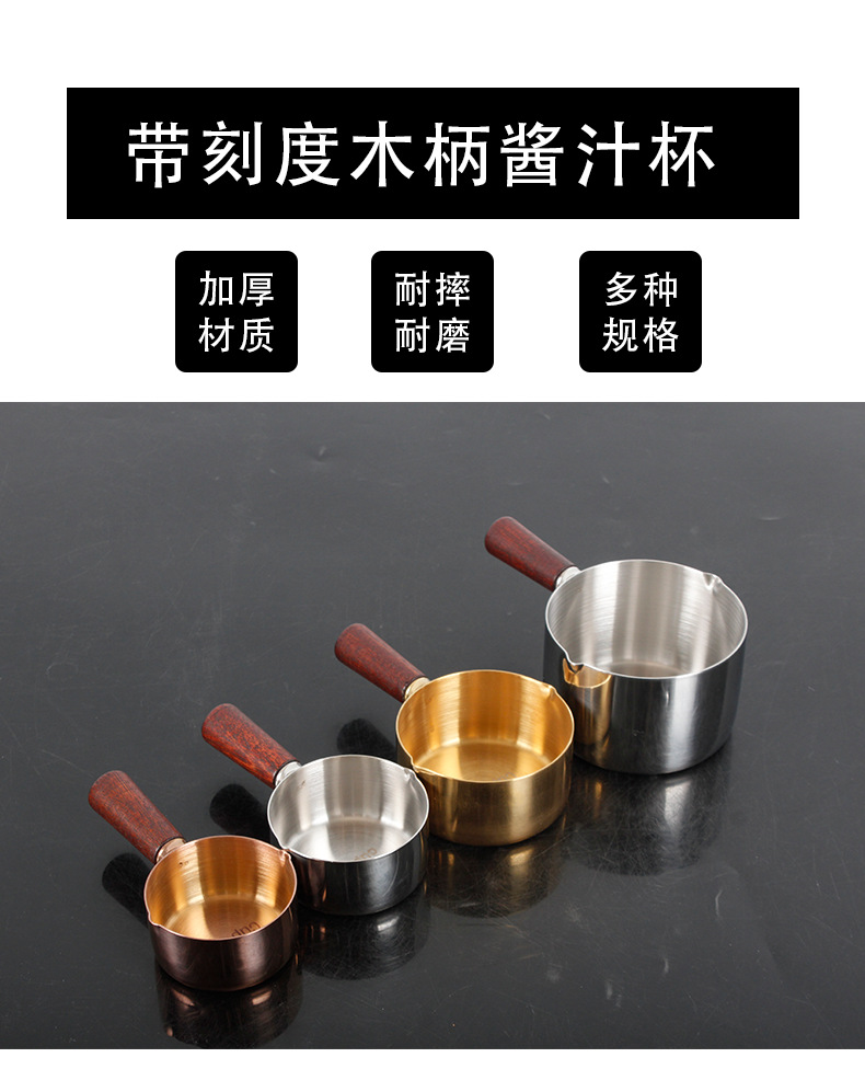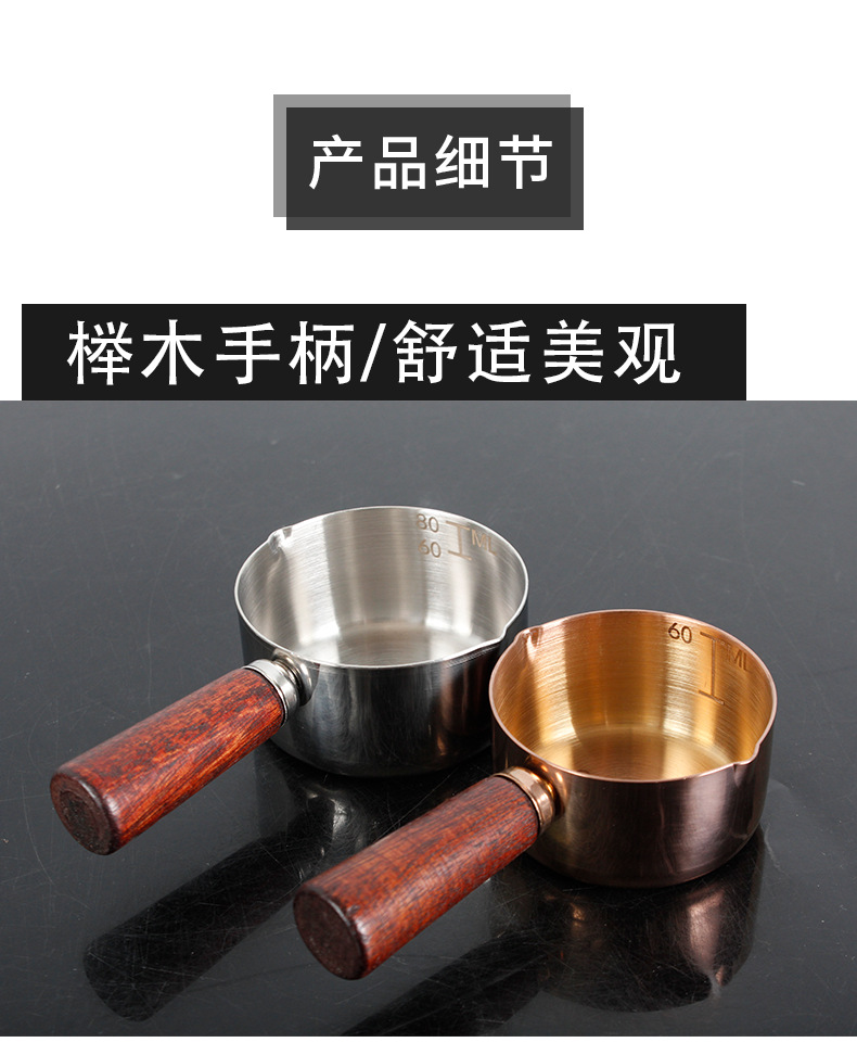 不锈钢木柄酱汁杯 咖啡液萃取杯西餐厅量杯迷你小奶盅浓缩刻度杯