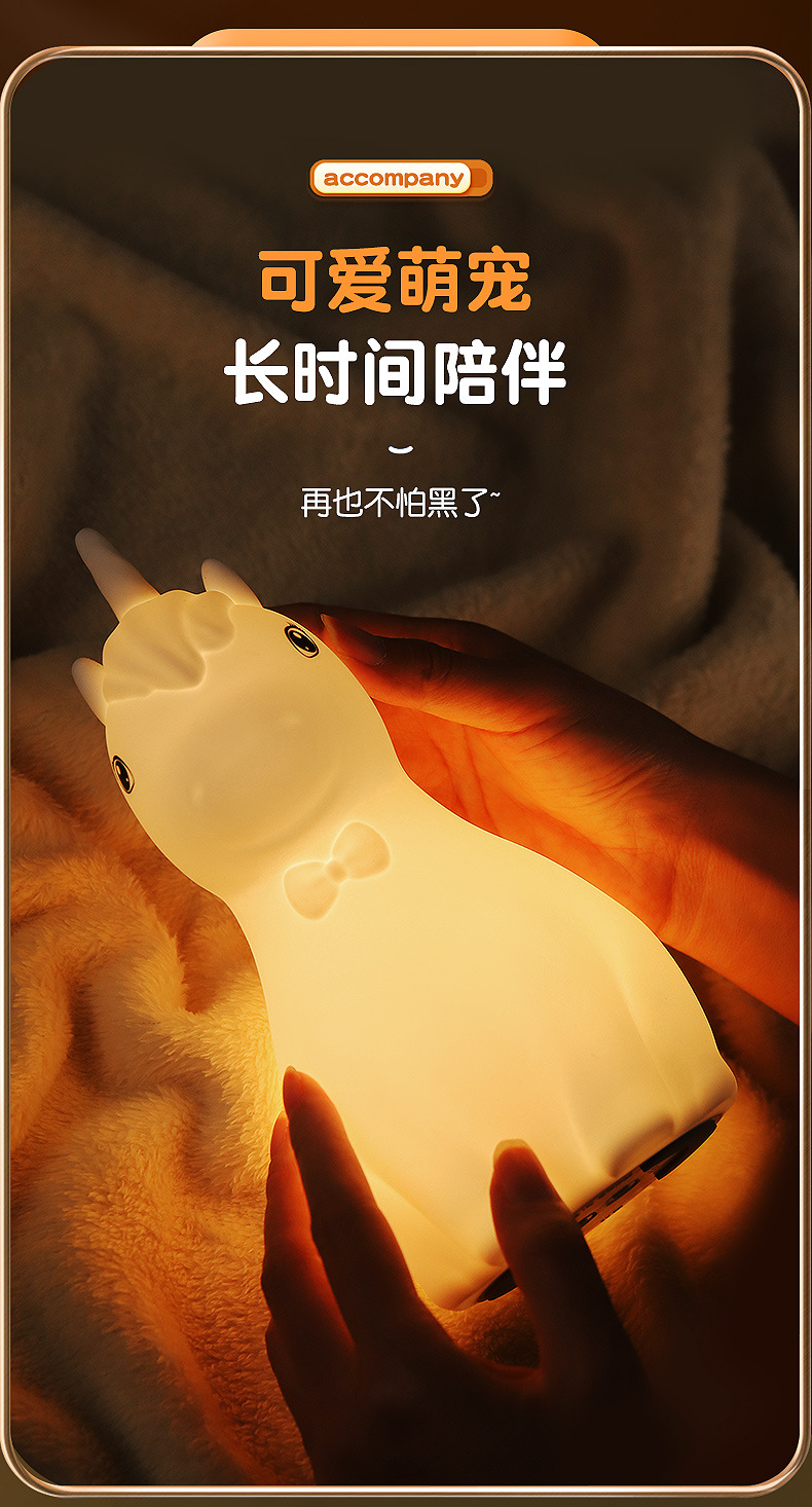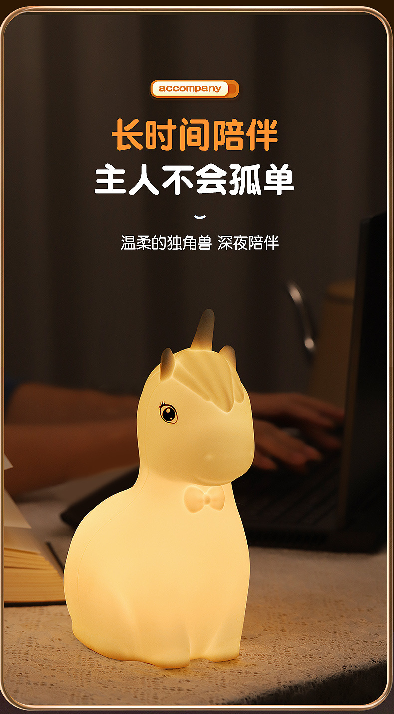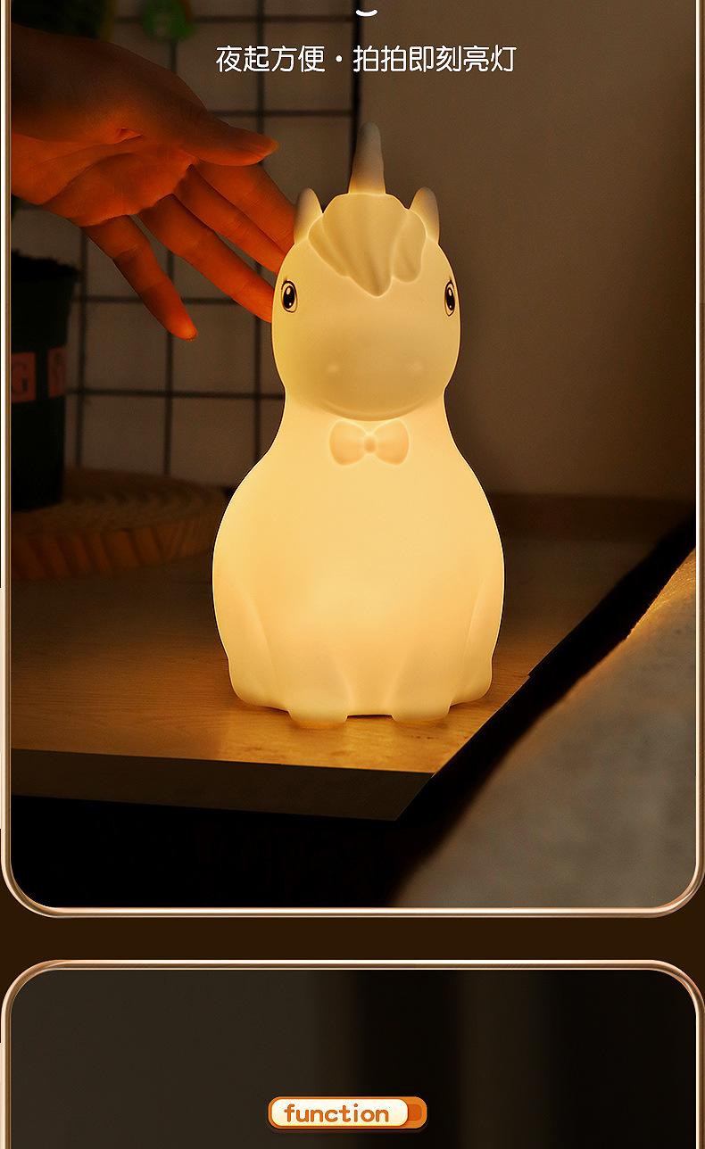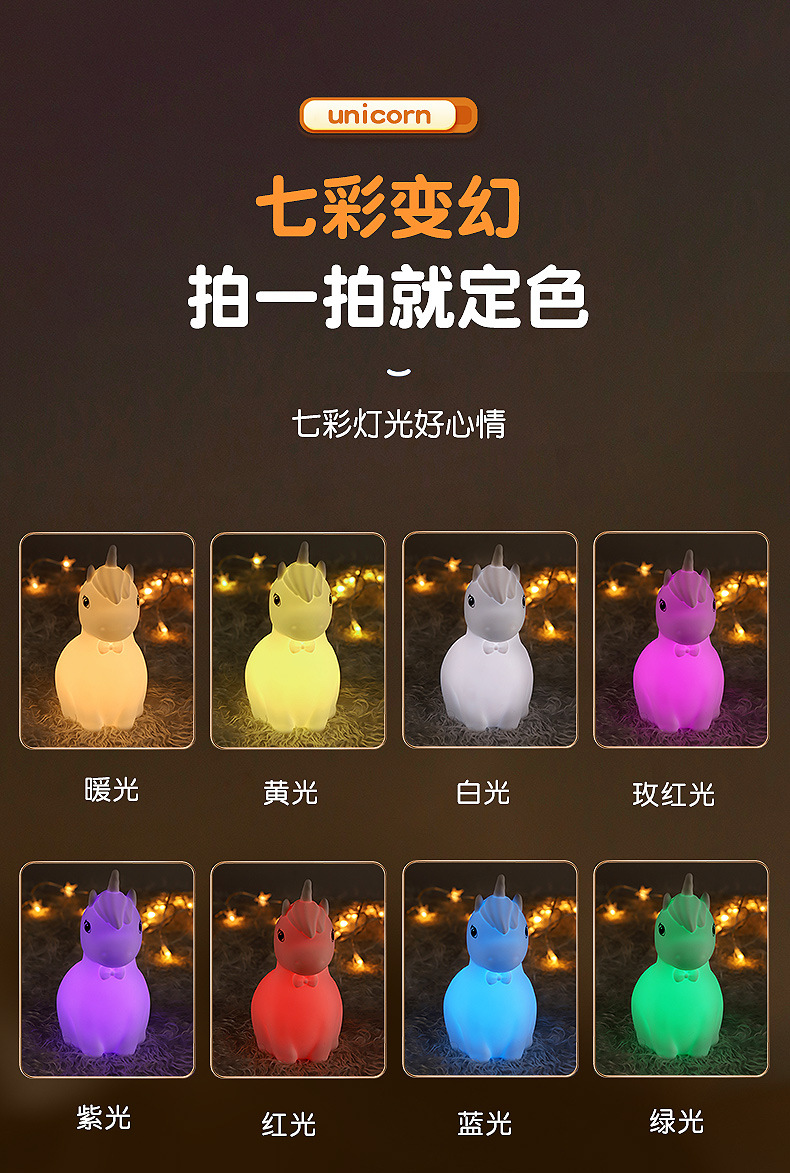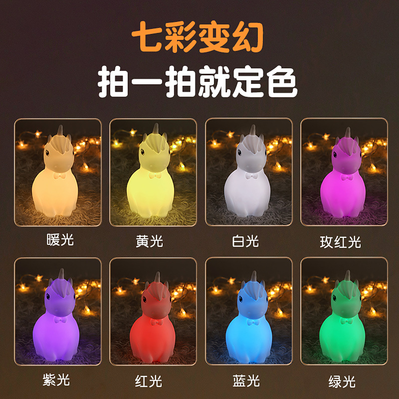 跨境独角兽硅胶灯拍拍灯高颜值儿童七彩渐变氛围灯床头喂奶小夜灯