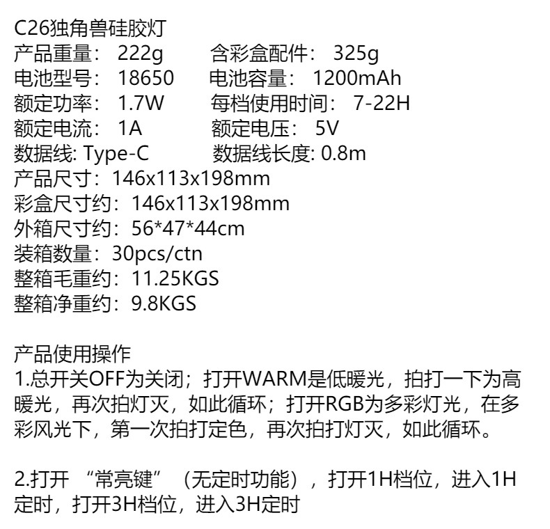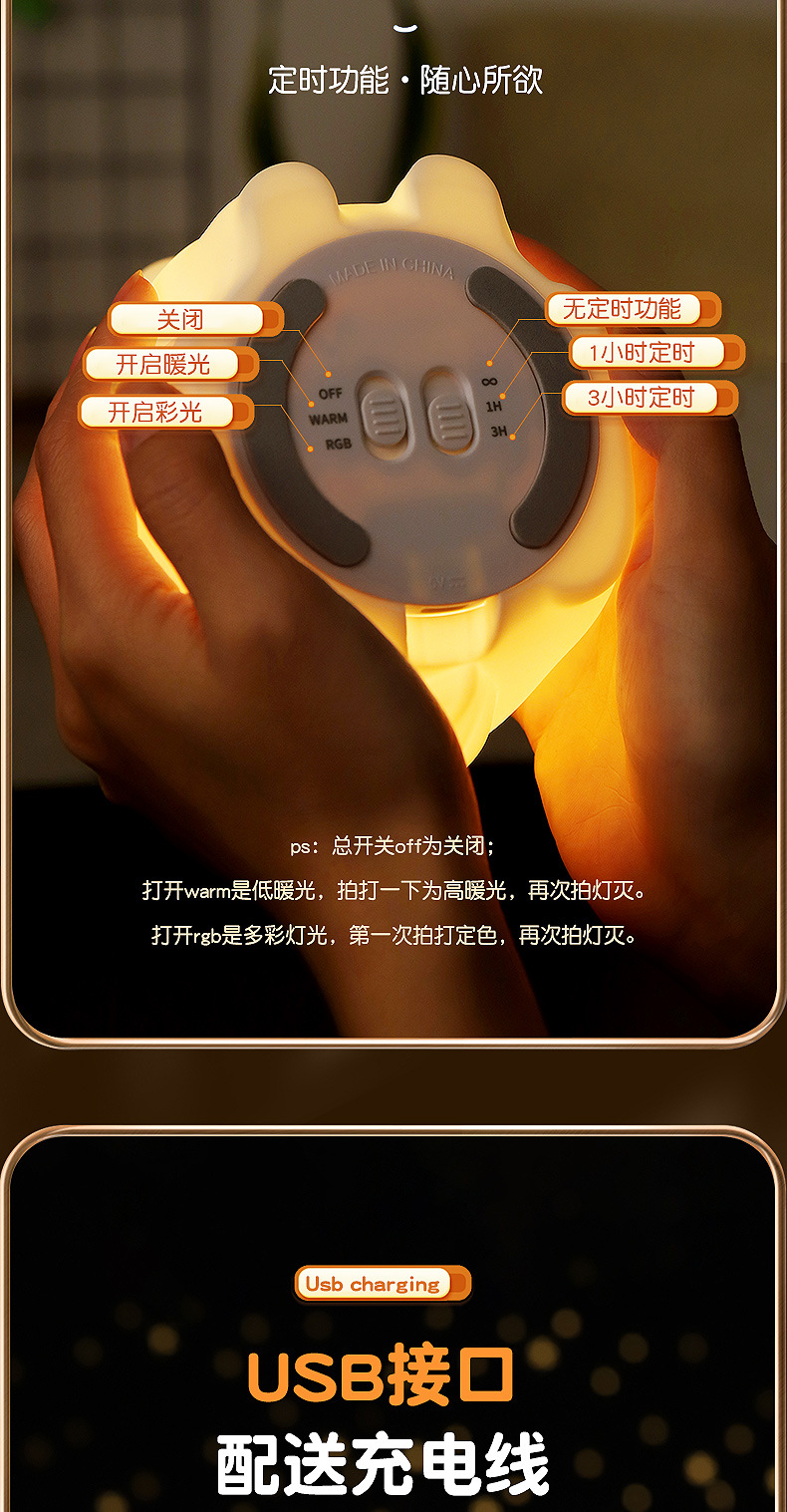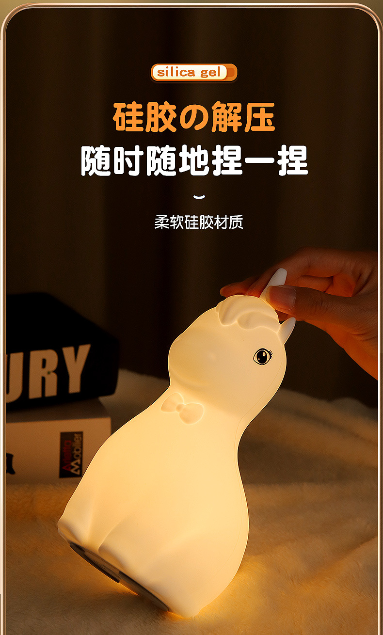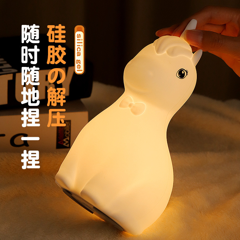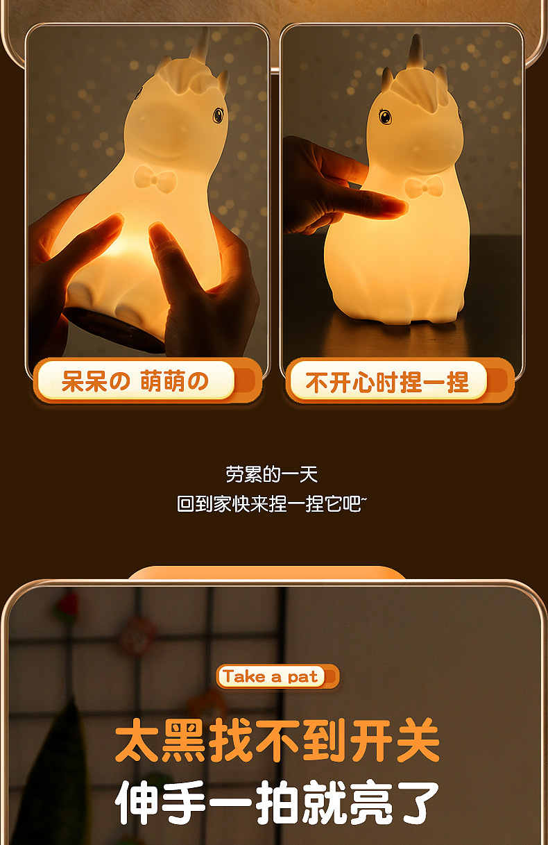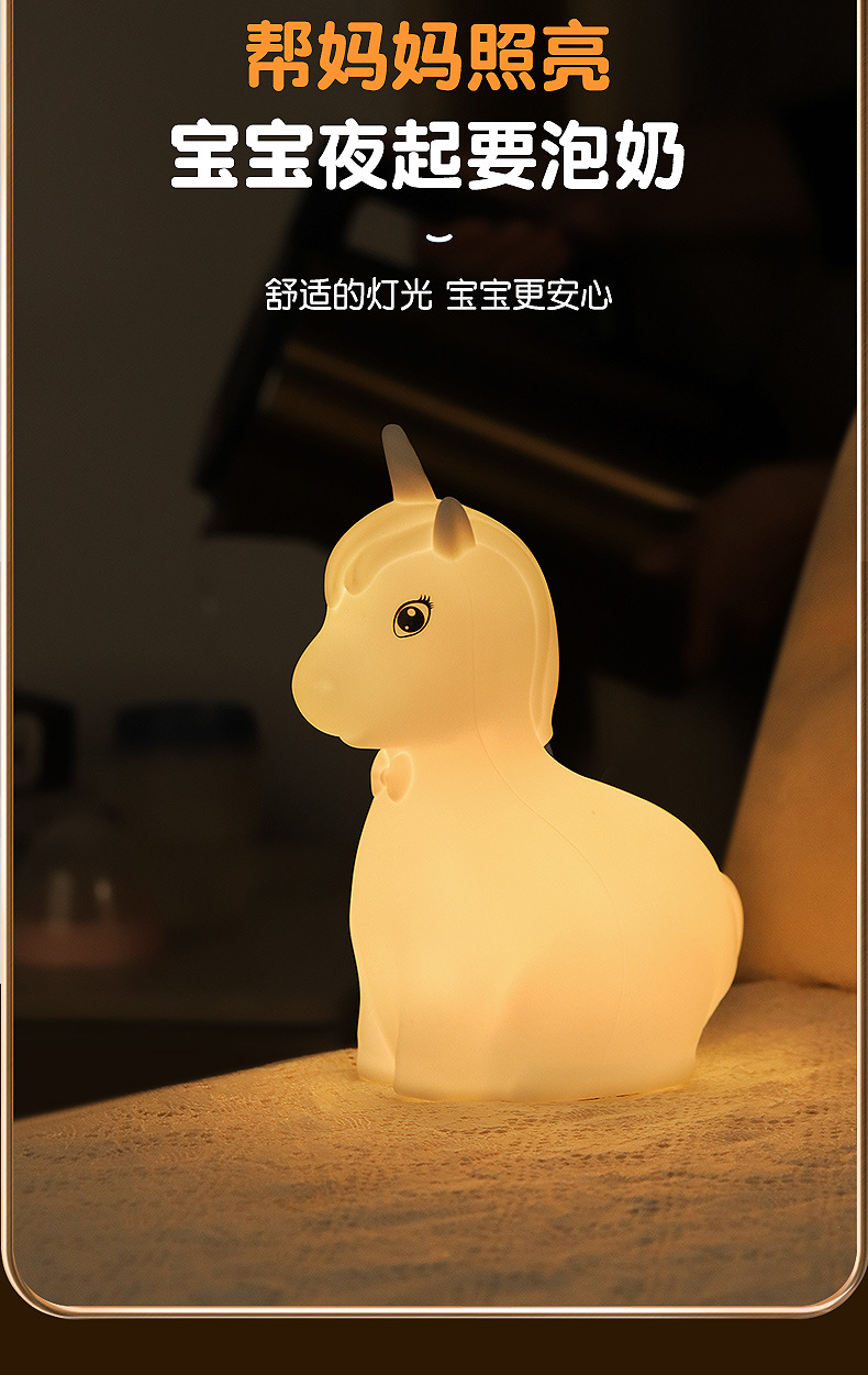 跨境独角兽硅胶灯拍拍灯高颜值儿童七彩渐变氛围灯床头喂奶小夜灯