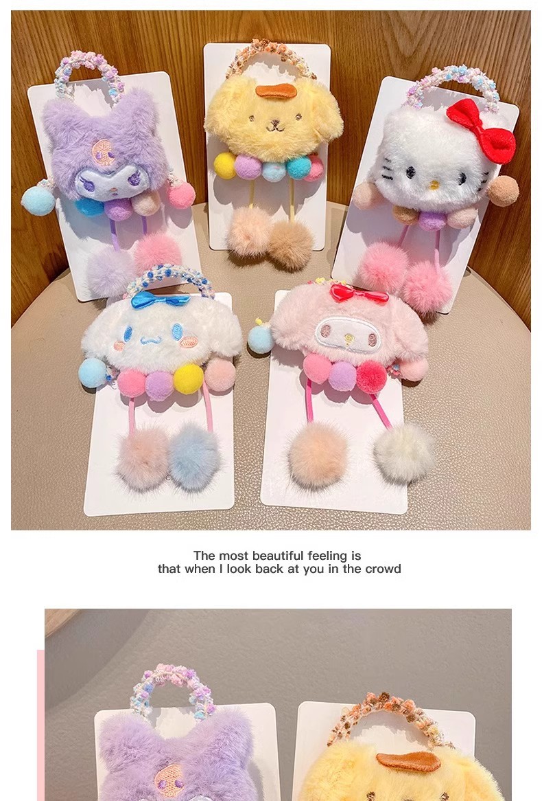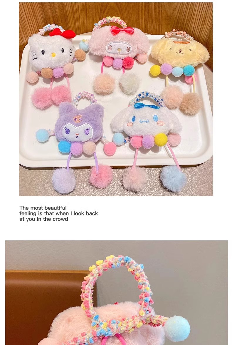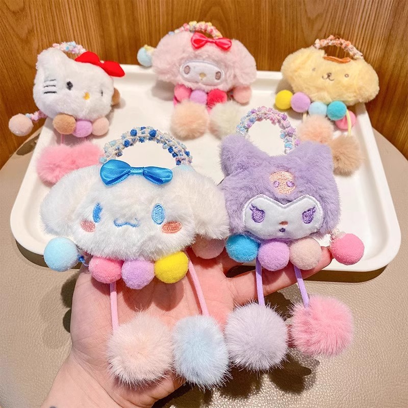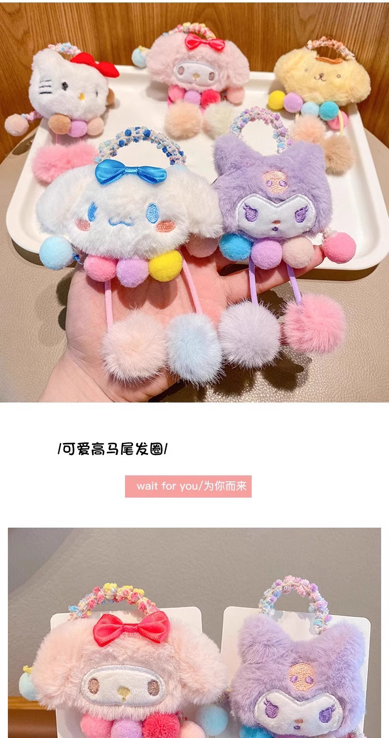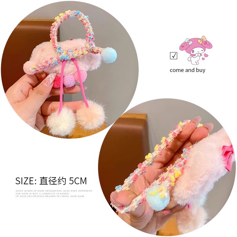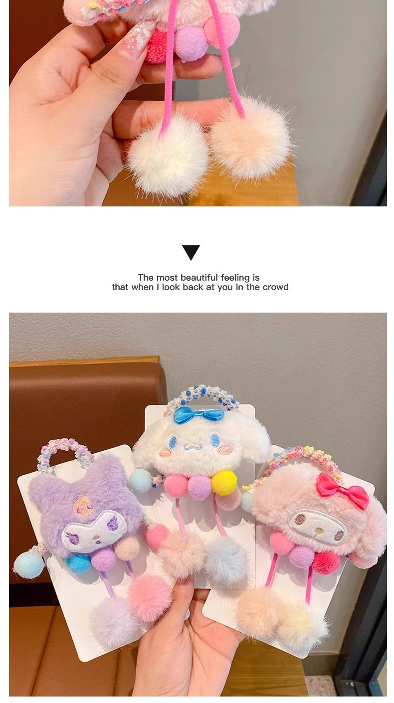 儿童毛球发绳库洛米发圈秋冬玉桂狗毛绒头绳可爱卡通高弹力丸子头