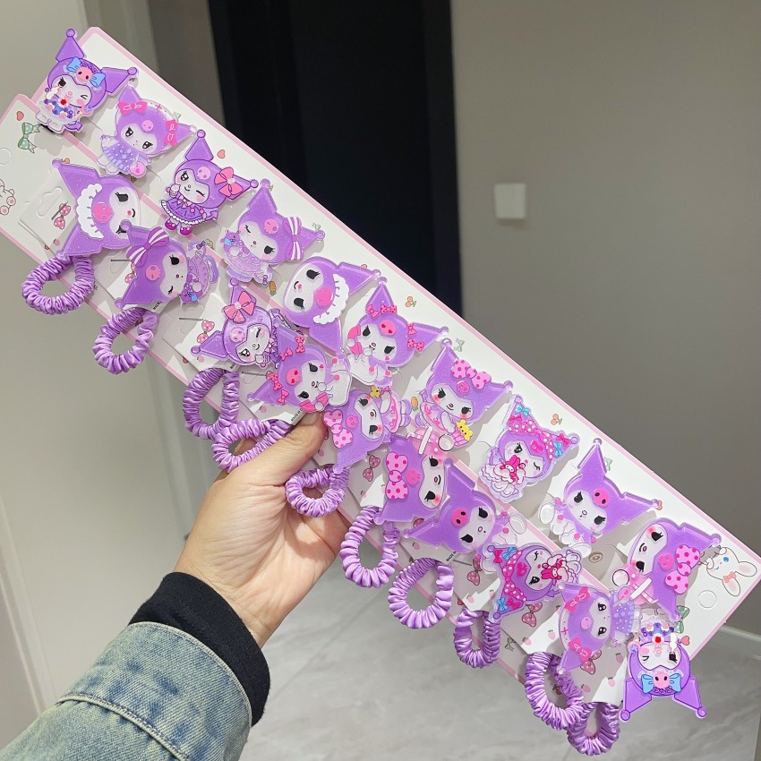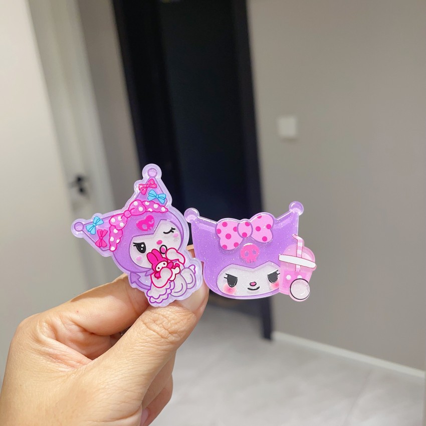 韩版库洛米发夹头饰黑甜发卡kuromi儿童发饰可爱发圈皮筋BB夹发绳