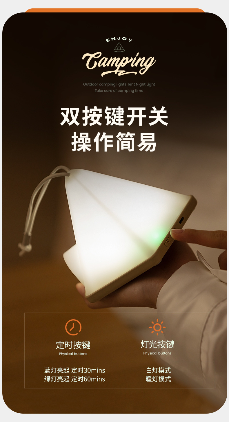 外贸专供帐篷小夜灯创意可爱充电实用小夜灯 野外露营高级灯