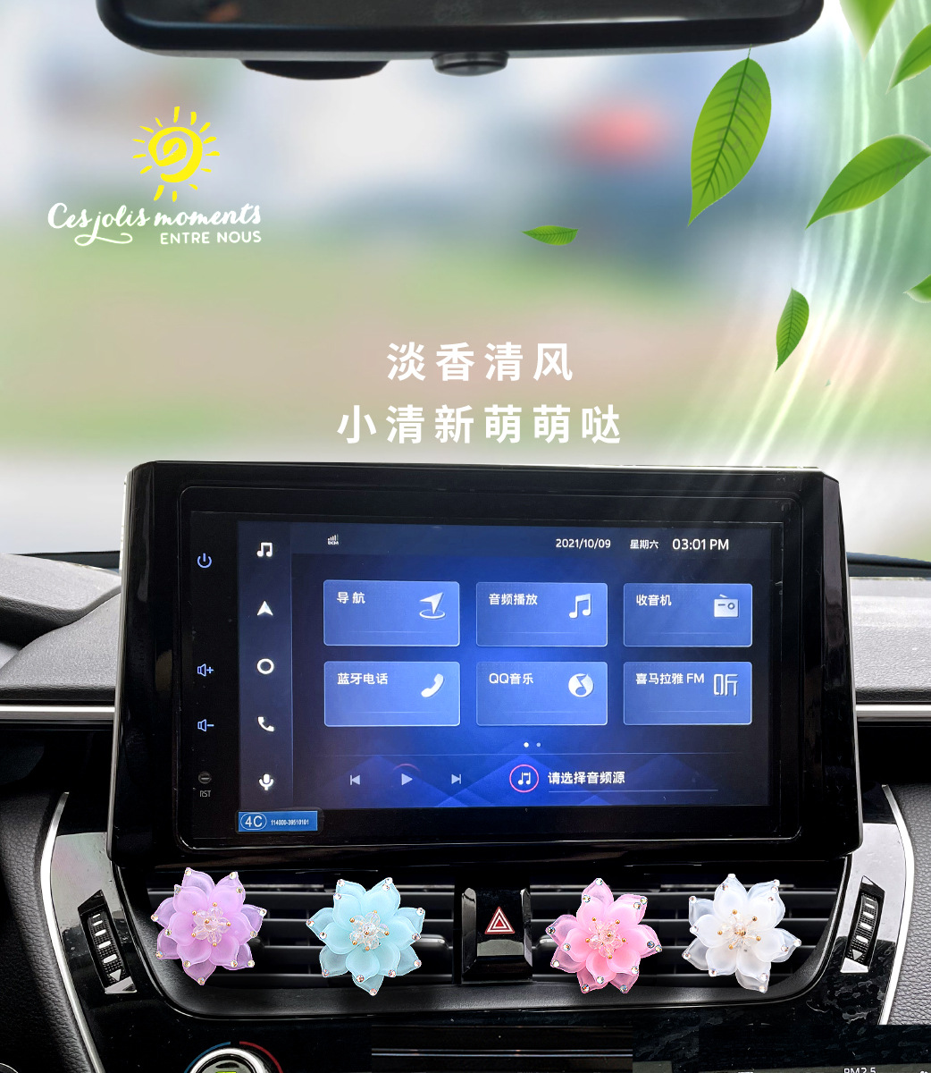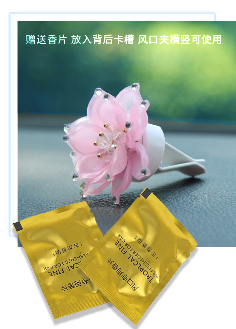 车载香薰空调出风口水钻莲花朵车内香氛摆件网红车用香水女士装饰