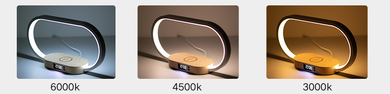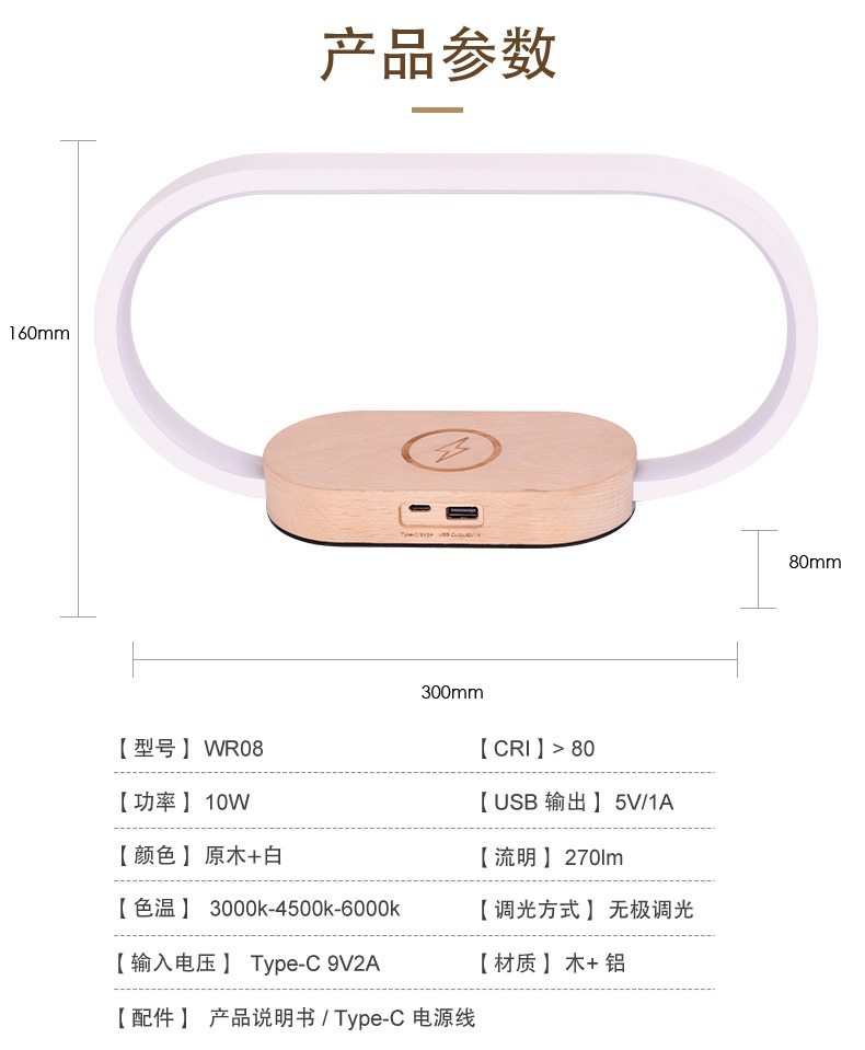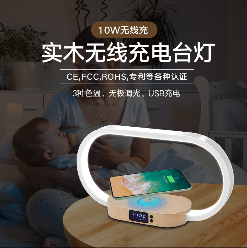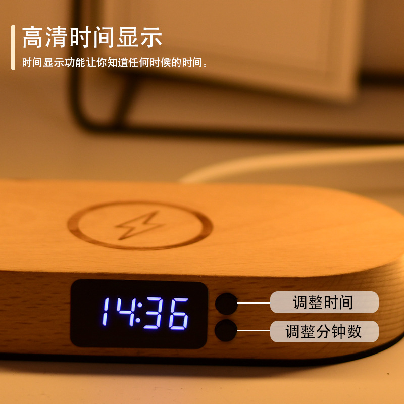 外贸专供WR08外贸带三色床头夜灯和时钟原木手机多无线快速充电器