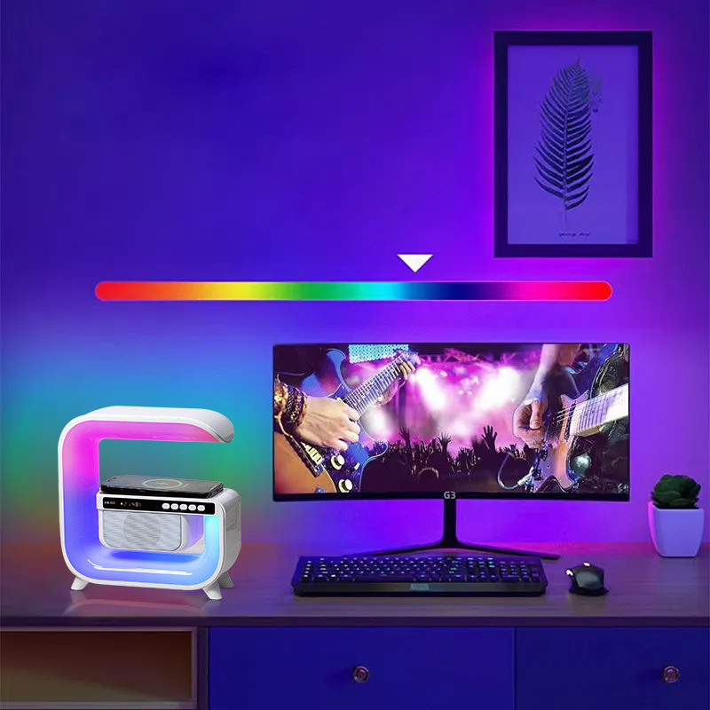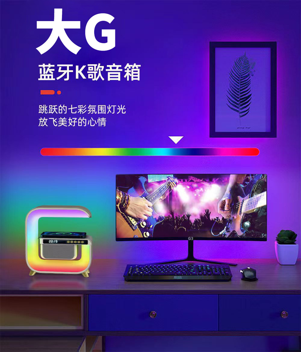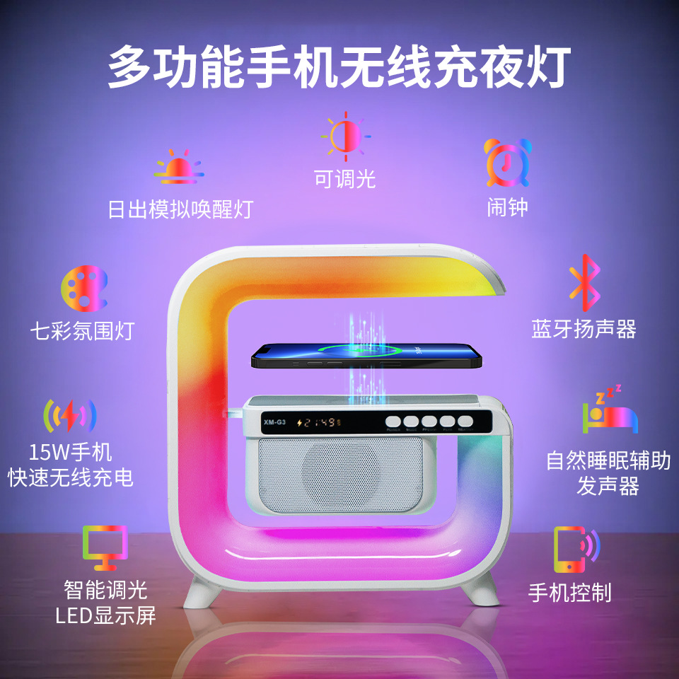 外贸专供无线充电蓝牙音响灯 闹钟时钟高音质家用大G蓝牙音箱灯