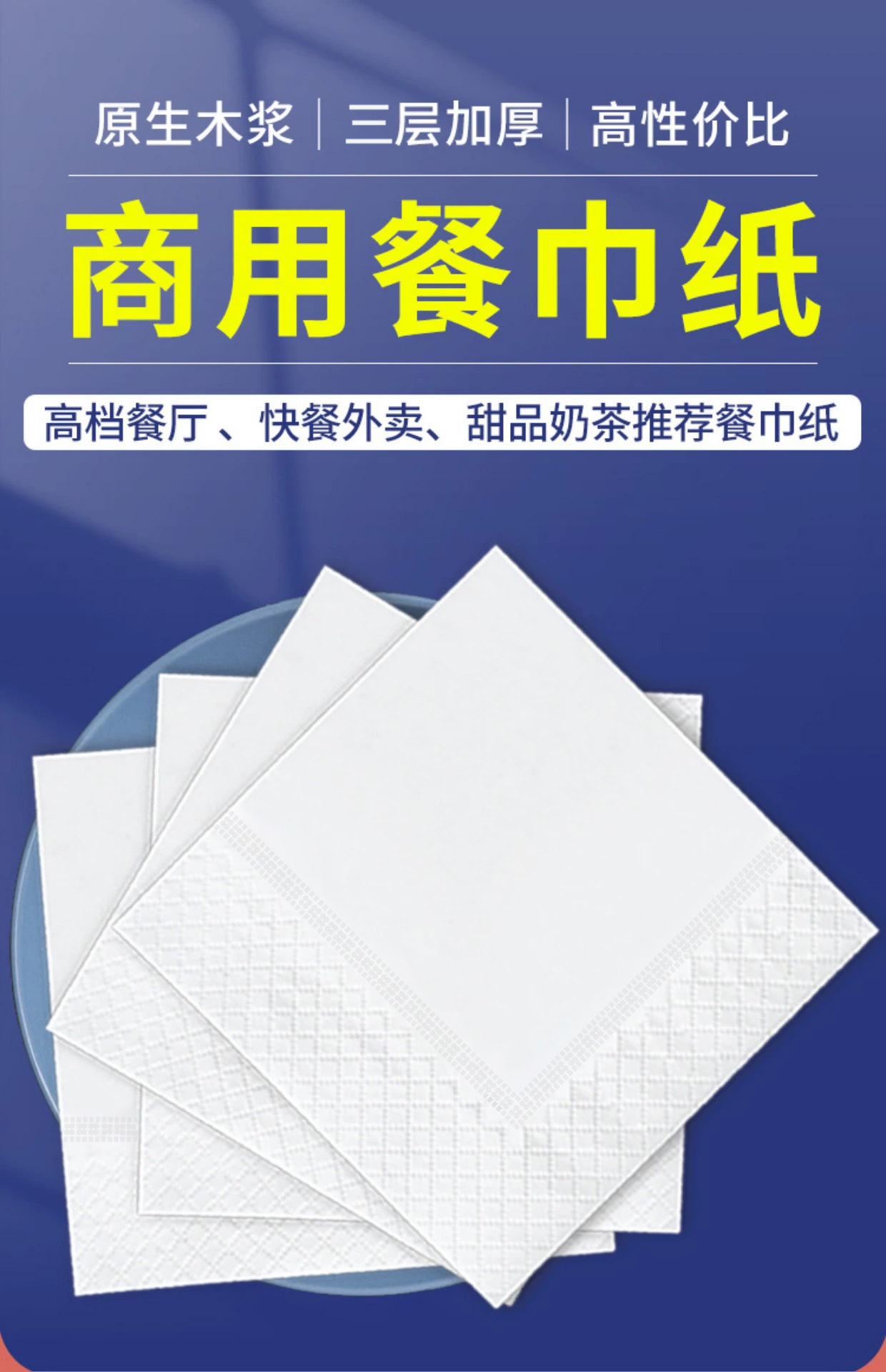 外卖餐厅酒店餐巾纸1/4折方巾印花面巾纸西餐厅38包整箱方巾批发