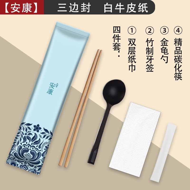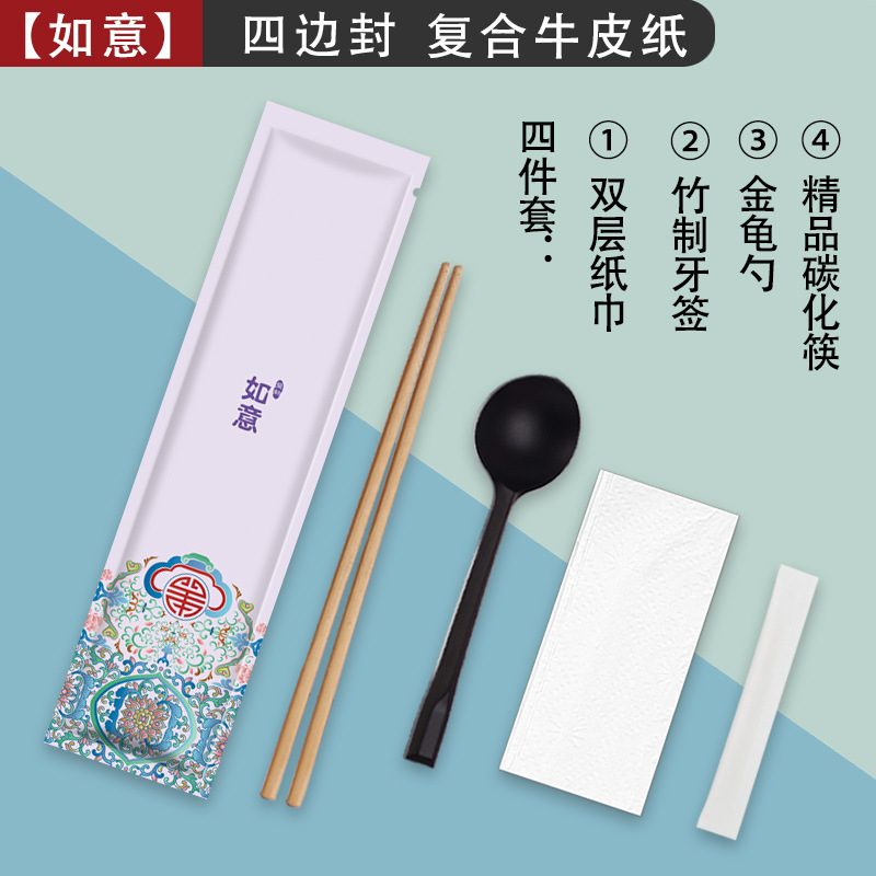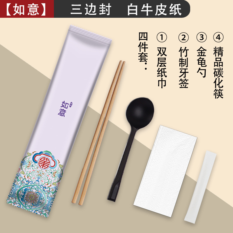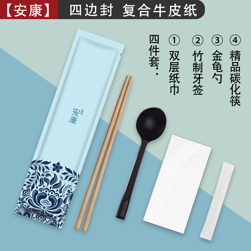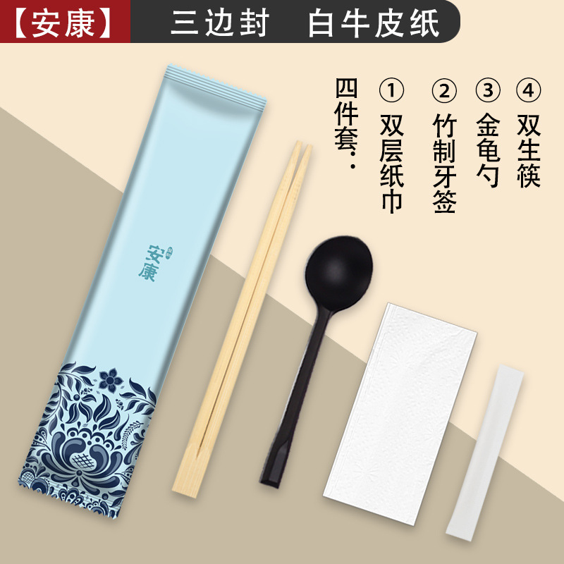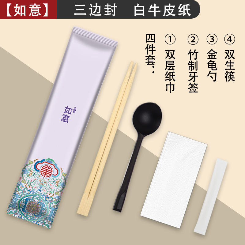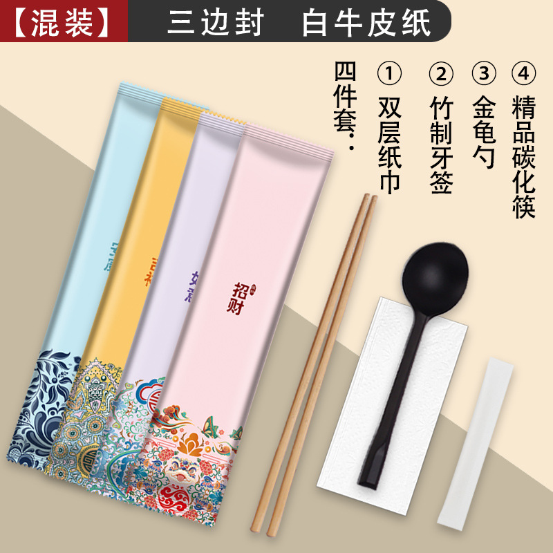 一次性筷子四件套批发餐饮外卖打包餐具包纸巾勺子牙签竹筷四合一