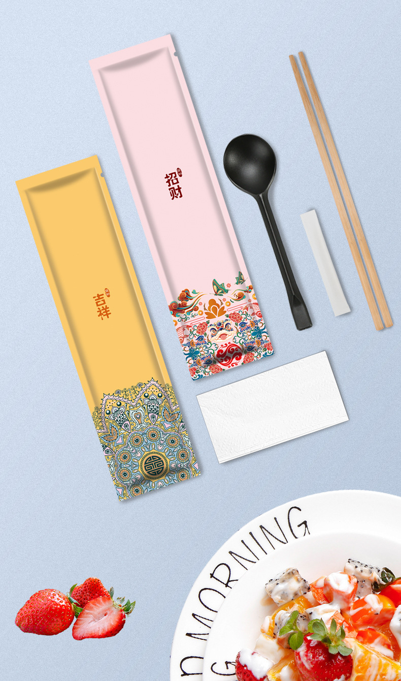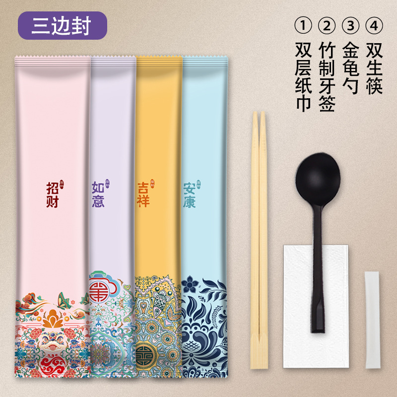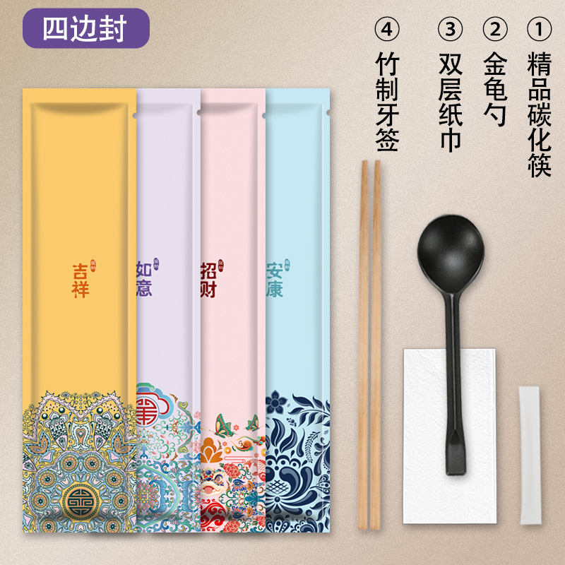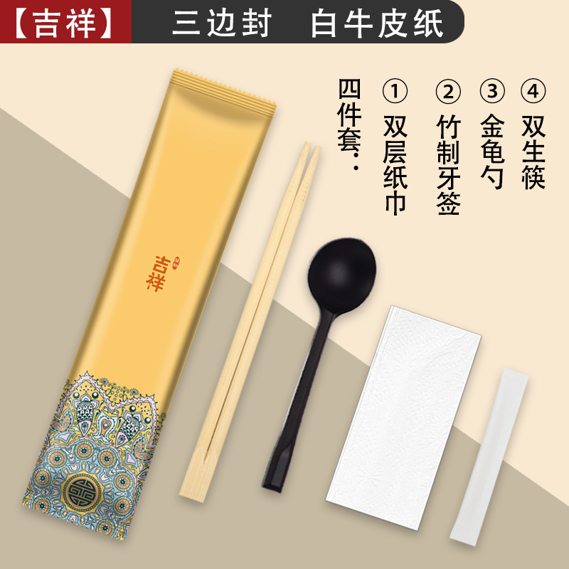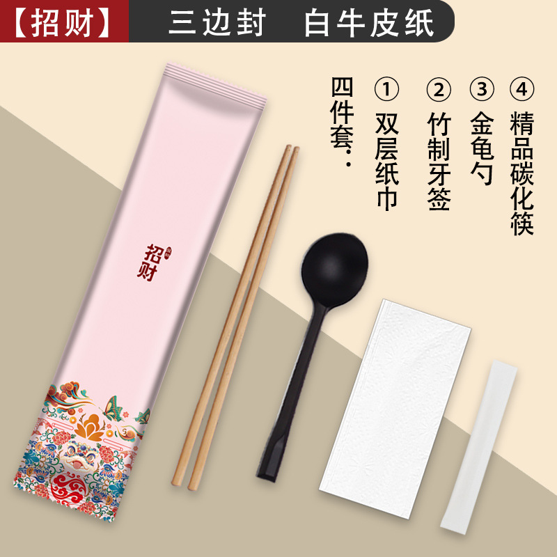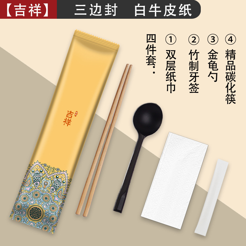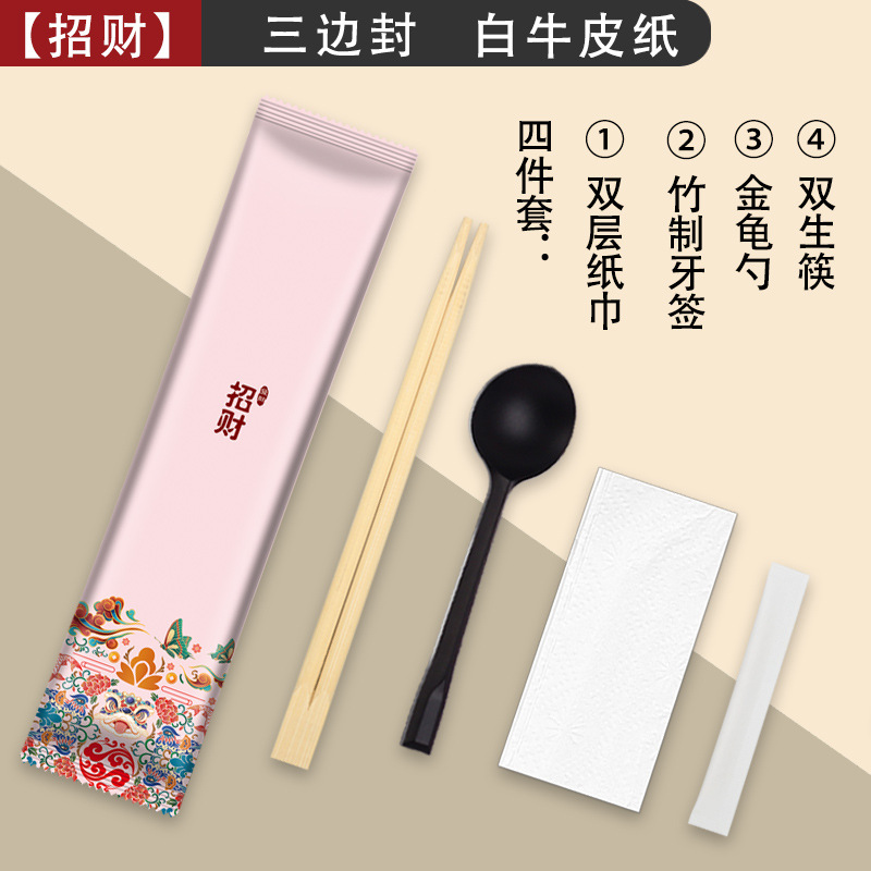 一次性筷子四件套批发餐饮外卖打包餐具包纸巾勺子牙签竹筷四合一