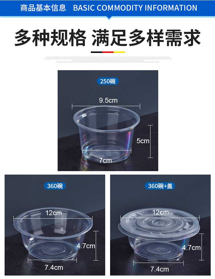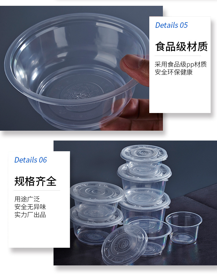 塑料碗一次性碗整箱稀饭外卖打包盒商用饭店透明加厚碗带盖圆形