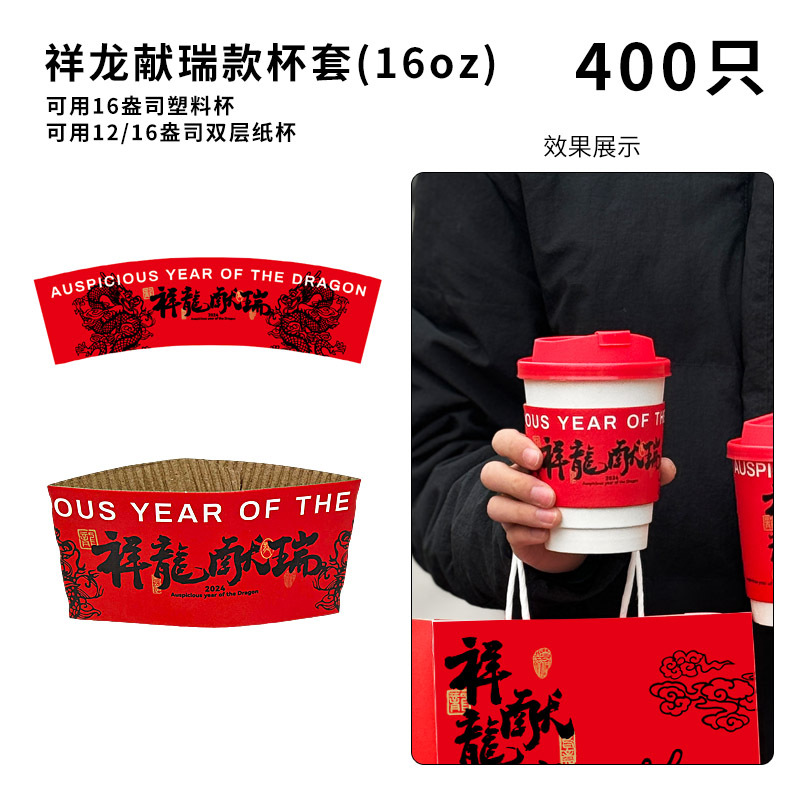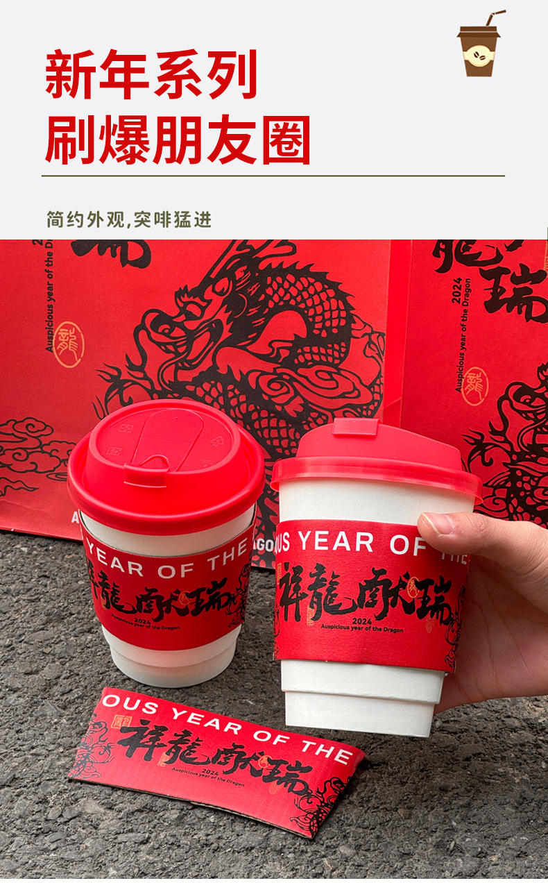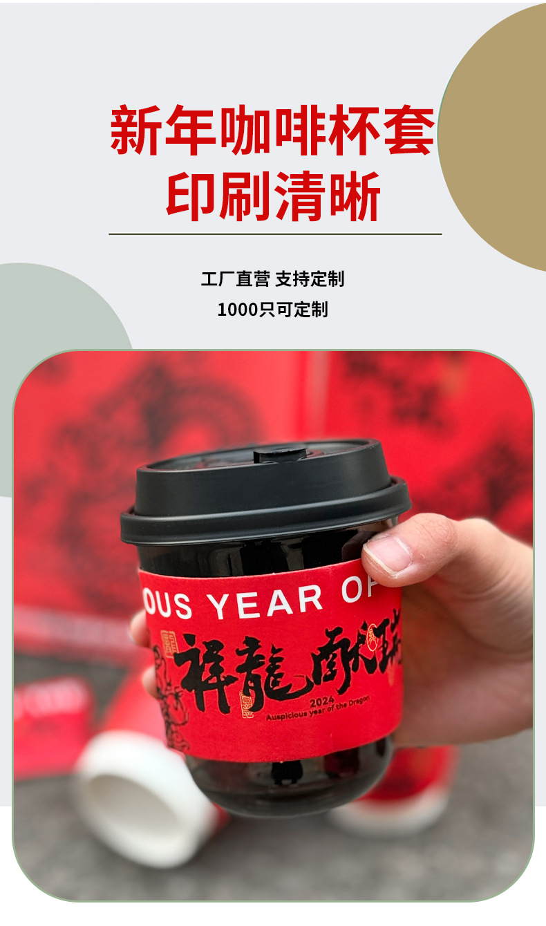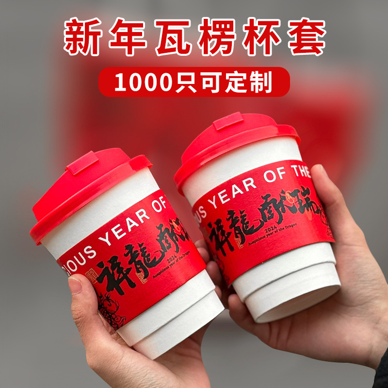 网红创意新年奶茶杯套一次性咖啡杯子热饮纸杯商用通用防烫圈定制