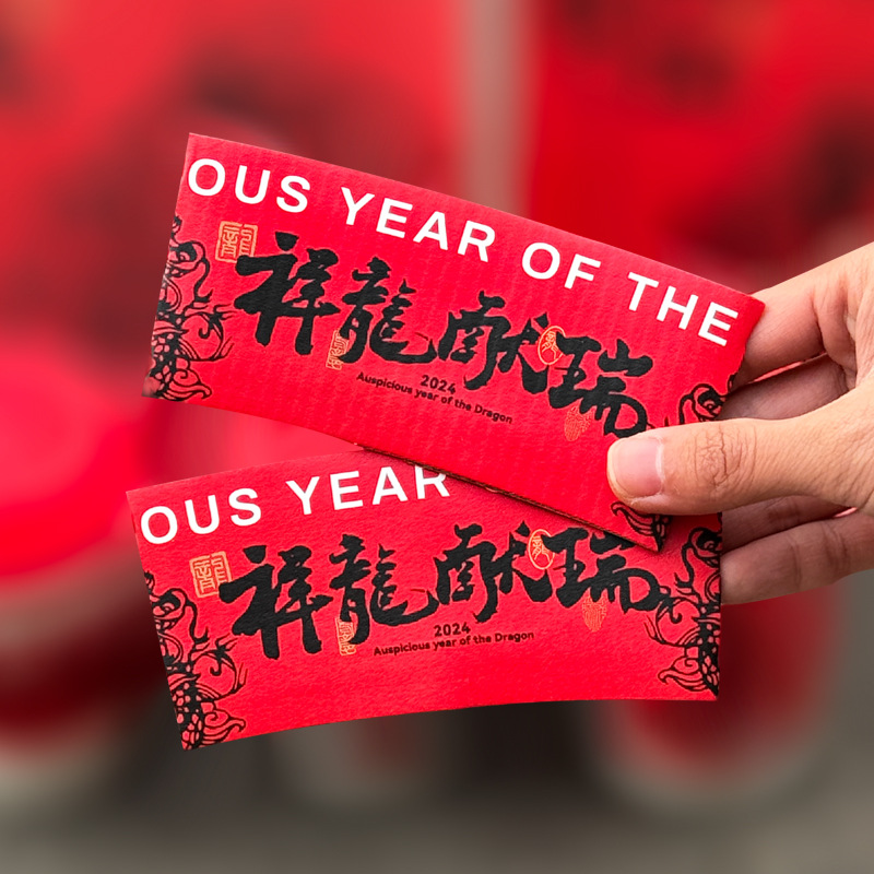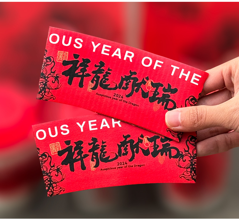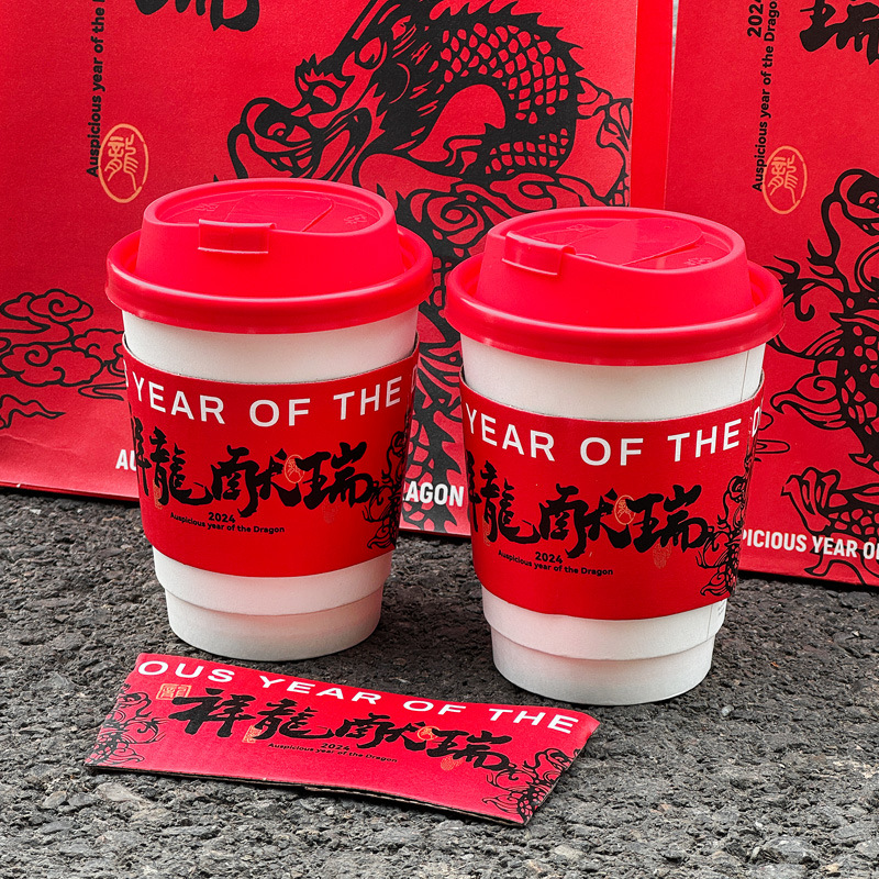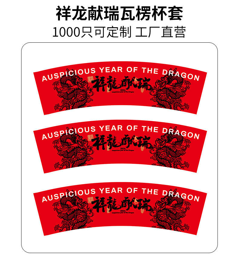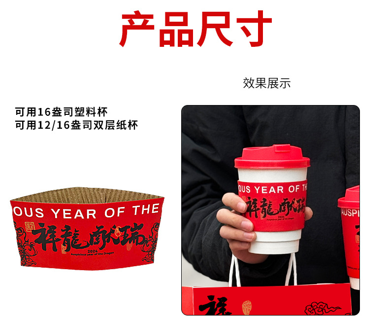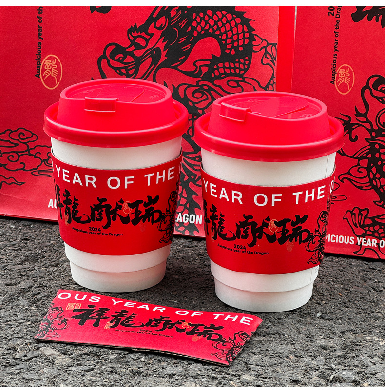 网红创意新年奶茶杯套一次性咖啡杯子热饮纸杯商用通用防烫圈定制