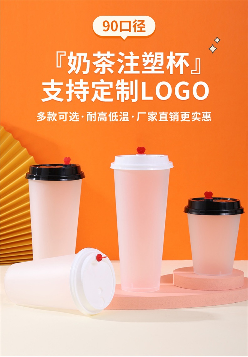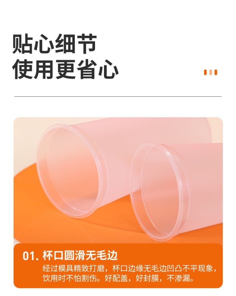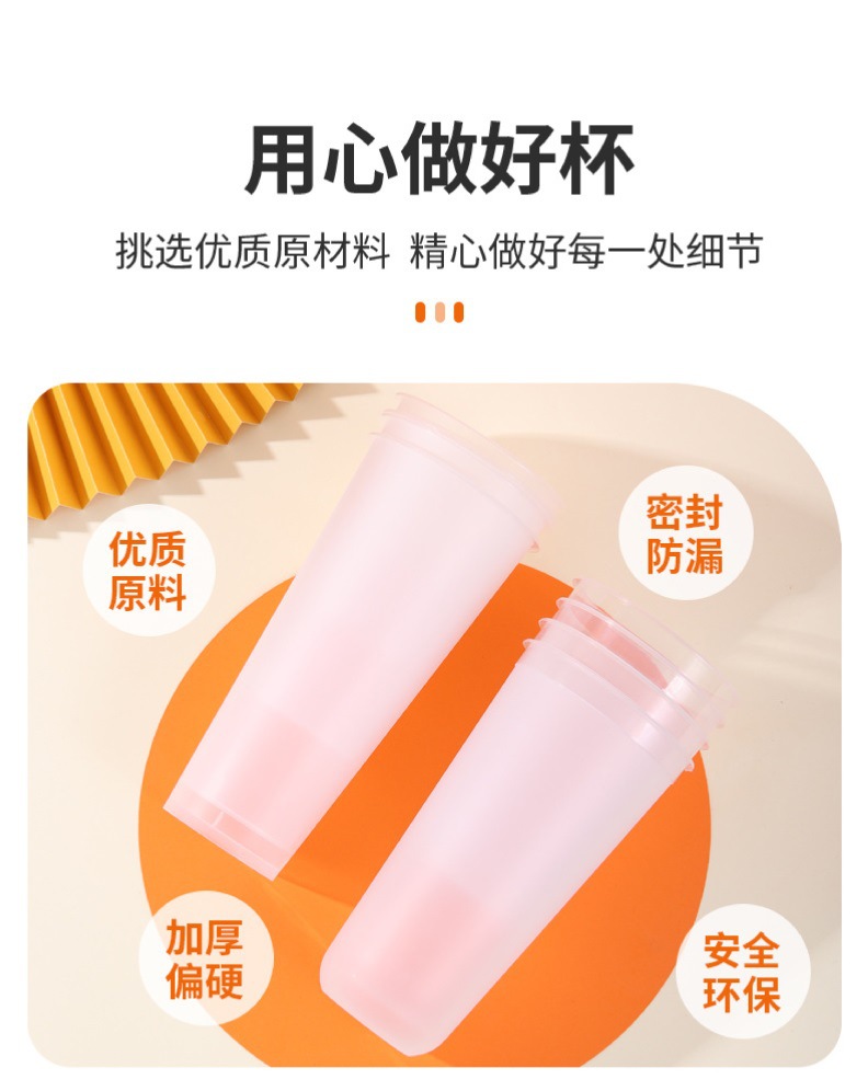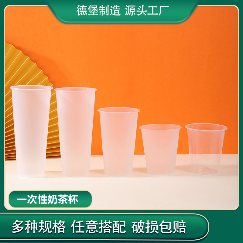 一次性塑料奶茶杯子批发圆形PP透明磨砂打包外卖杯塑料杯饮料杯子