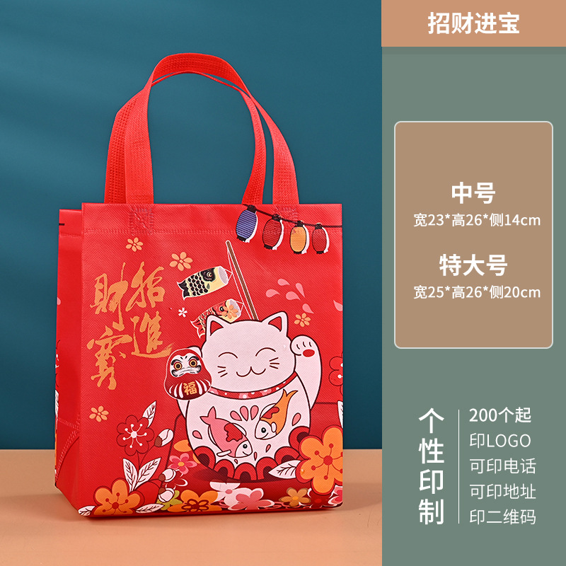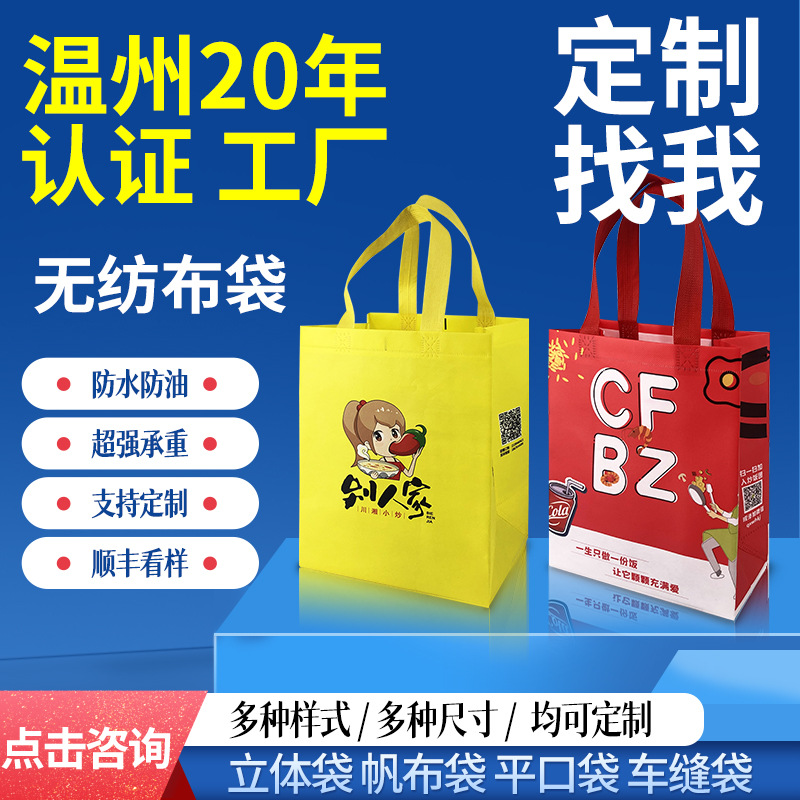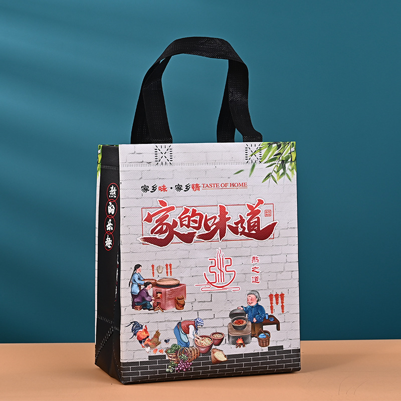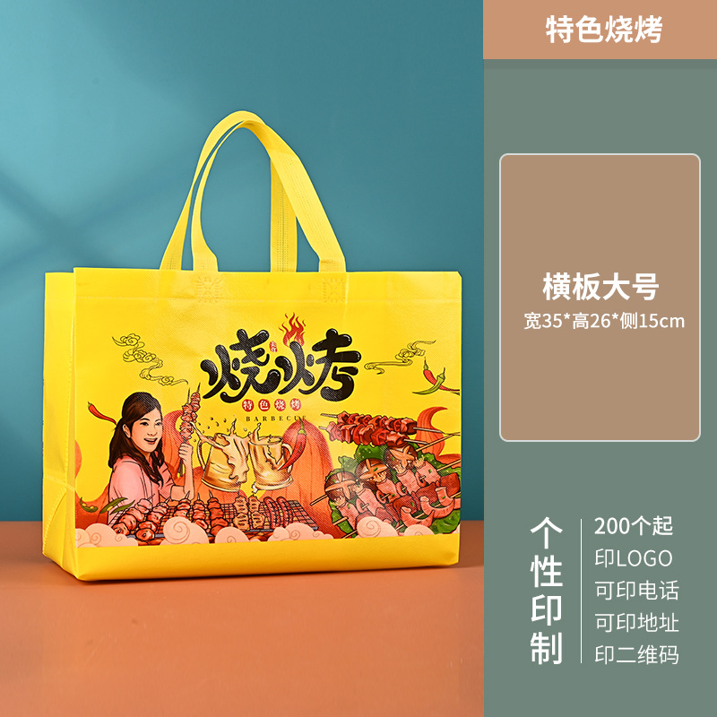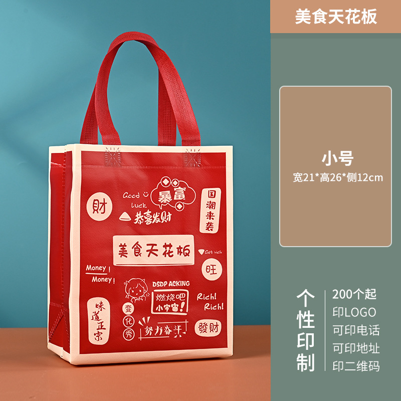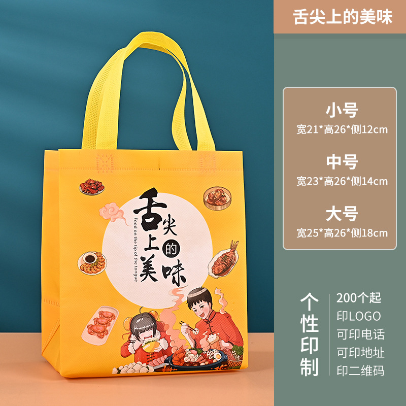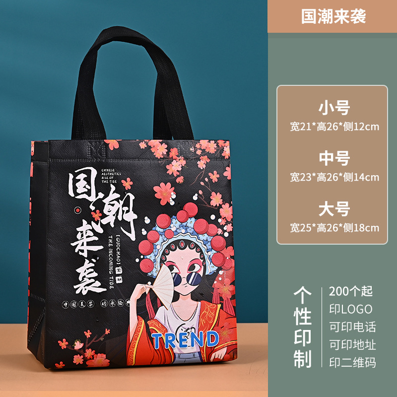 无纺布外卖袋批发国潮无纺布袋子一次性手提快餐打包袋餐饮包装袋