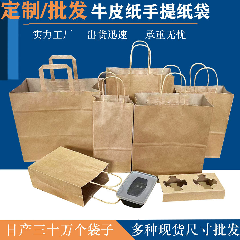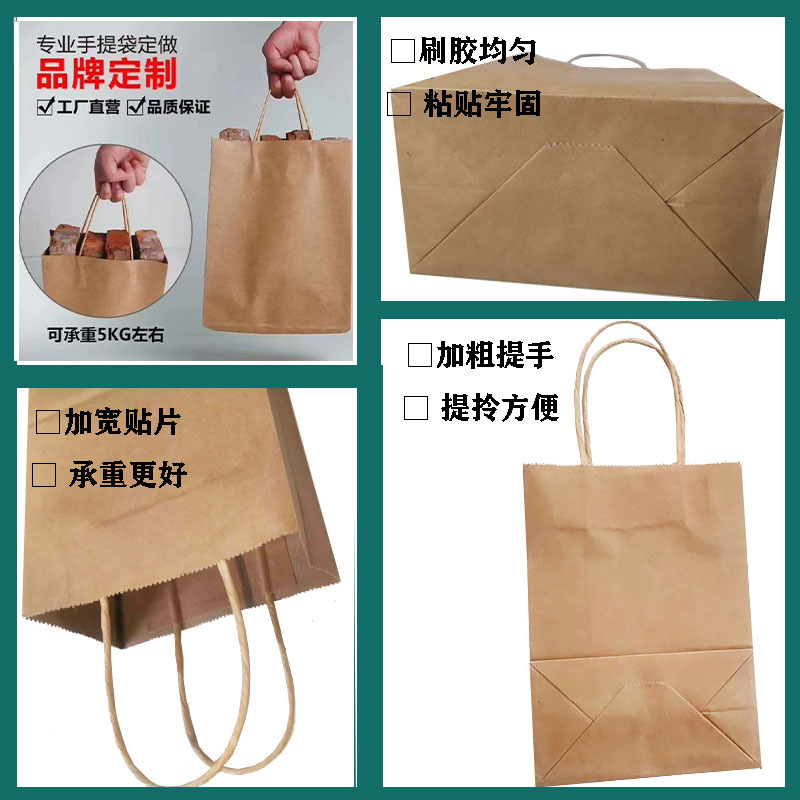 一次性牛皮纸咖啡外卖袋通用餐饮烧烤手提袋服装袋奶茶打包纸袋