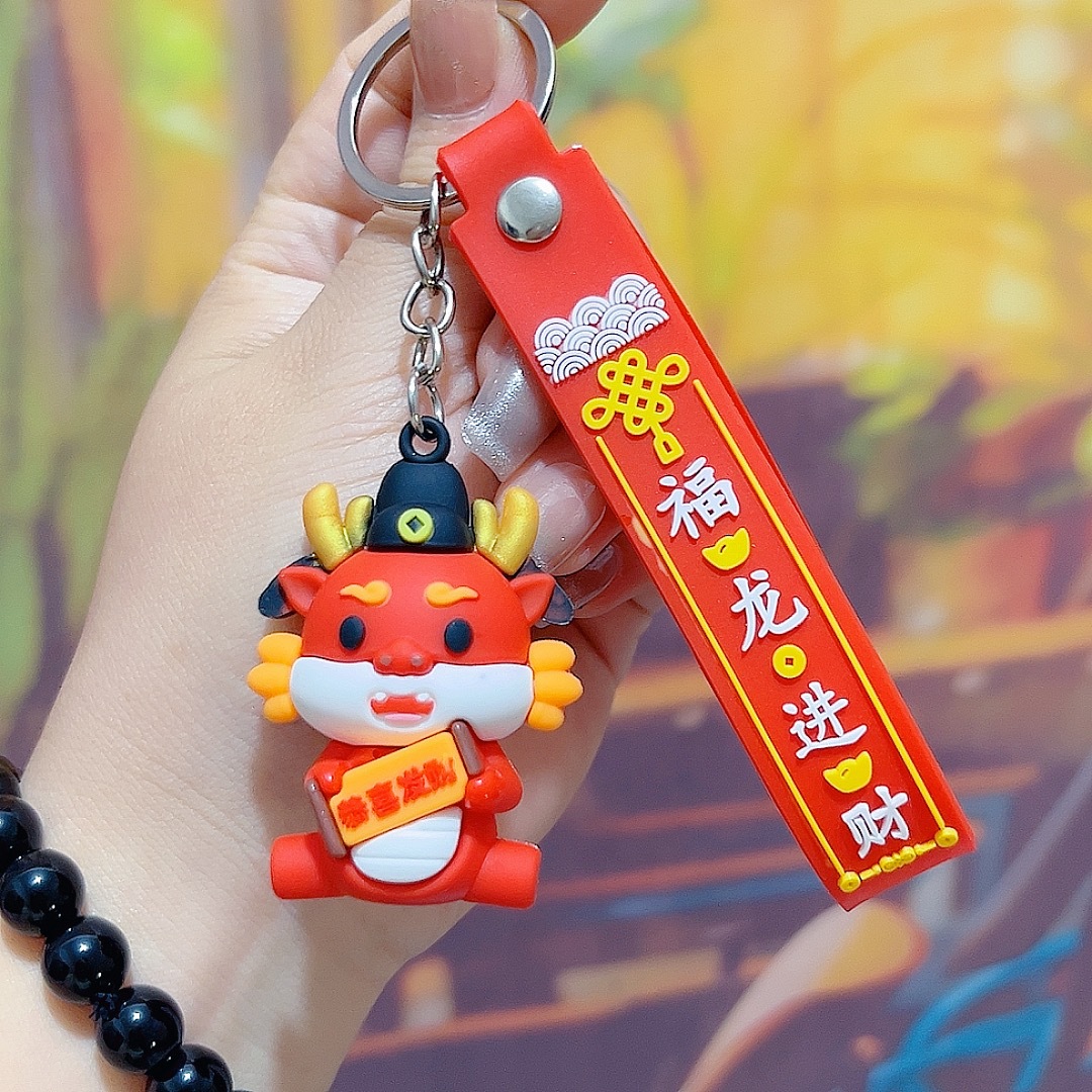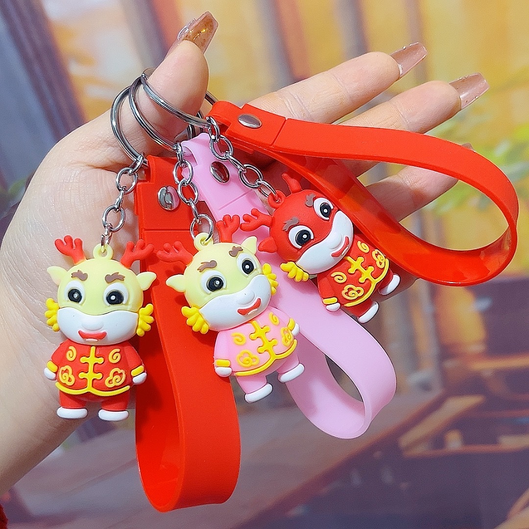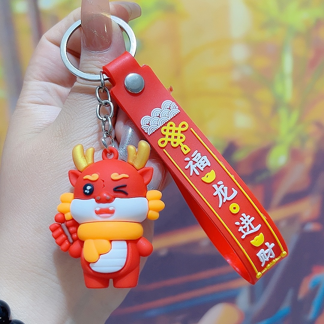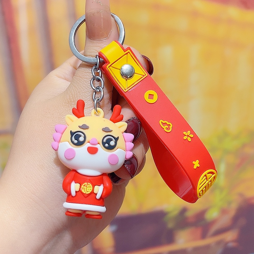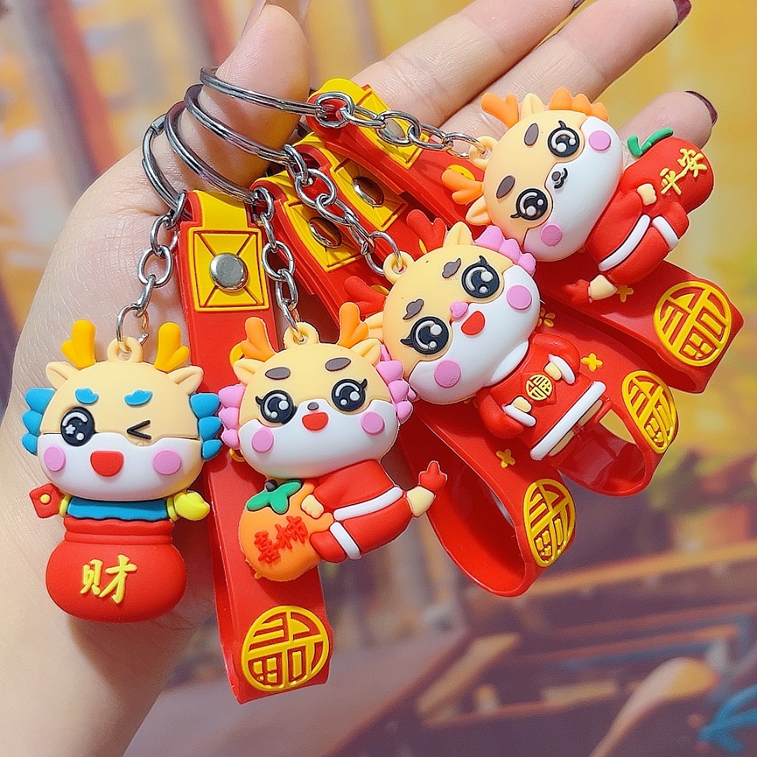 2024新款龙年钥匙扣小龙国潮挂件软胶公仔挂饰新年龙宝宝礼品批发