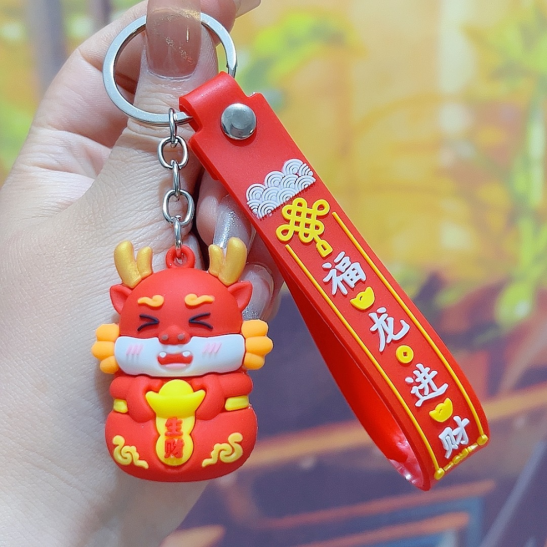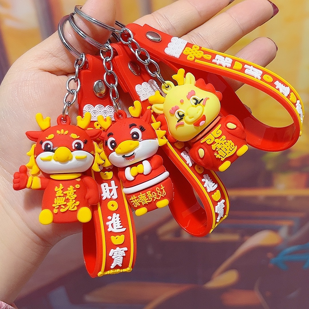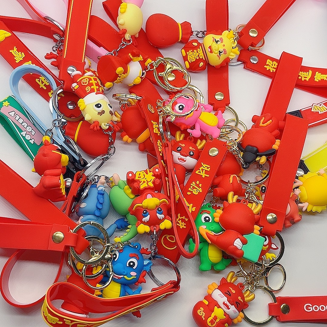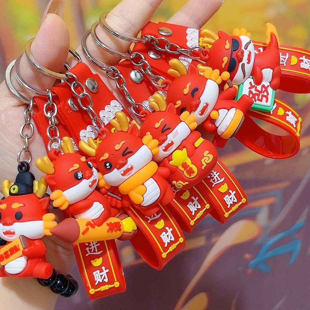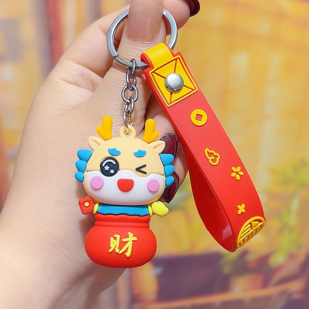 2024新款龙年钥匙扣小龙国潮挂件软胶公仔挂饰新年龙宝宝礼品批发