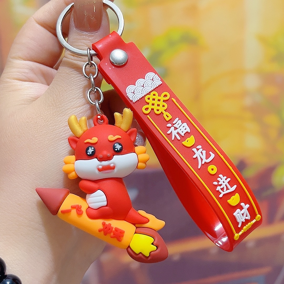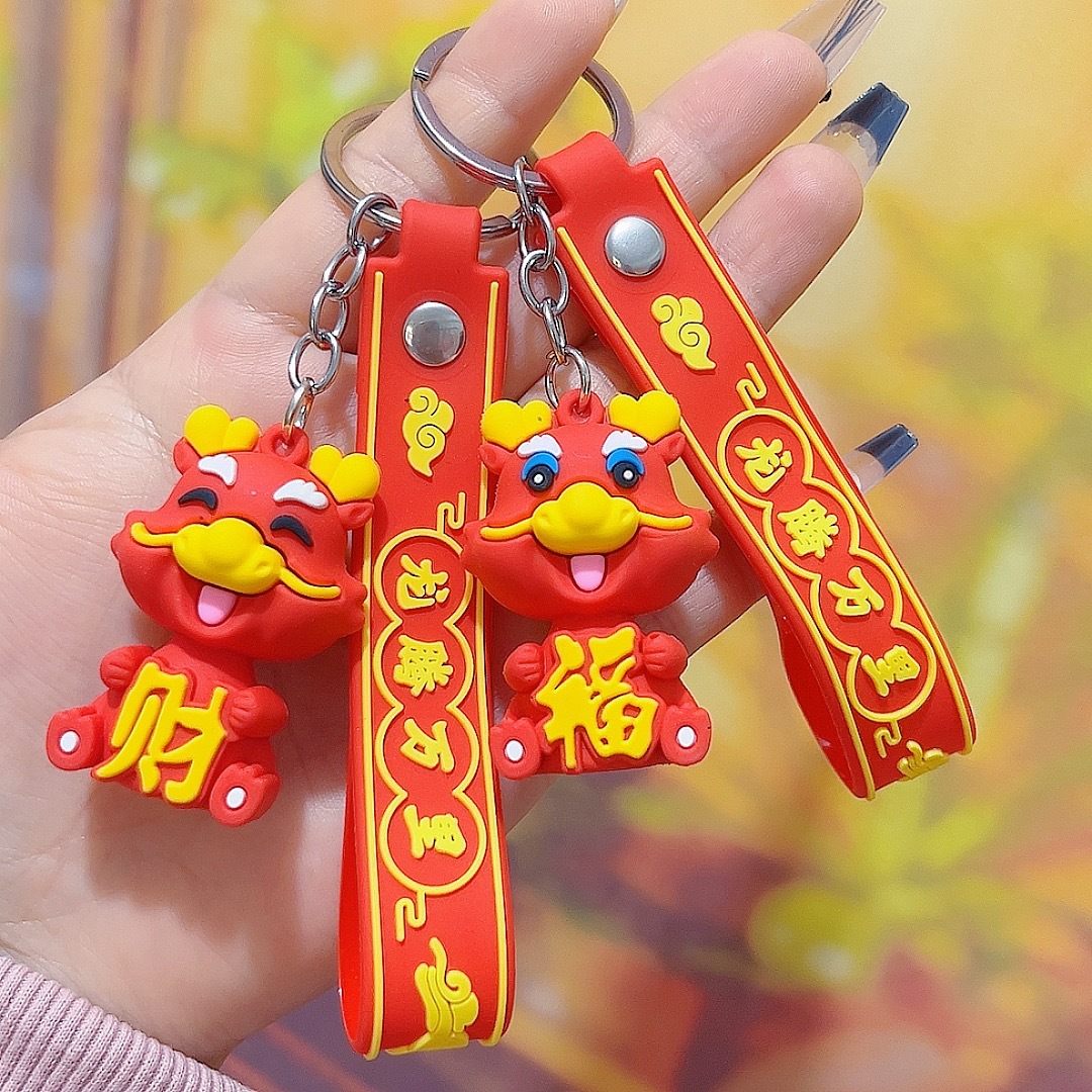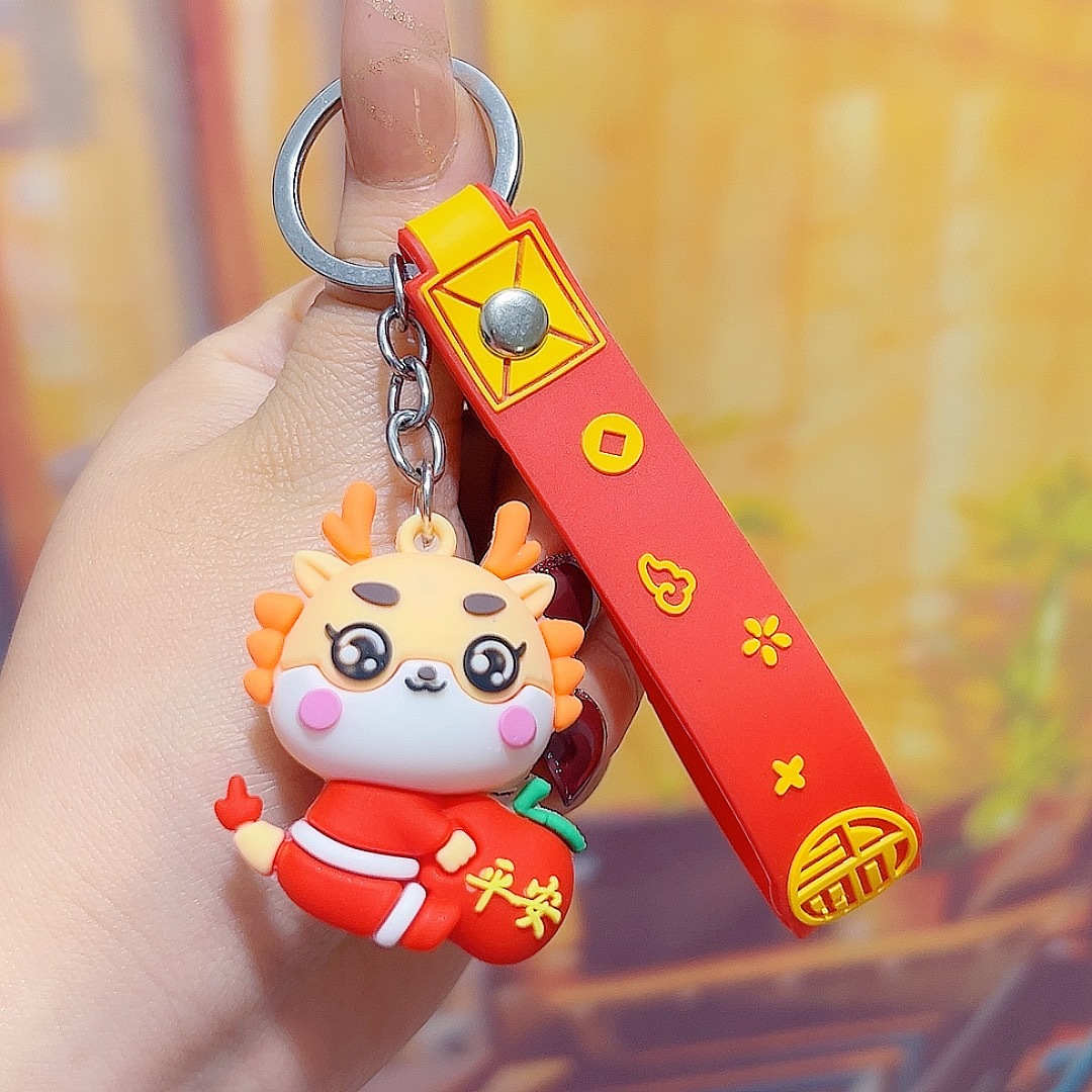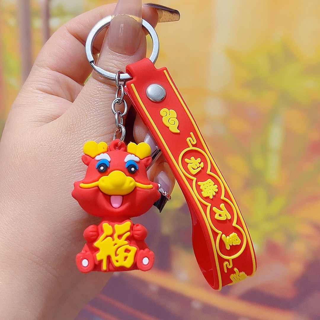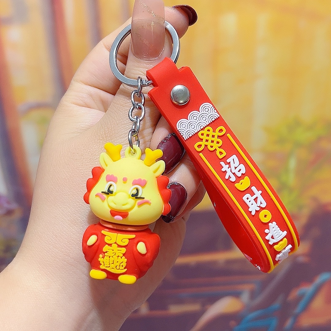2024新款龙年钥匙扣小龙国潮挂件软胶公仔挂饰新年龙宝宝礼品批发