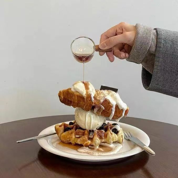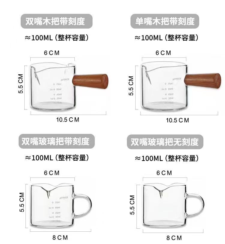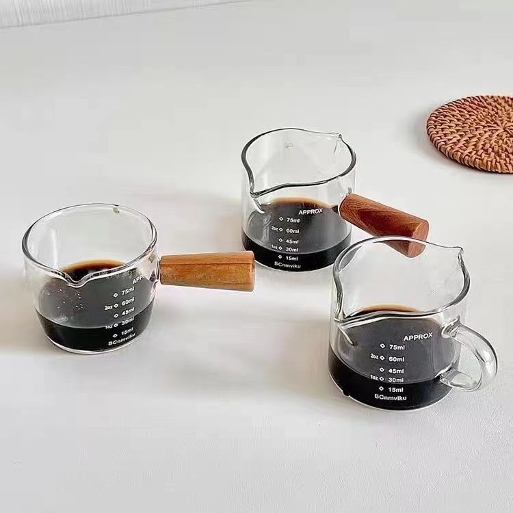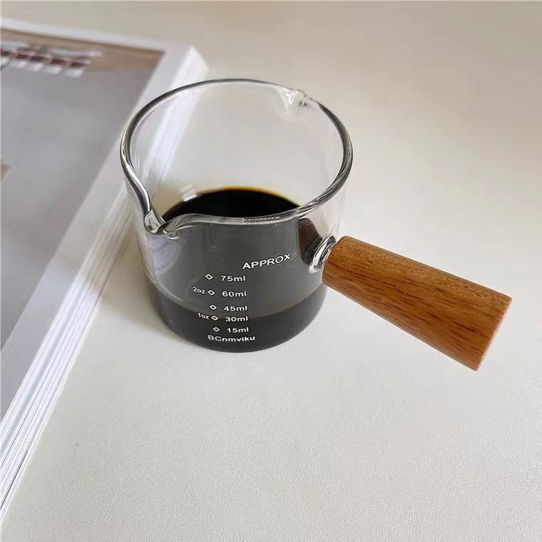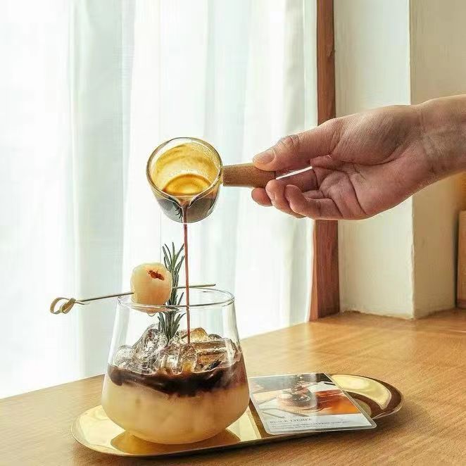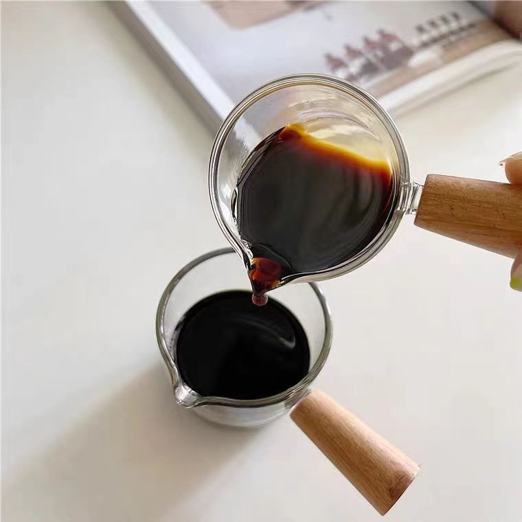 高硼硅玻璃牛奶迷你木把小奶盅 意式浓缩咖啡萃取杯西餐厅汁斗