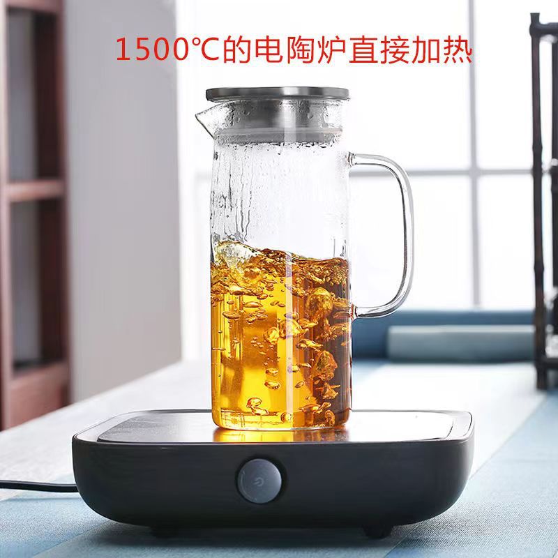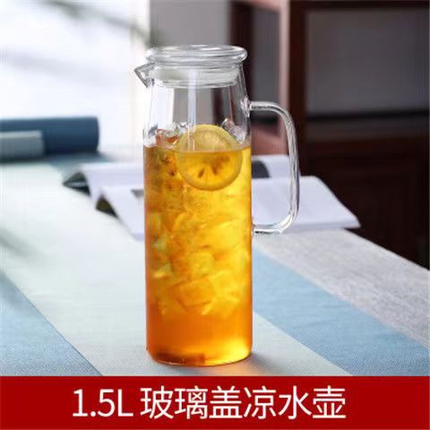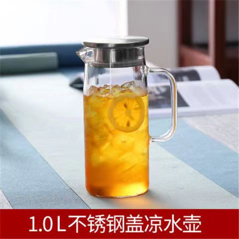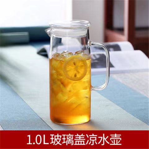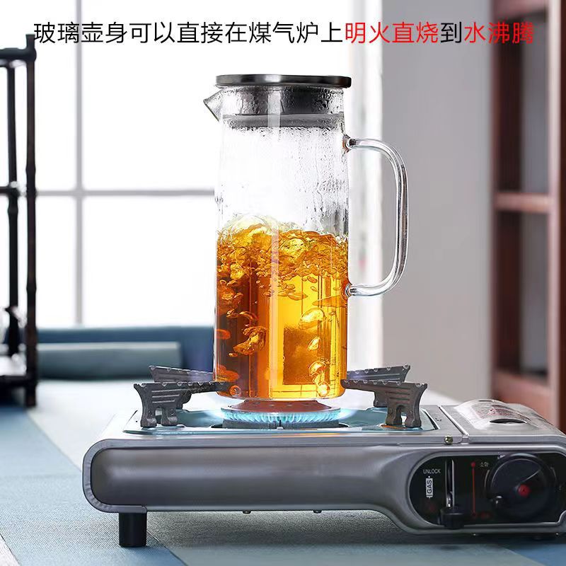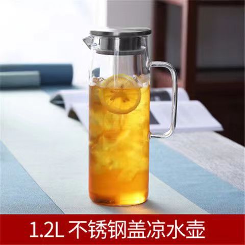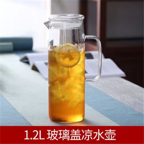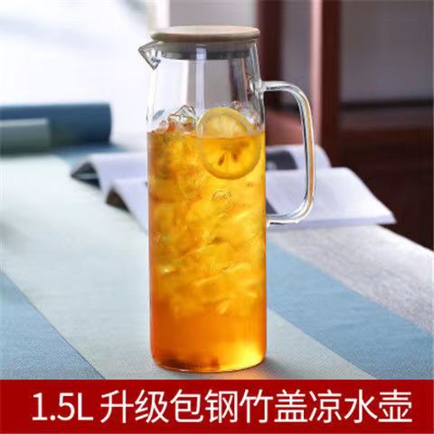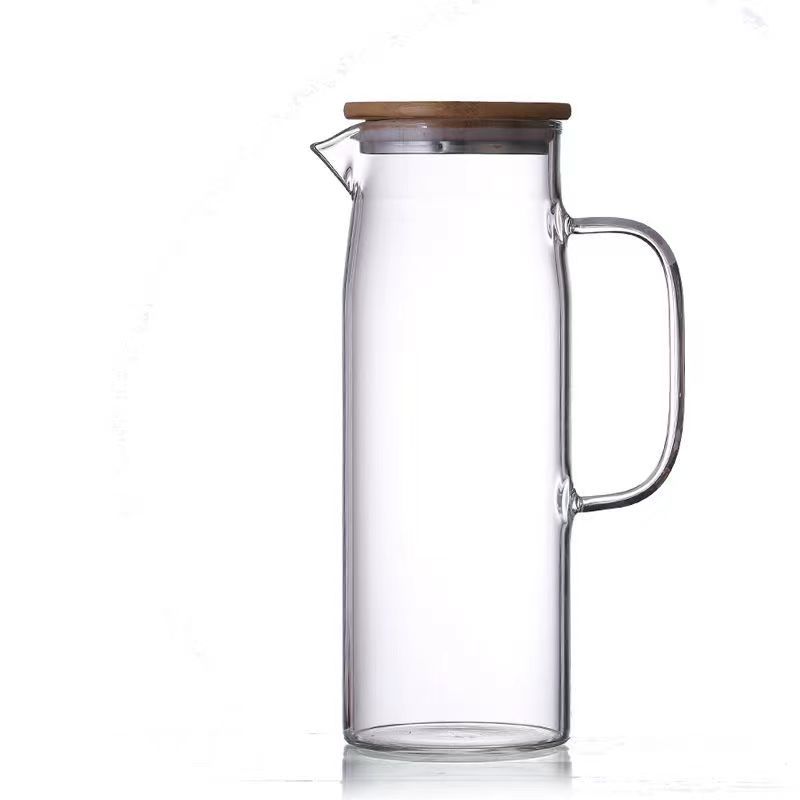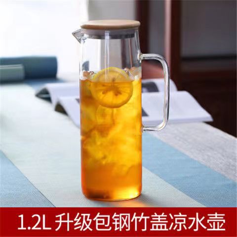 日式玻璃高颜值冷水壶加厚扎壶大容量直身竹盖凉水壶透明泡茶壶