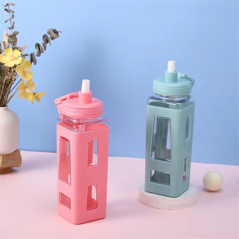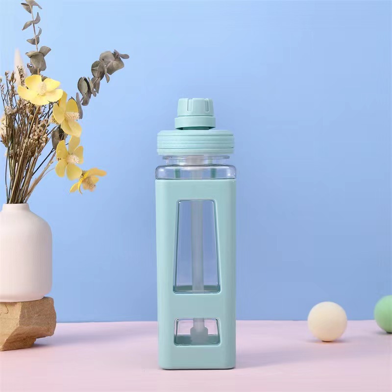 方形活力大容量男女夏季塑料杯吸管双饮杯学生简约运动水杯子厂家