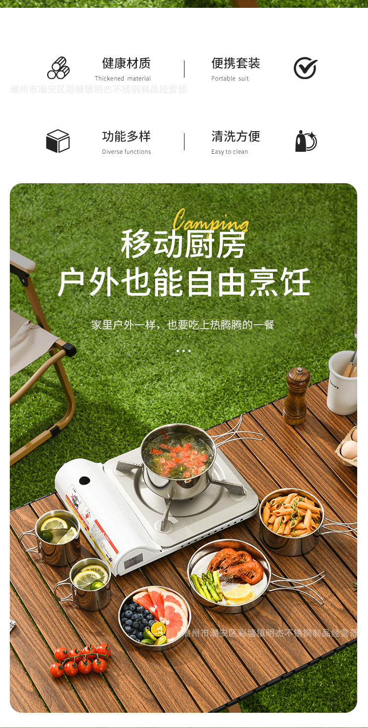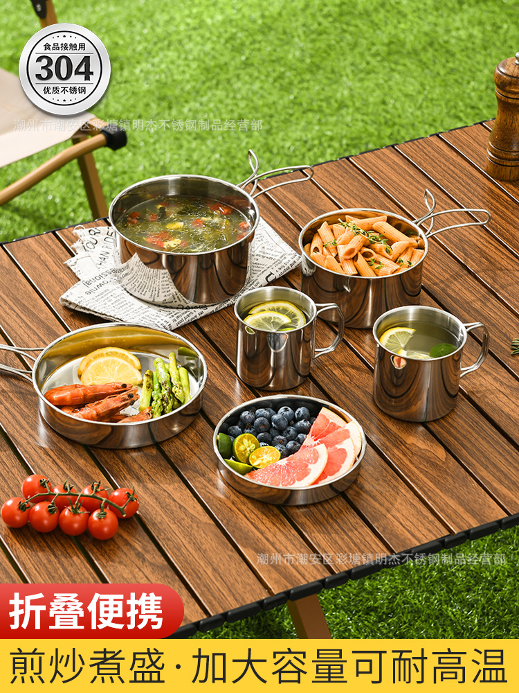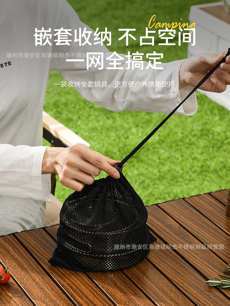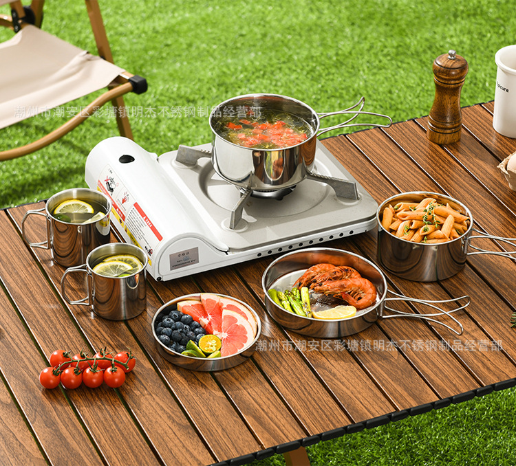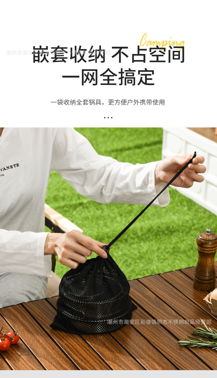 304不锈钢户外炊具野炊折叠餐具套娃易收纳便携锅具套装野营用品